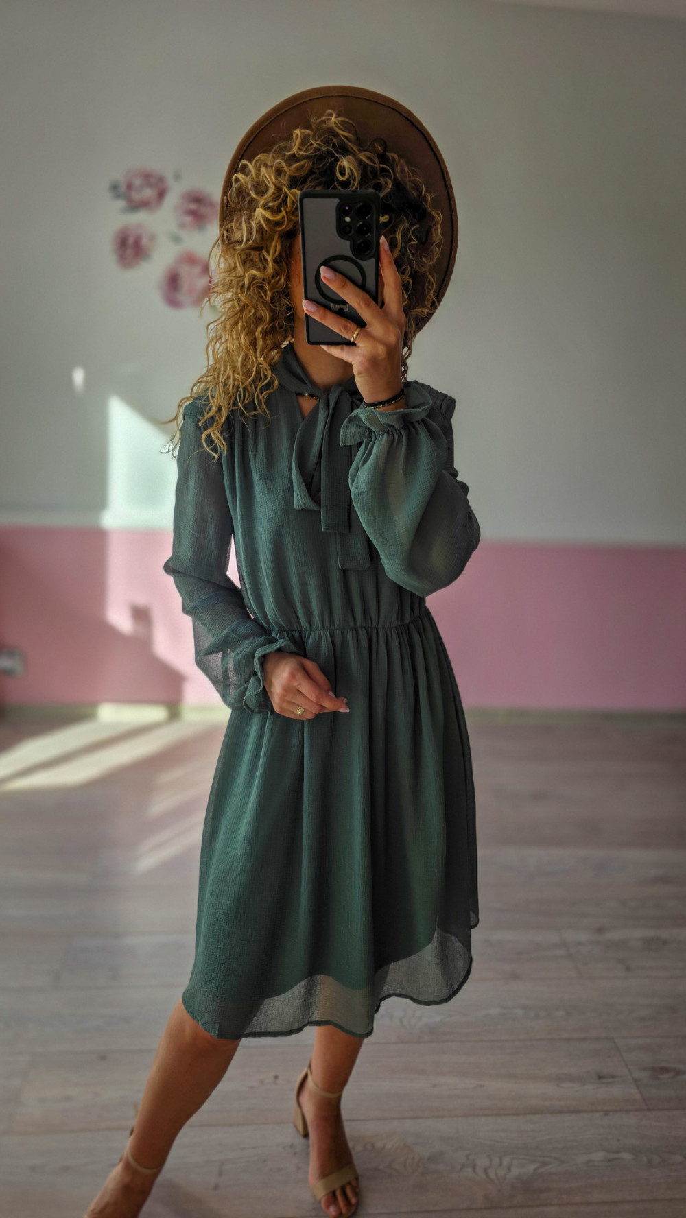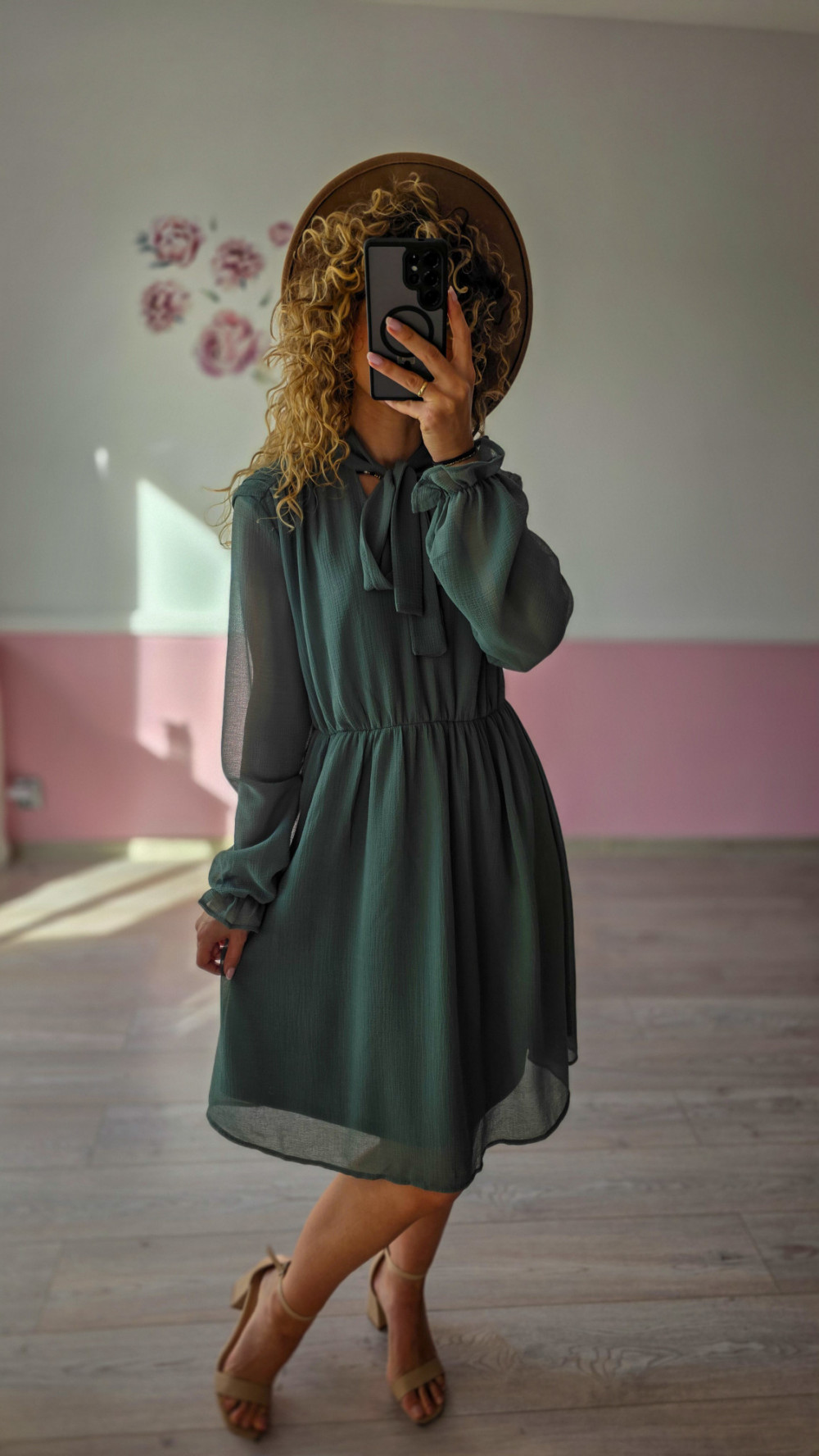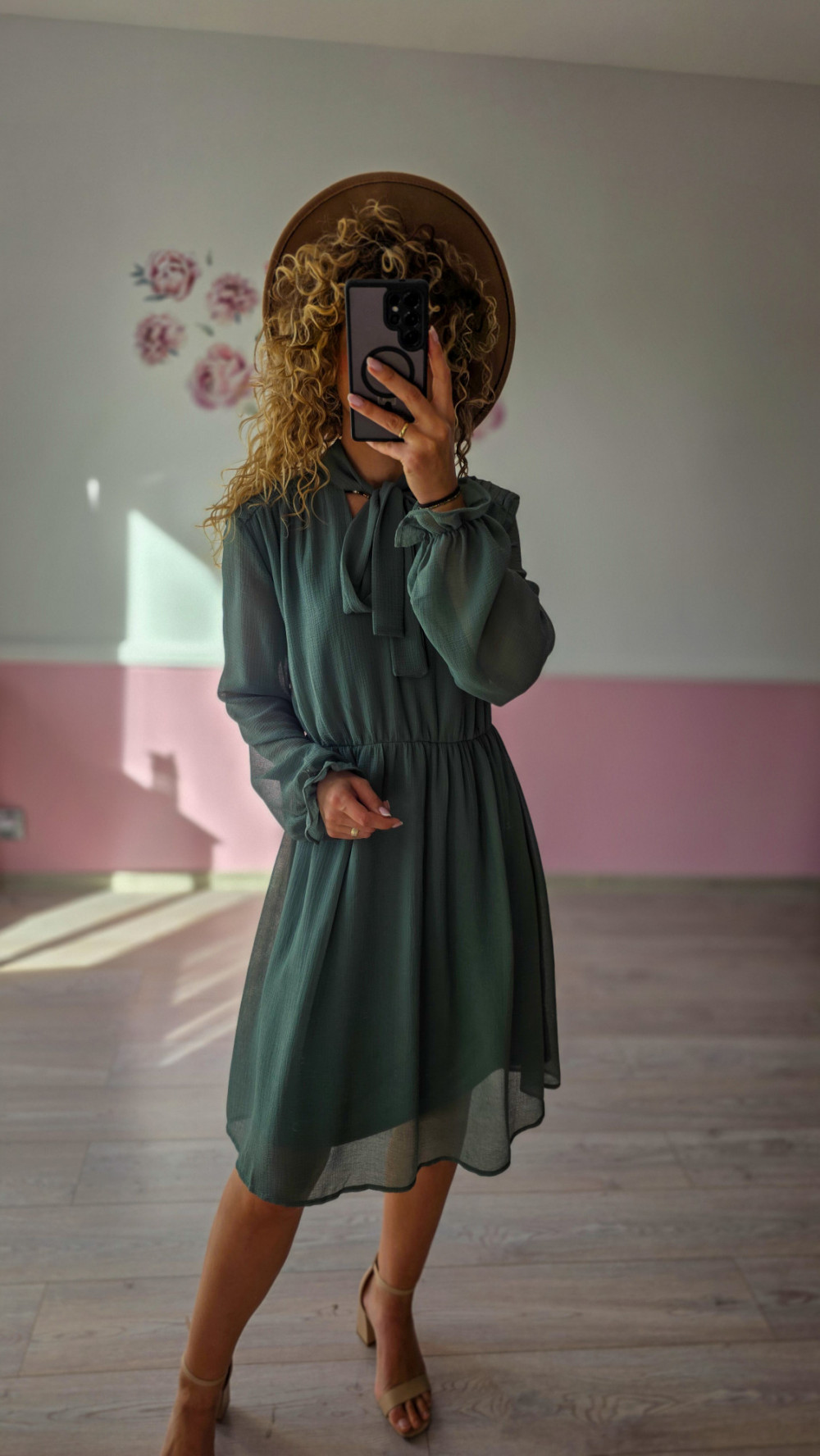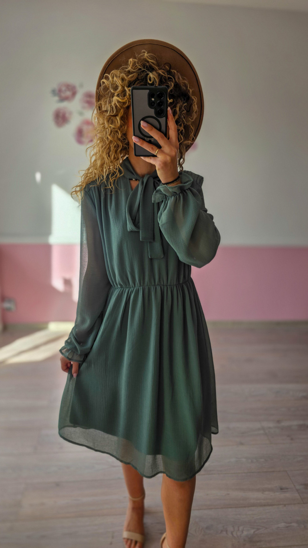 Zielona sukienka szyfonowa z wiązaniem pod szyją