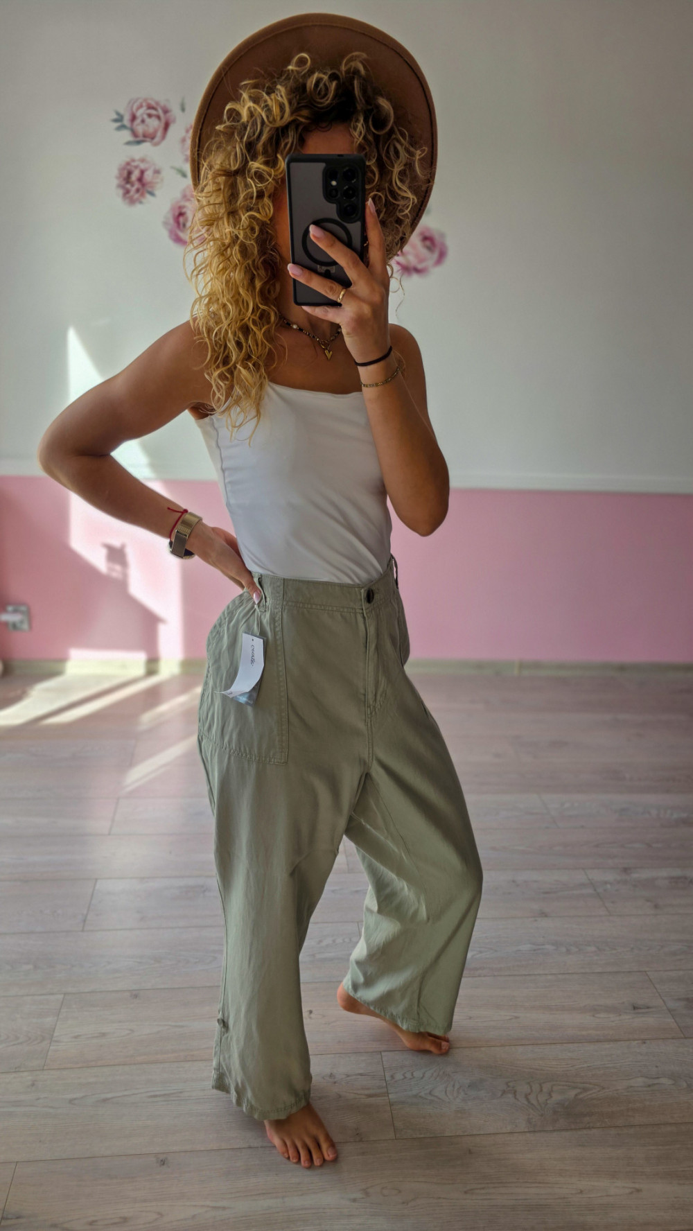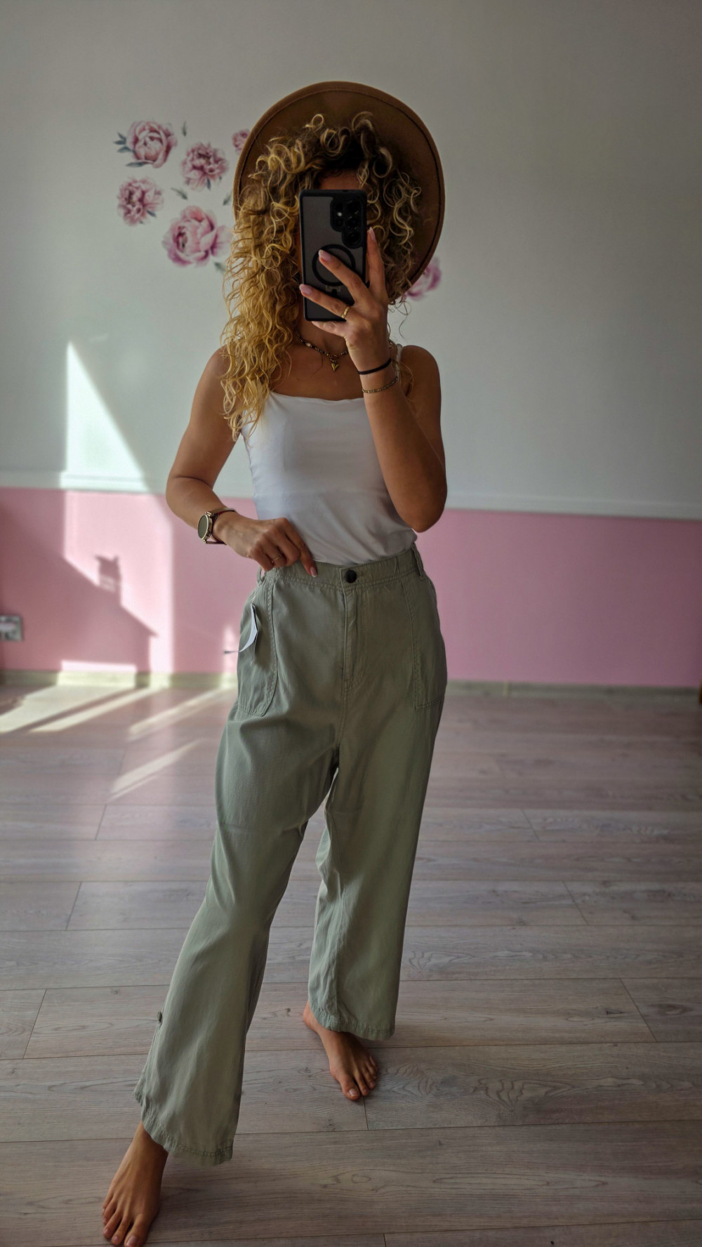 Wygodne, lekkie i niezwykle modne zielone spodnie z szeroką nogawką to must-have każdej kobiety ceniącej styl i komfort. Wykonane z oddychającego materiału, posiadają praktyczne kieszenie oraz elastyczny pas, który dopasowuje się do sylwetki.