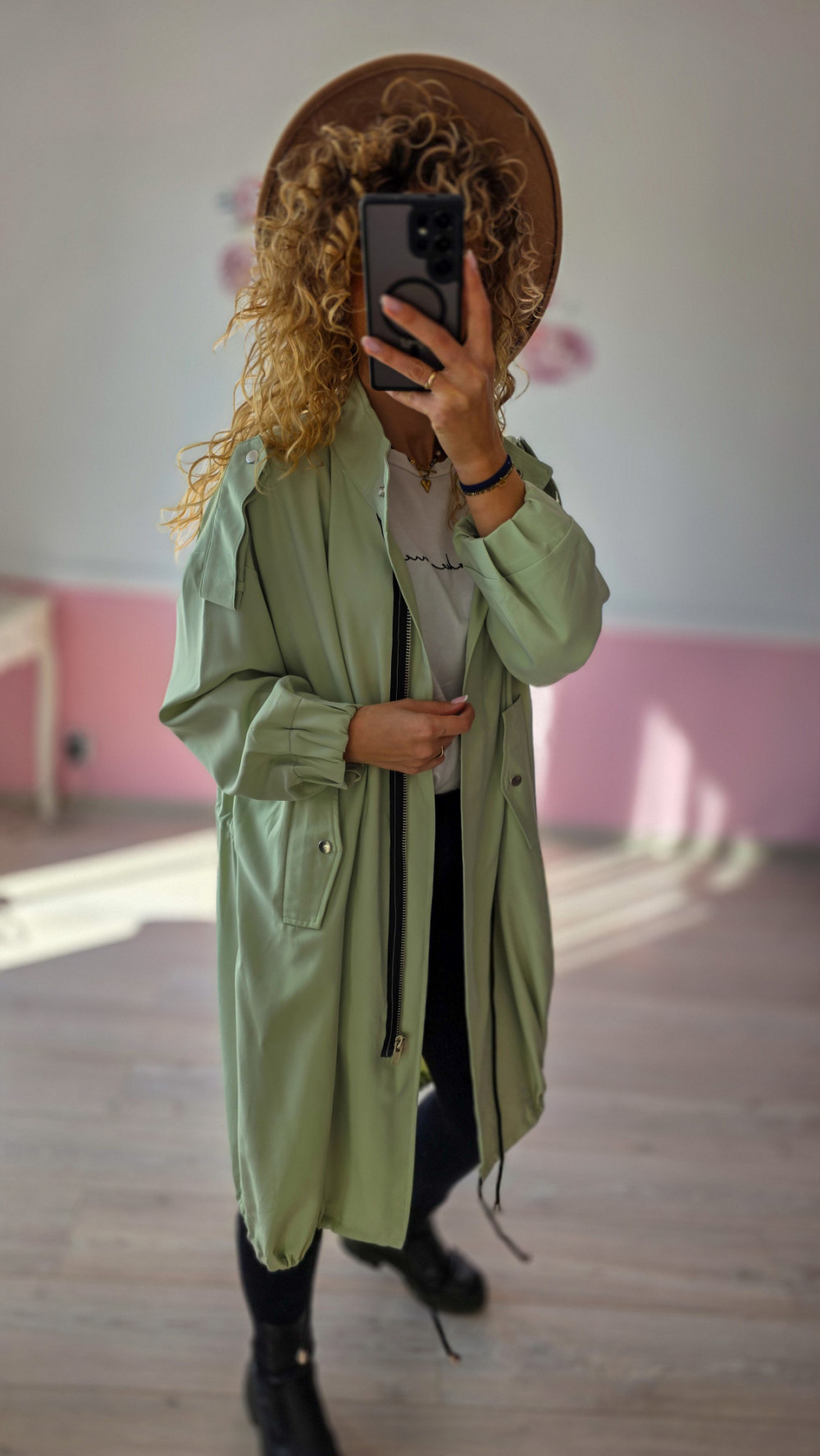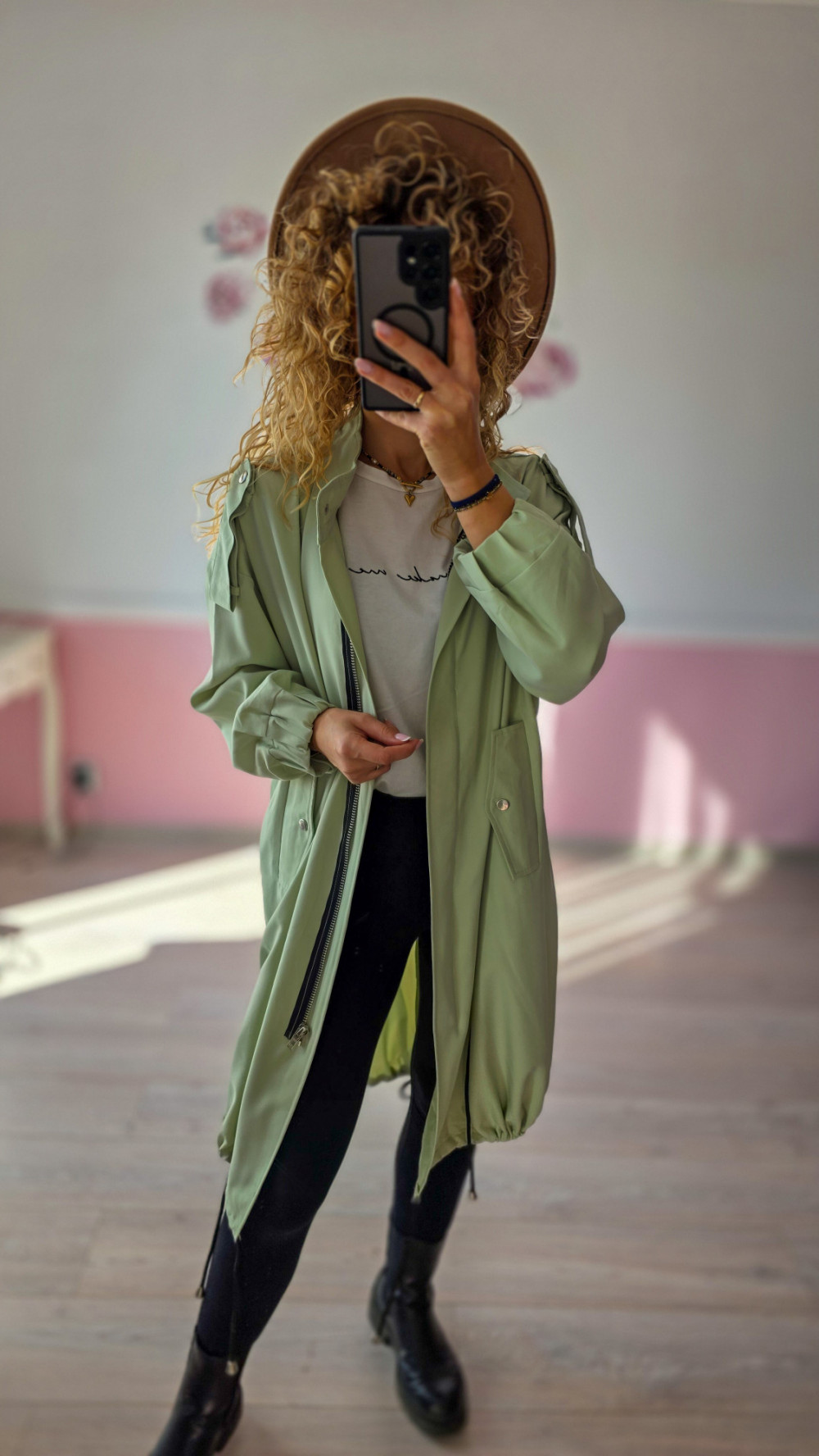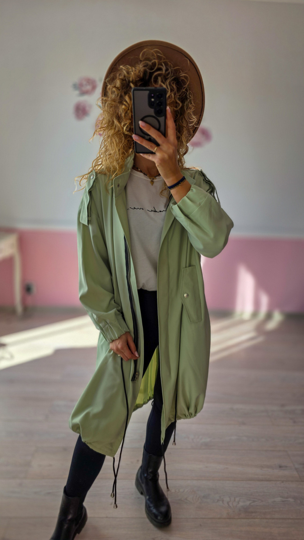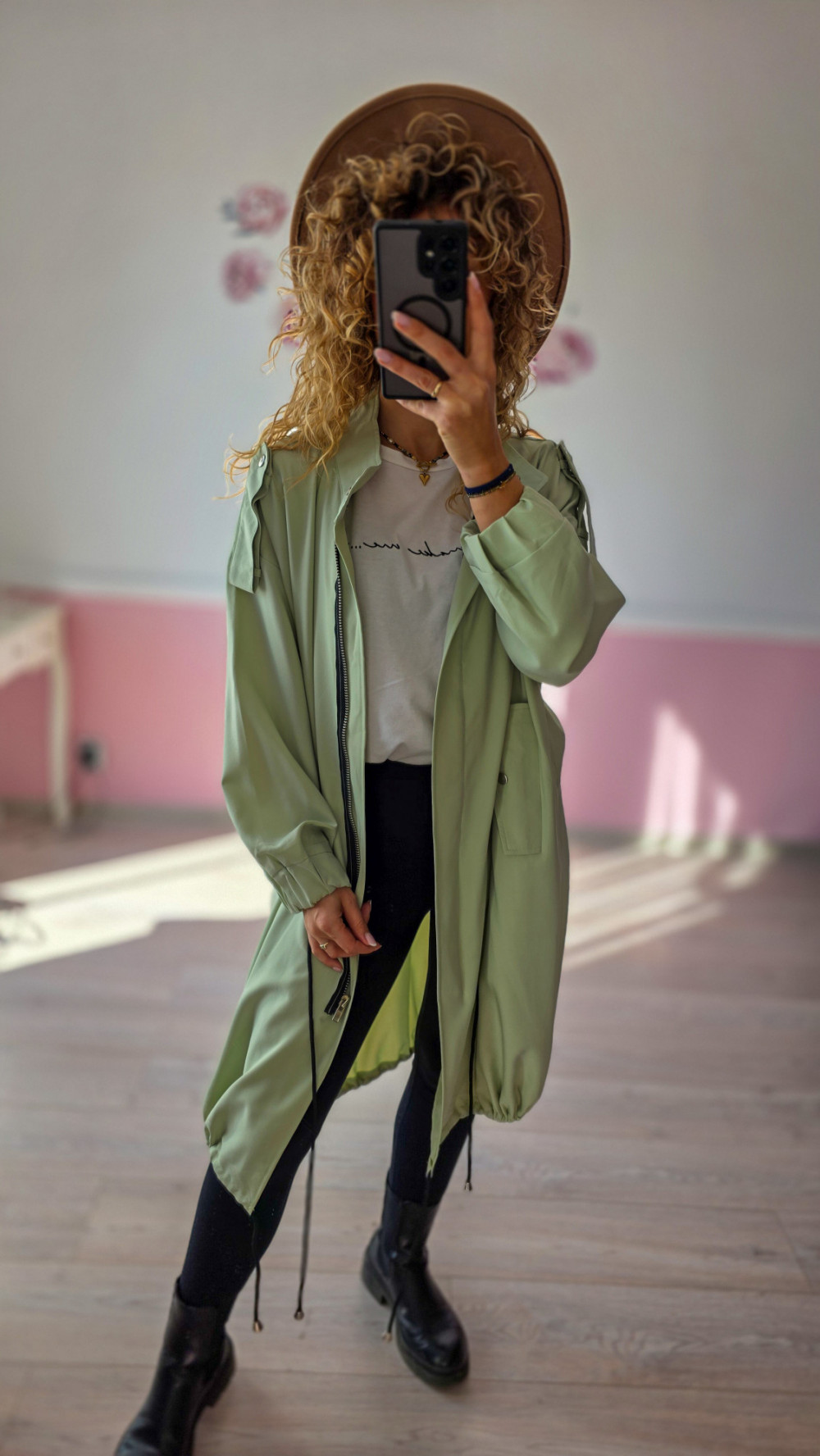 - posiada sznurek ściągający w pasie oraz na samym dole.