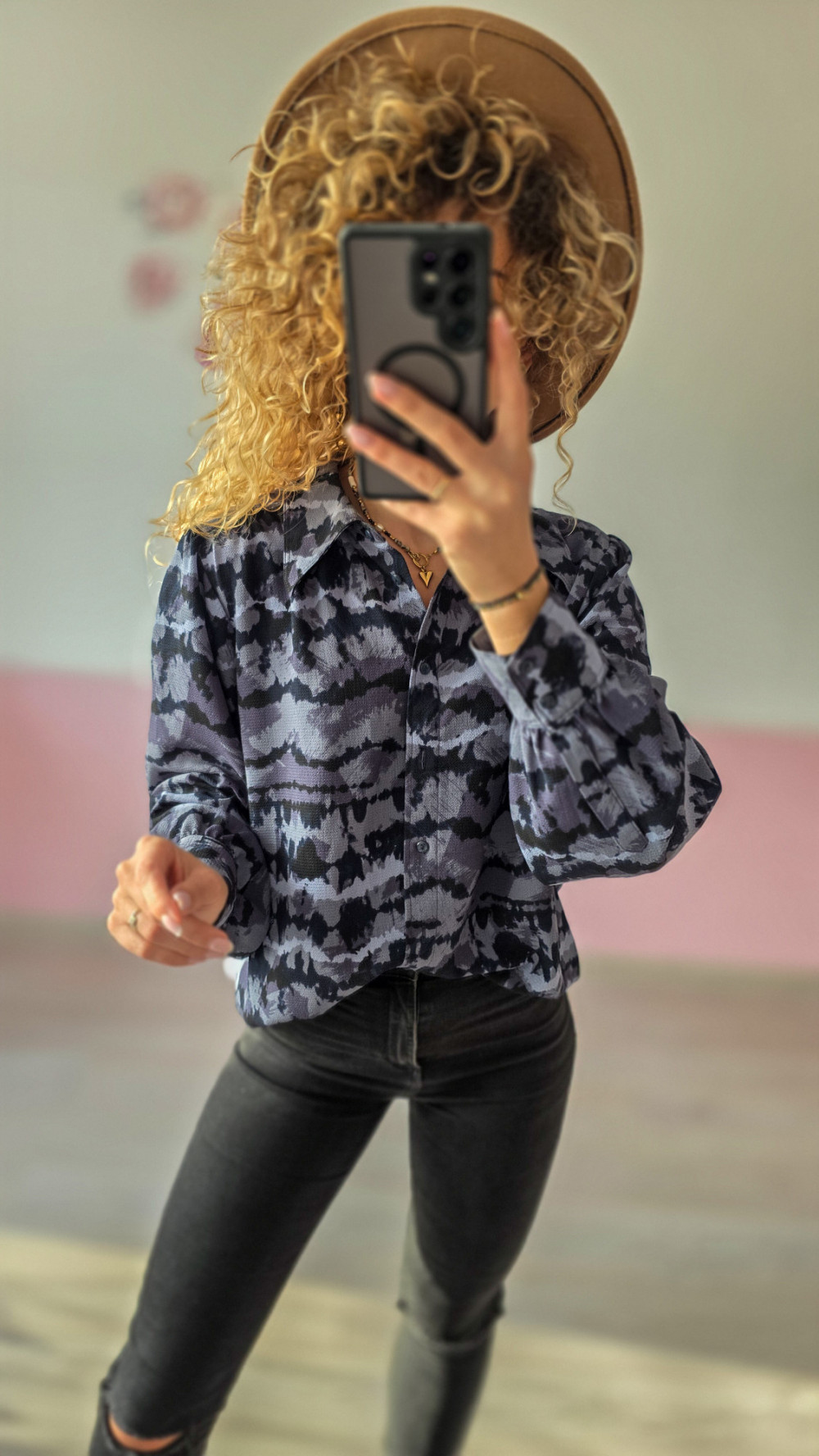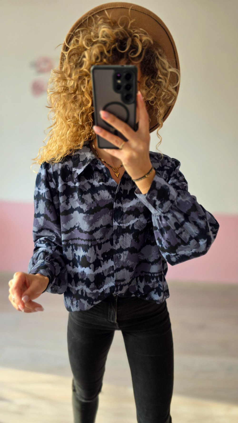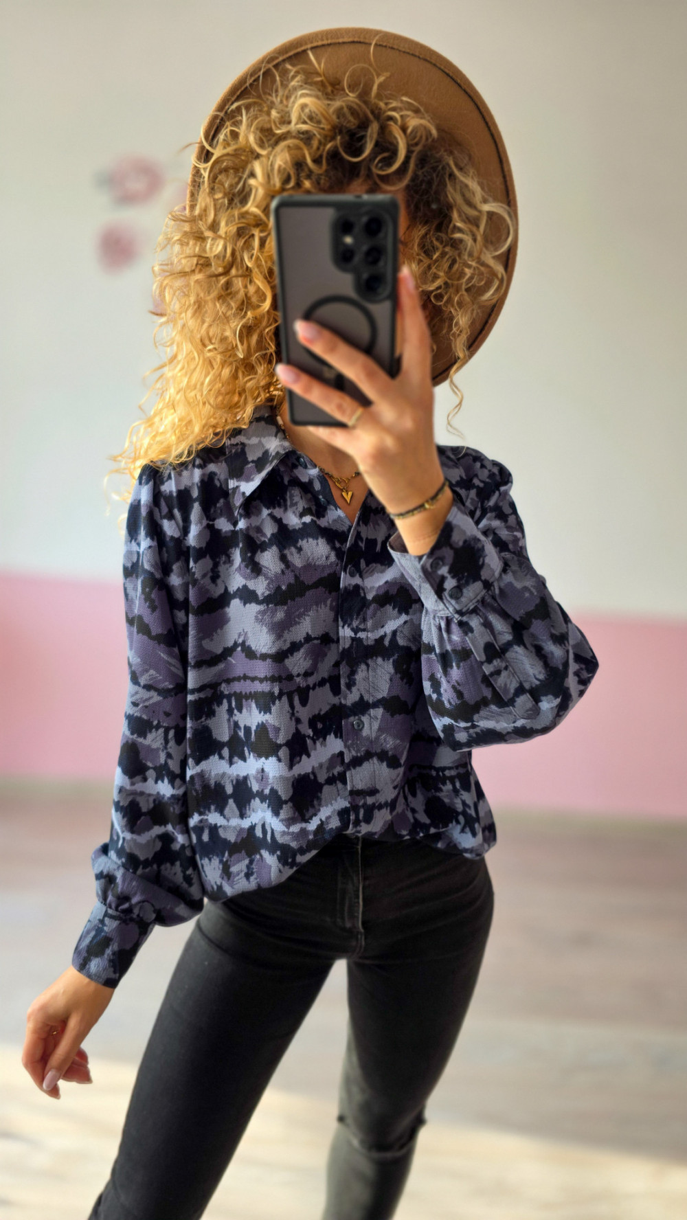 Koszula w niebiesko-czarne wzory to połączenie klasyki i nowoczesnego stylu. Lekki materiał i lekko oversize’owy krój gwarantują wygodę, a ciekawy nadruk nadaje całości charakteru. Doskonale sprawdzi się do biura, na spotkanie czy spacer po mieście. To wyjątkowy egzemplarz z Domowego Lumpeksu – miejsca, gdzie styl spotyka się z ideą slow fashion.