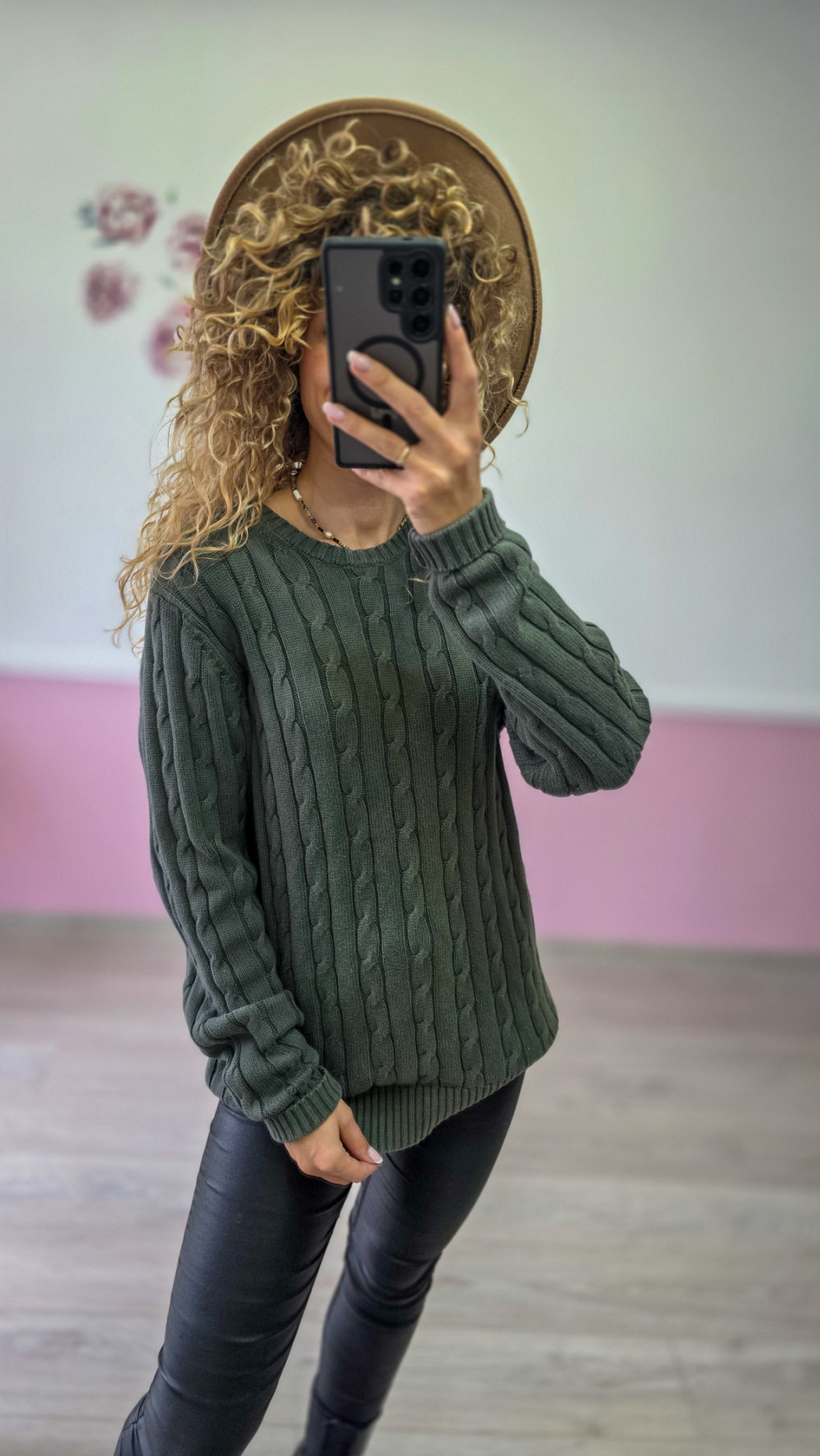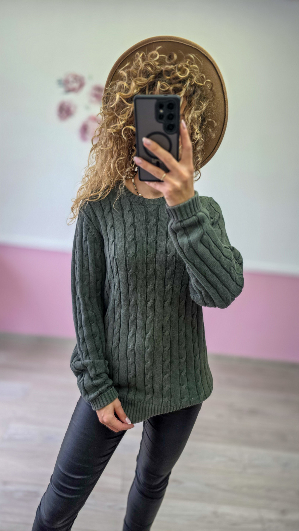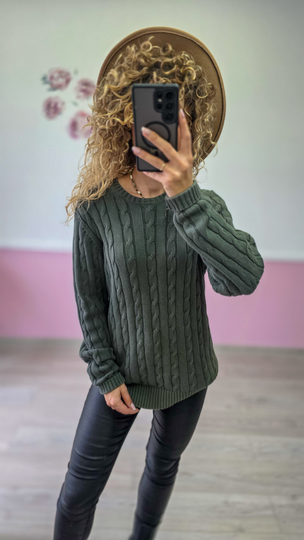 Sweter warkoczowy – khaki