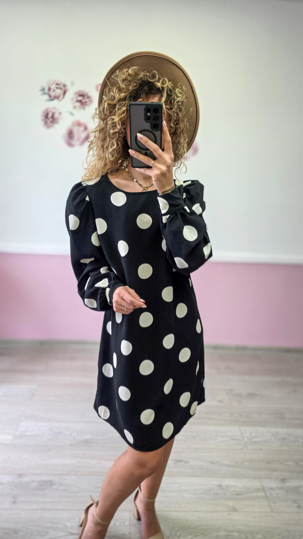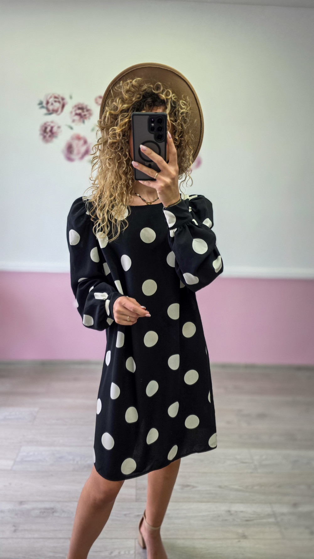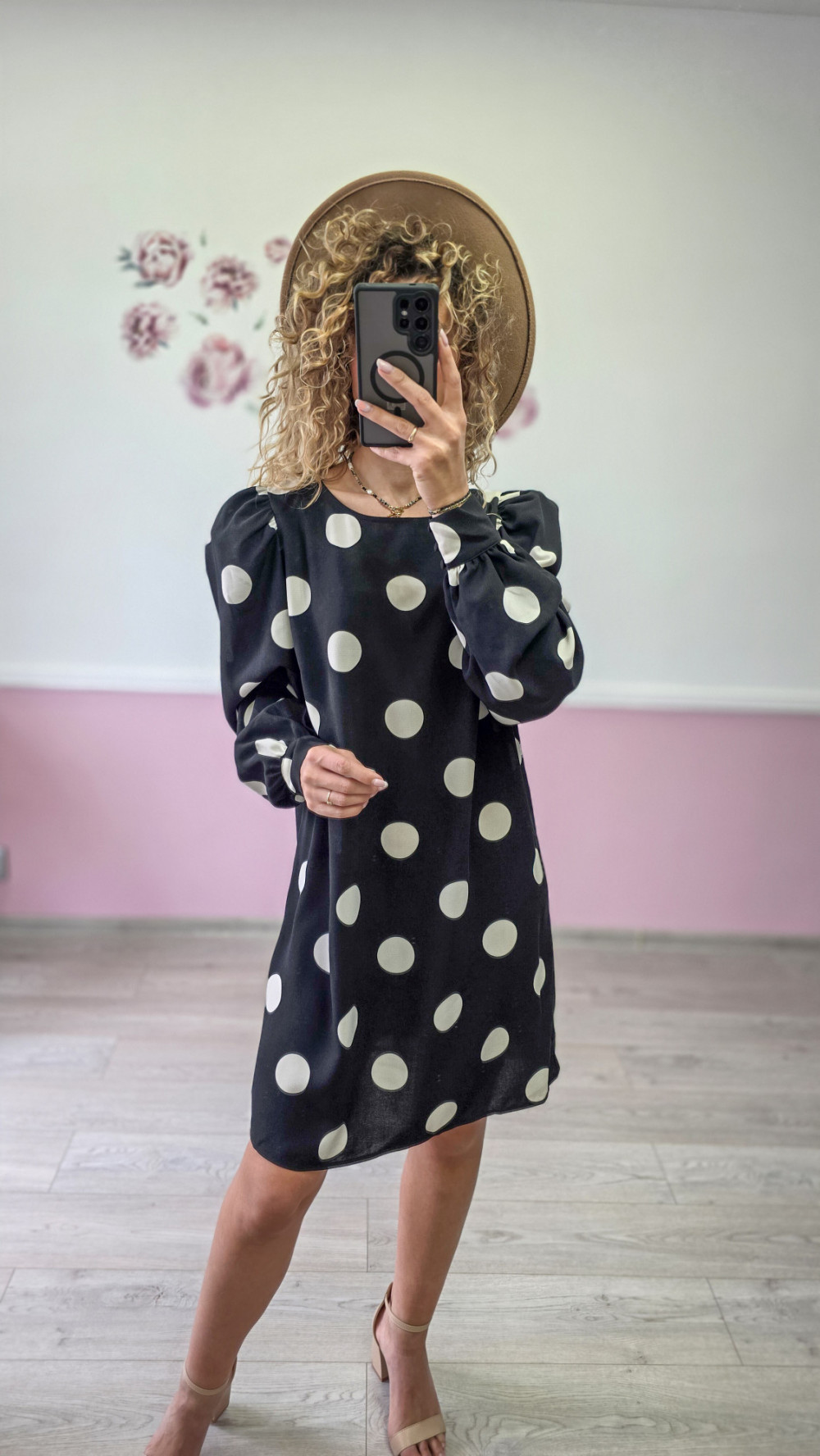 Klasyczna czarna sukienka w duże białe grochy to ponadczasowa elegancja w nowoczesnym wydaniu. Bufiaste rękawy dodają jej lekkości i szyku, a prosty krój gwarantuje wygodę. Idealna na spotkania, przyjęcia i codzienne wyjścia. Zestaw ją z kozakami lub szpilkami, by stworzyć stylowy look w klimacie retro.