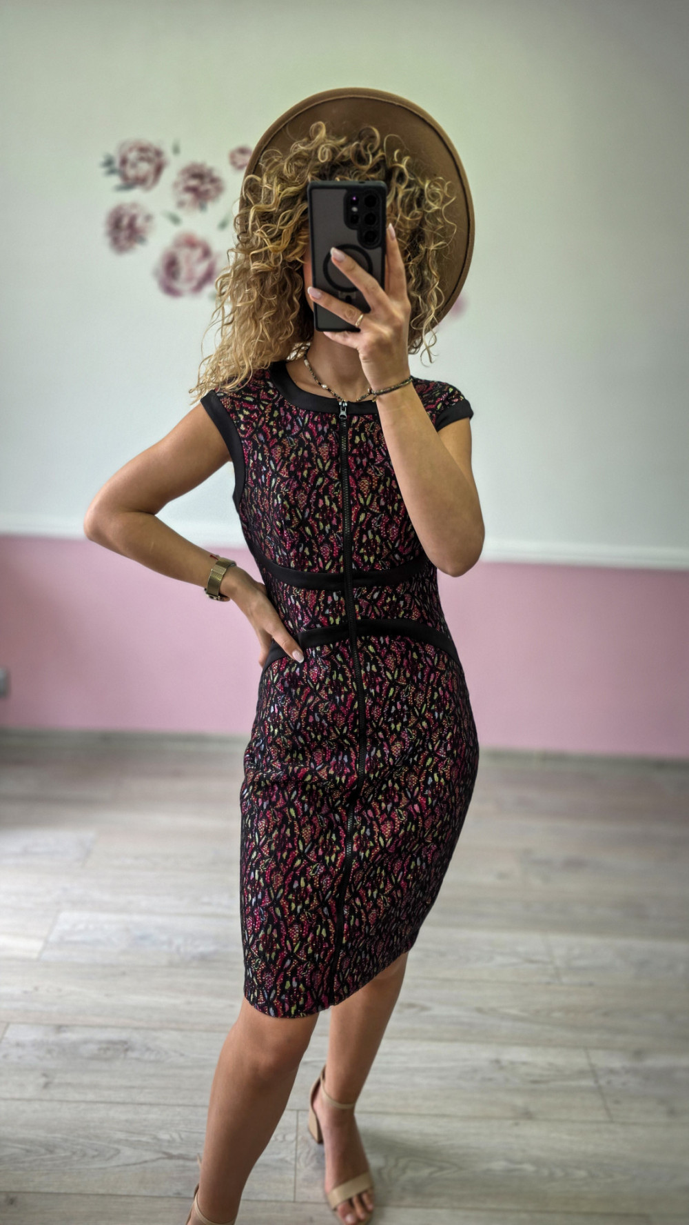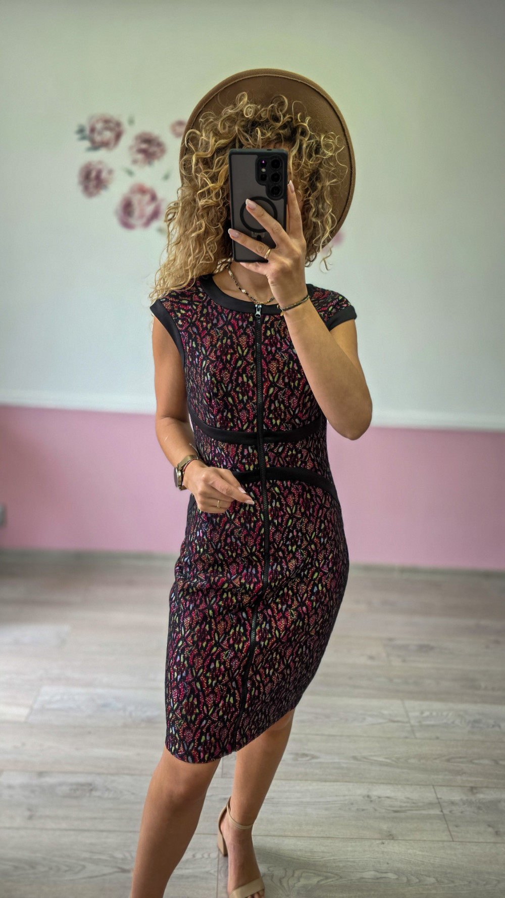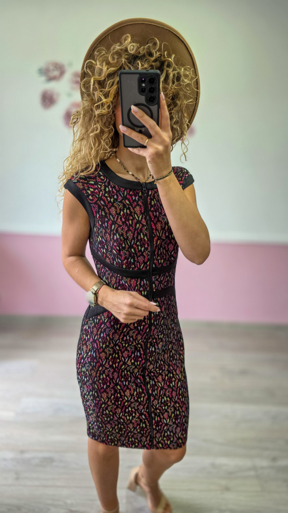 Sukienka ołówkowa z zamkiem – czarna z kolorowym wzorem