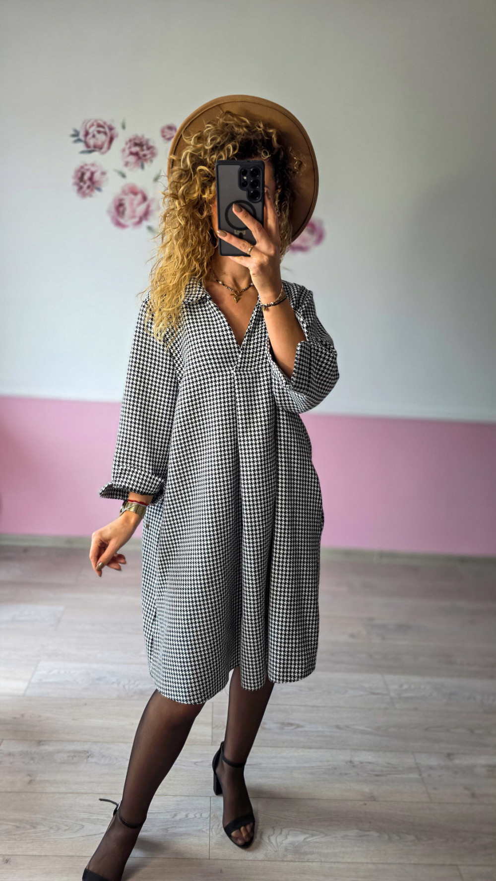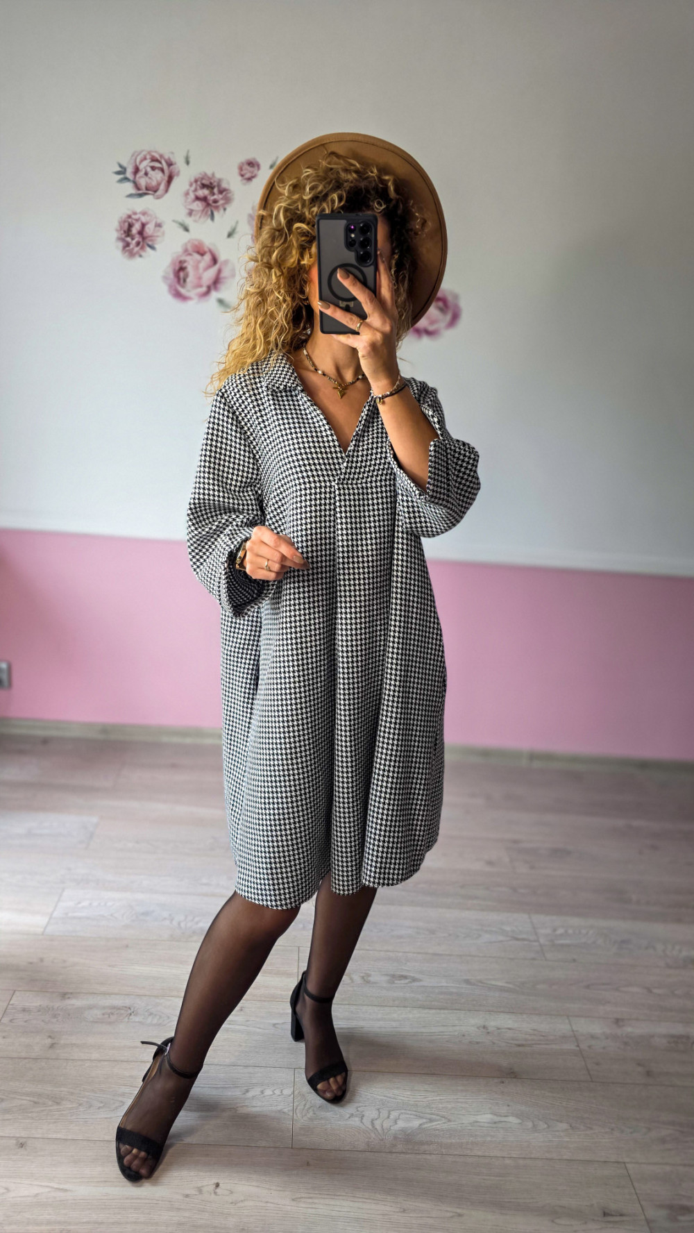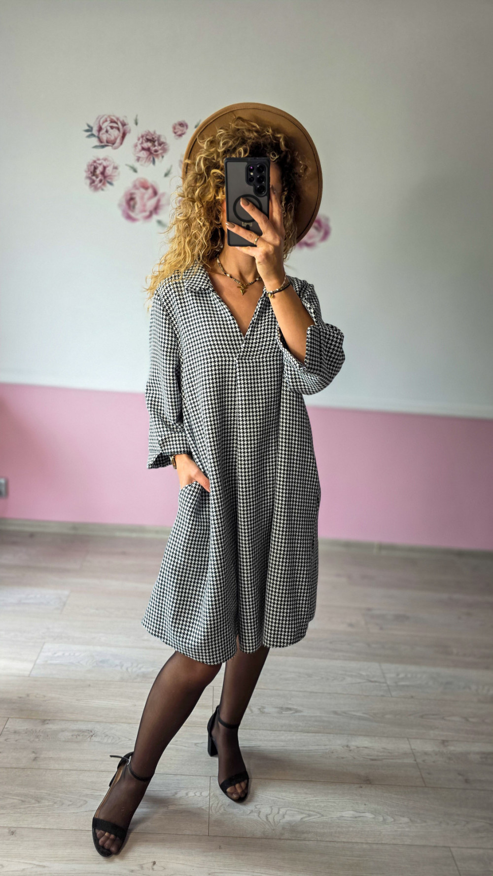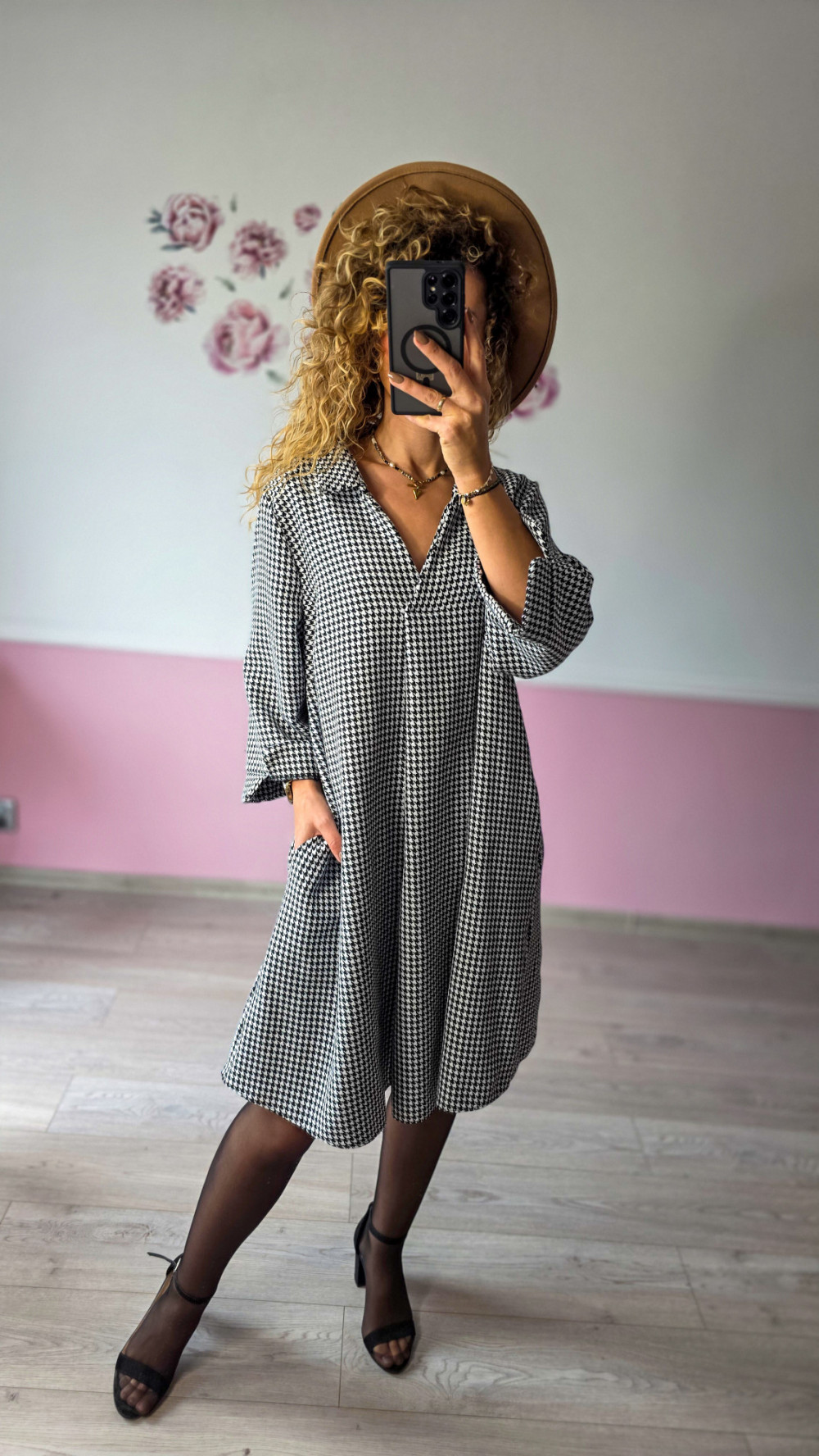 Czarno-biały wzór w pepitkę to klasyka, która nigdy nie wychodzi z mody. Sukienka świetnie sprawdzi się w biurze, na spotkaniach czy na co dzień — zestaw ją z botkami lub eleganckimi szpilkami, a stworzysz ponadczasowy look.