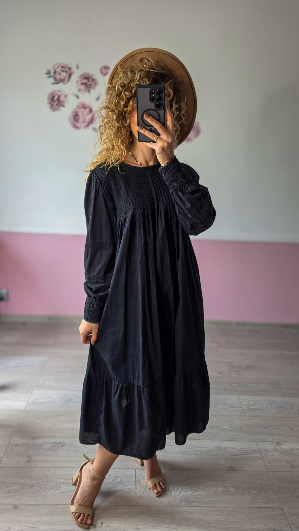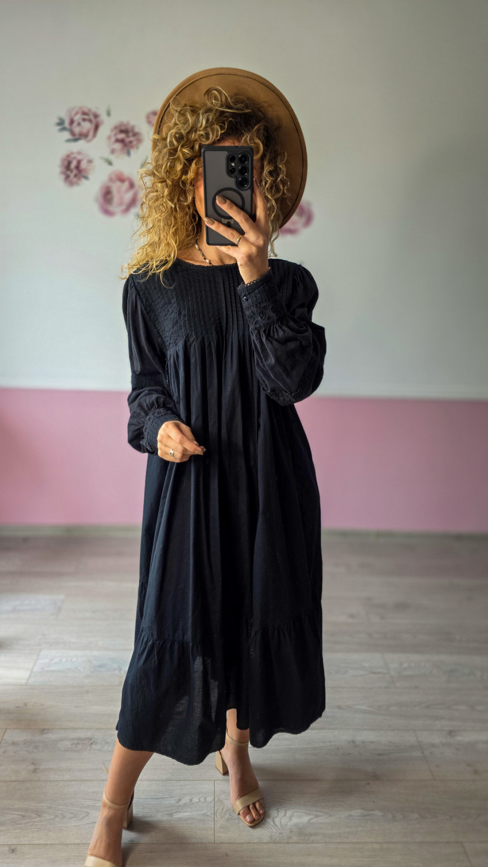 Zachwyć subtelną elegancją! Ta czarna sukienka midi z koronkowymi wstawkami to połączenie klasyki i kobiecości, które nigdy nie wychodzi z mody.