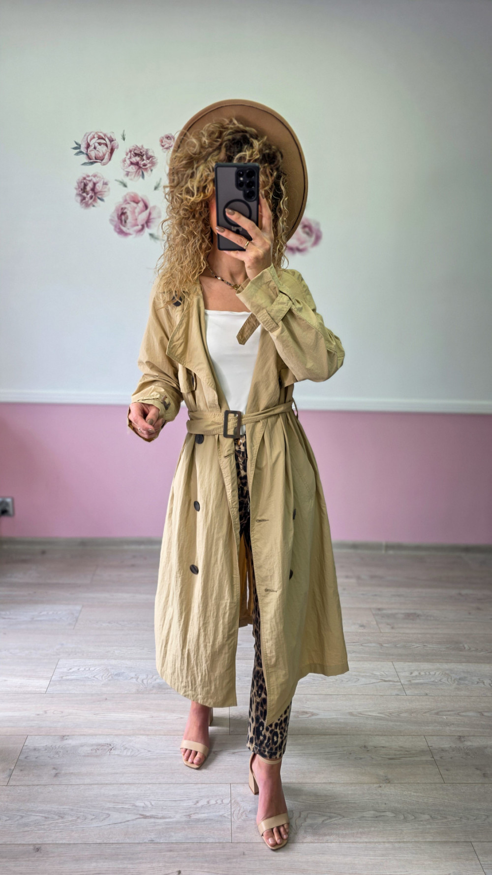 Trencz City Muse to idealny wybór dla kobiet, które cenią ponadczasowy styl i elegancję. Lekki materiał, subtelny połysk i delikatny beżowy odcień sprawiają, że wygląda luksusowo, a jednocześnie doskonale sprawdza się na co dzień.