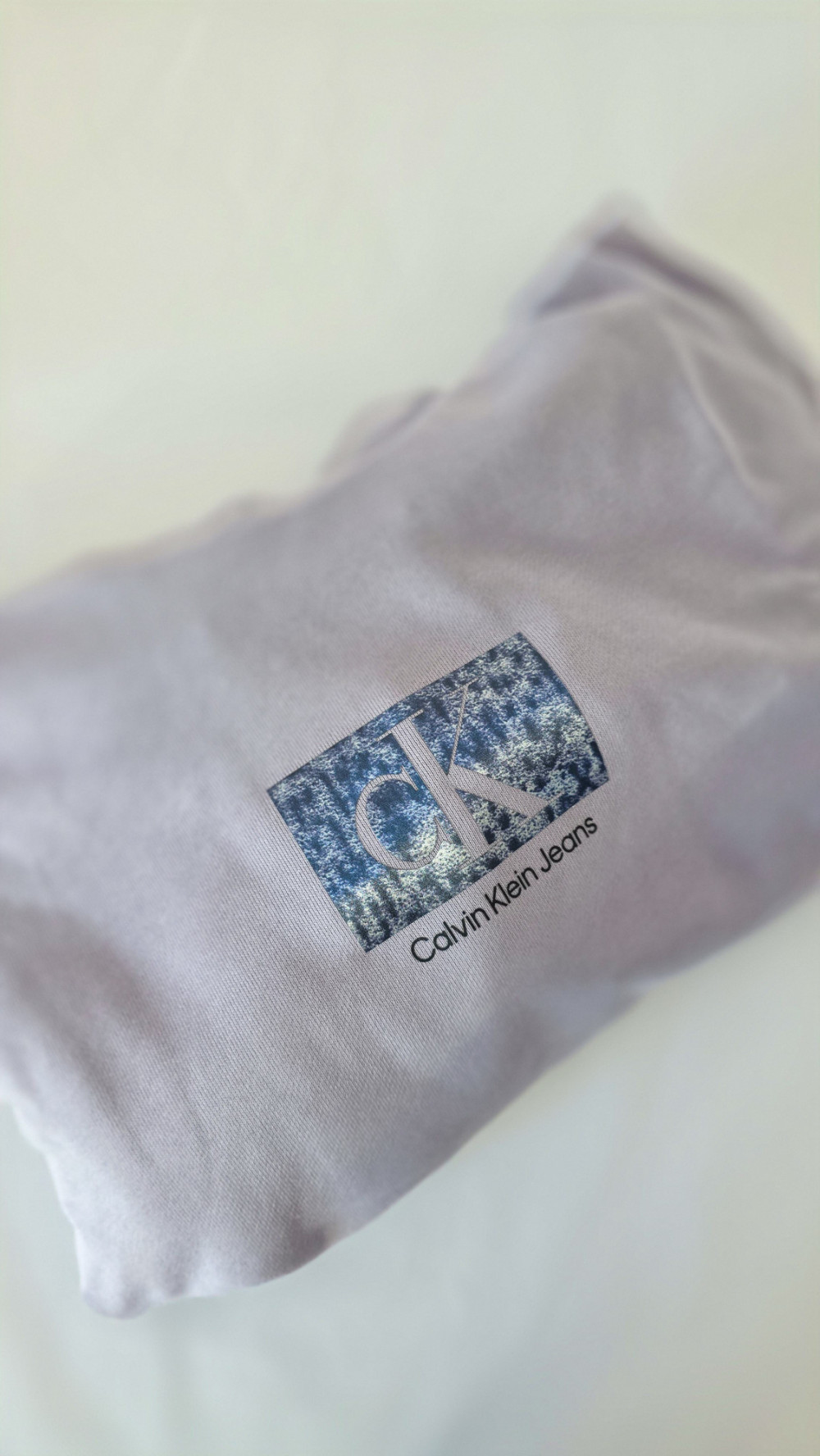 Stylowa, oryginalna bluza marki Calvin Klein Jeans w modnym, pastelowym odcieniu liliowym (lavender). Wykonana z miękkiej, wysokiej jakości bawełny, gwarantuje komfort noszenia i swobodę ruchów.