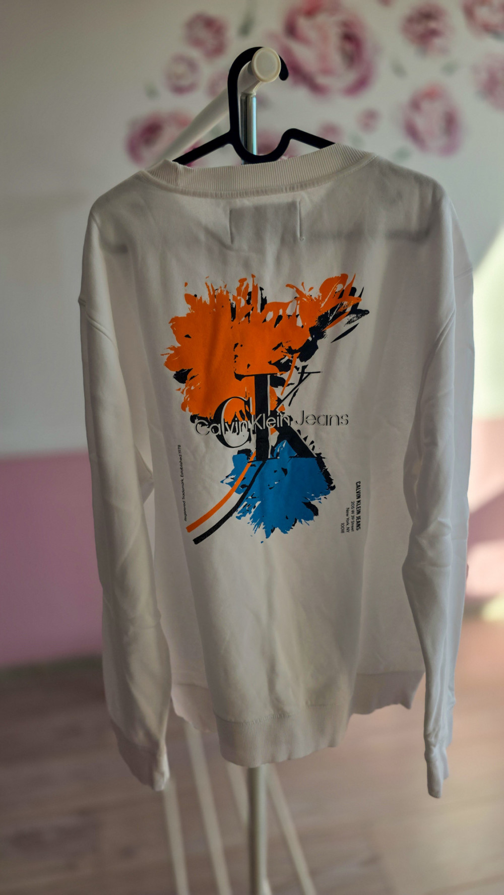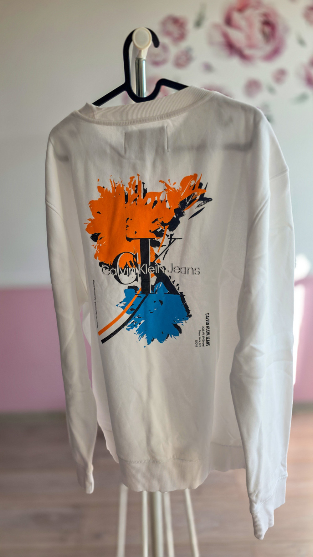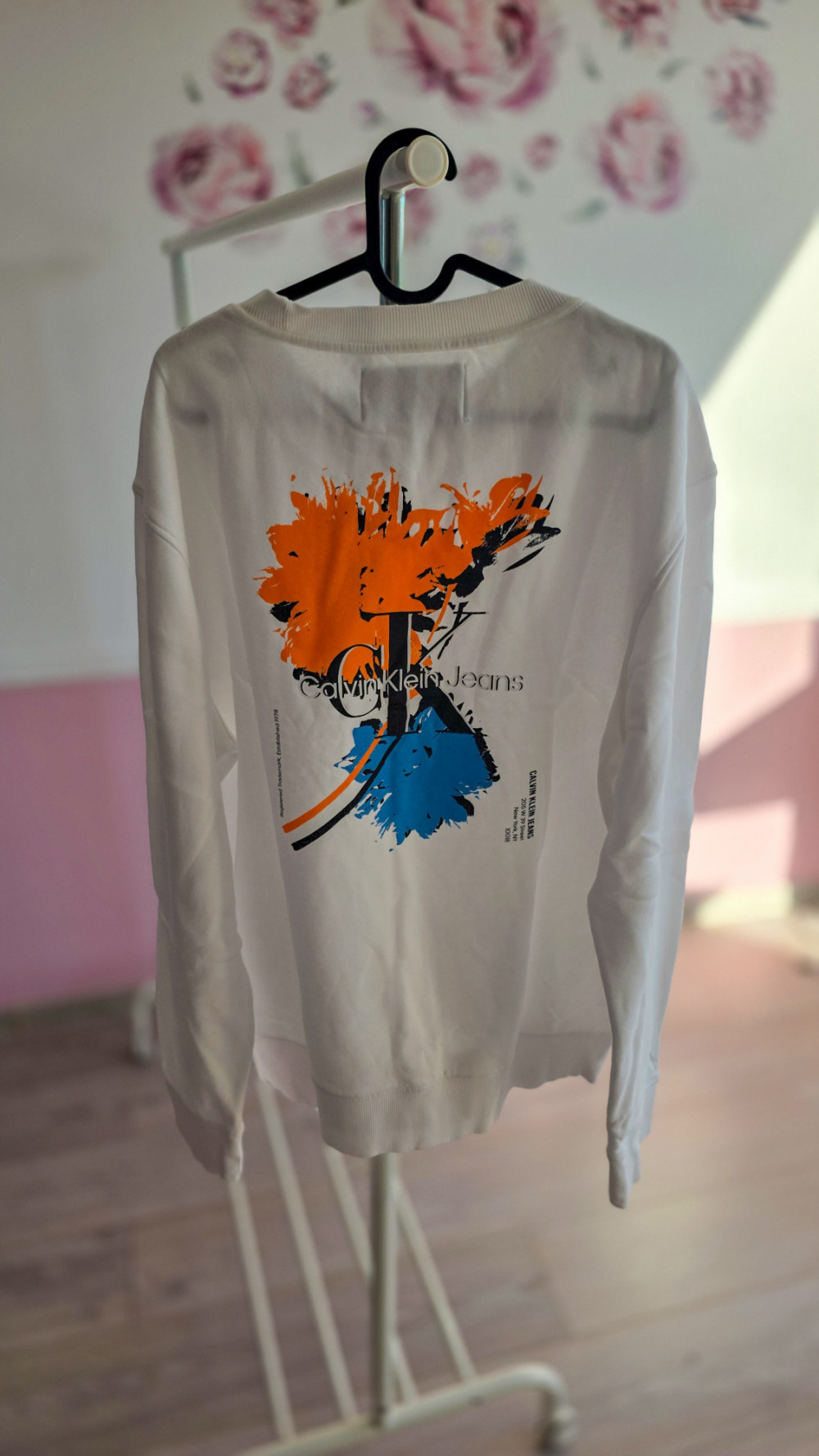 Calvin Klein Jeans – damska biała bluza z nadrukiem artystycznym na plecach (oryginał, z metkami)