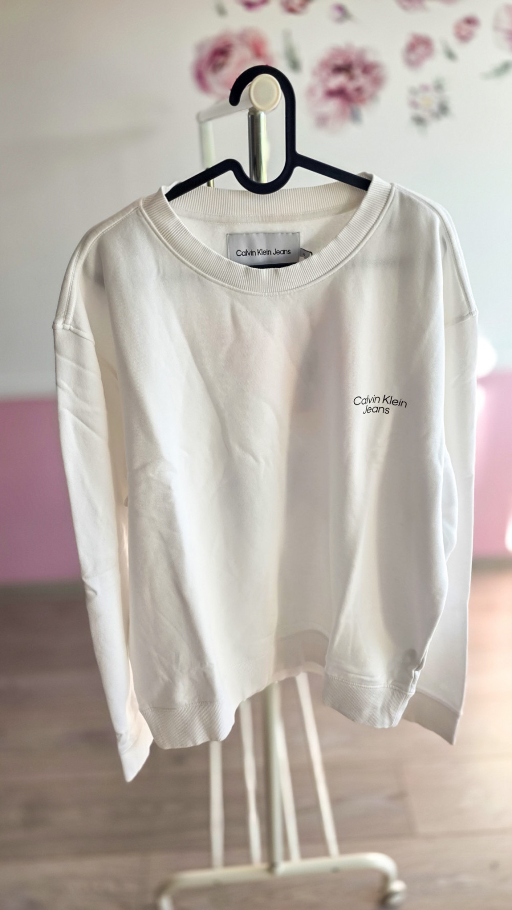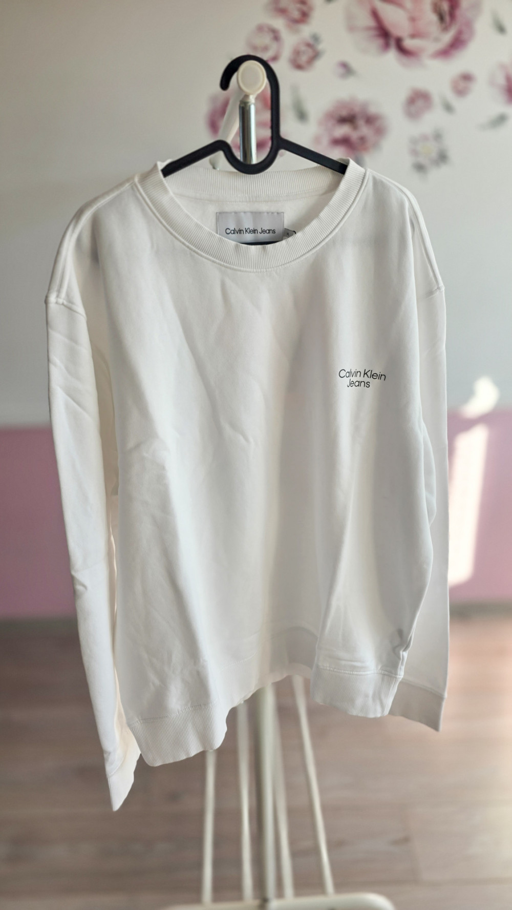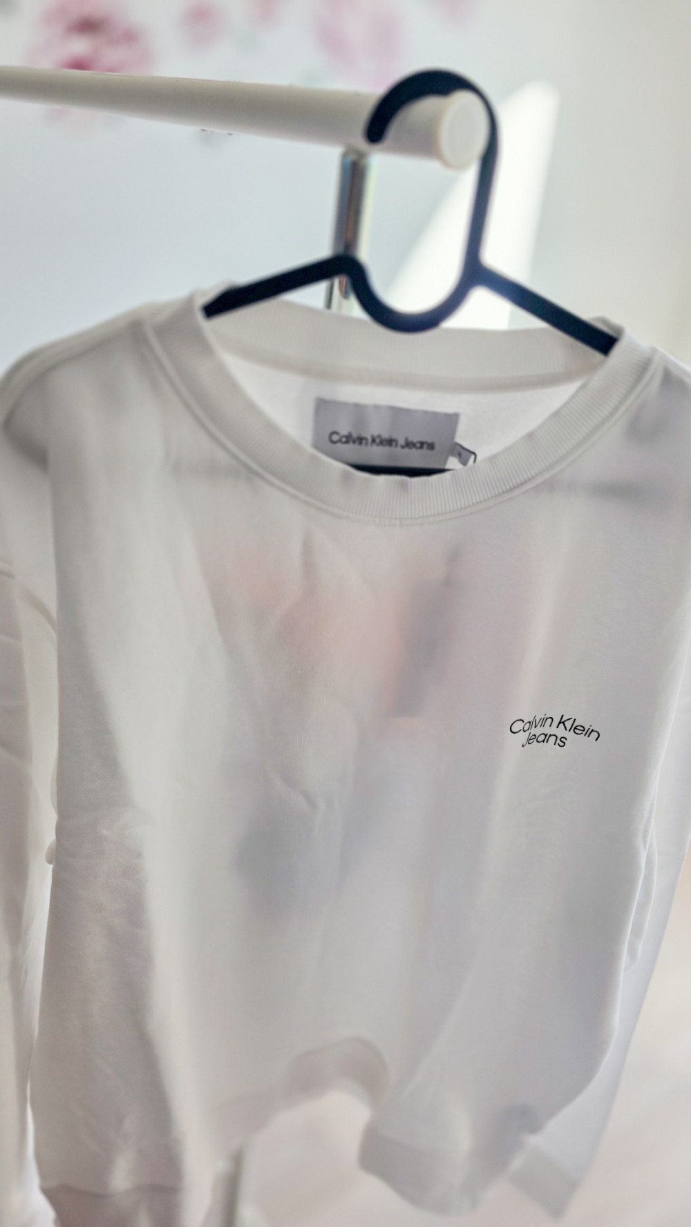 Calvin Klein Jeans – damska biała bluza z nadrukiem artystycznym na plecach (oryginał, z metkami)