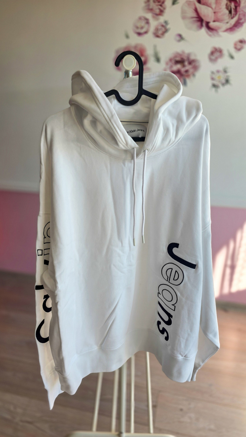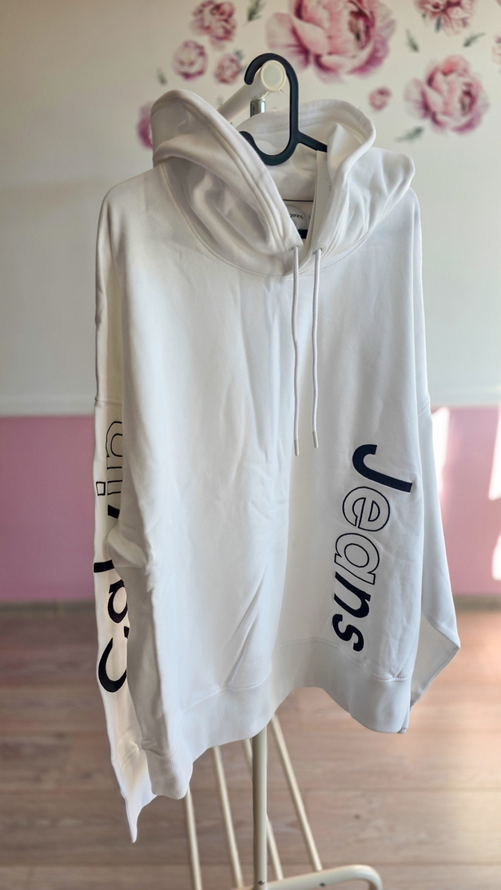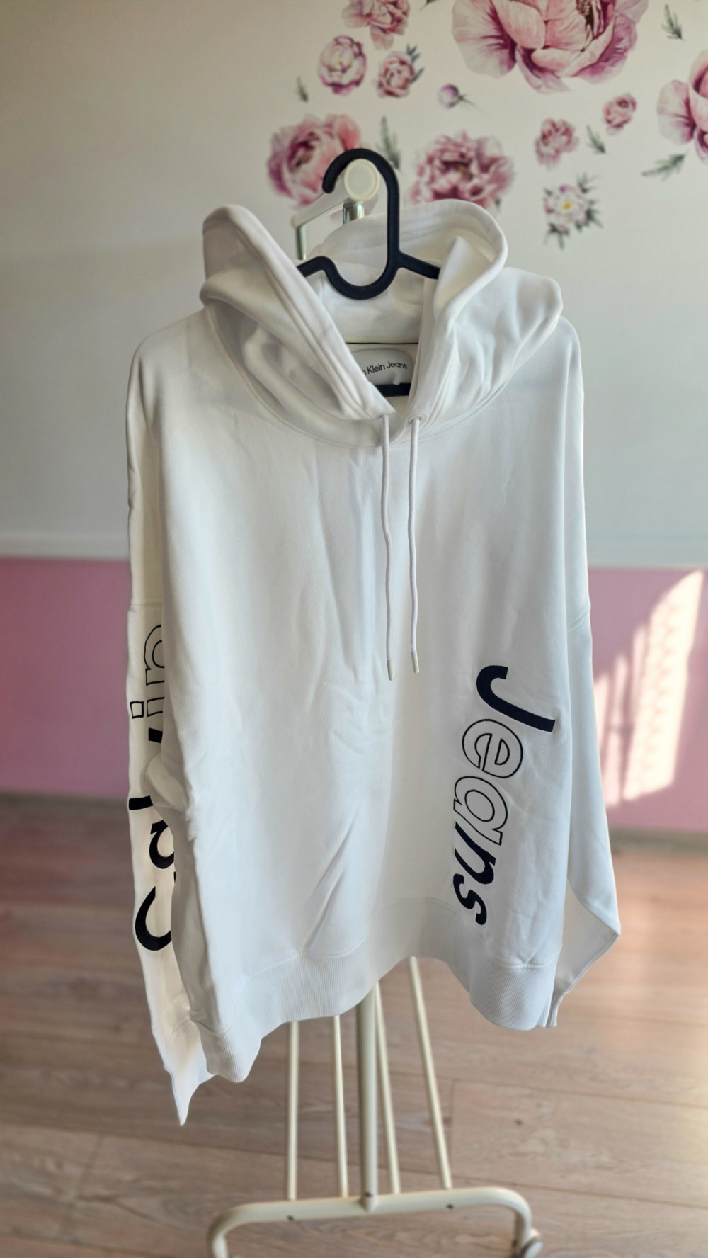 Calvin Klein Jeans – męska biała bluza z kapturem i nadrukiem po bokach (oryginał, z metkami)