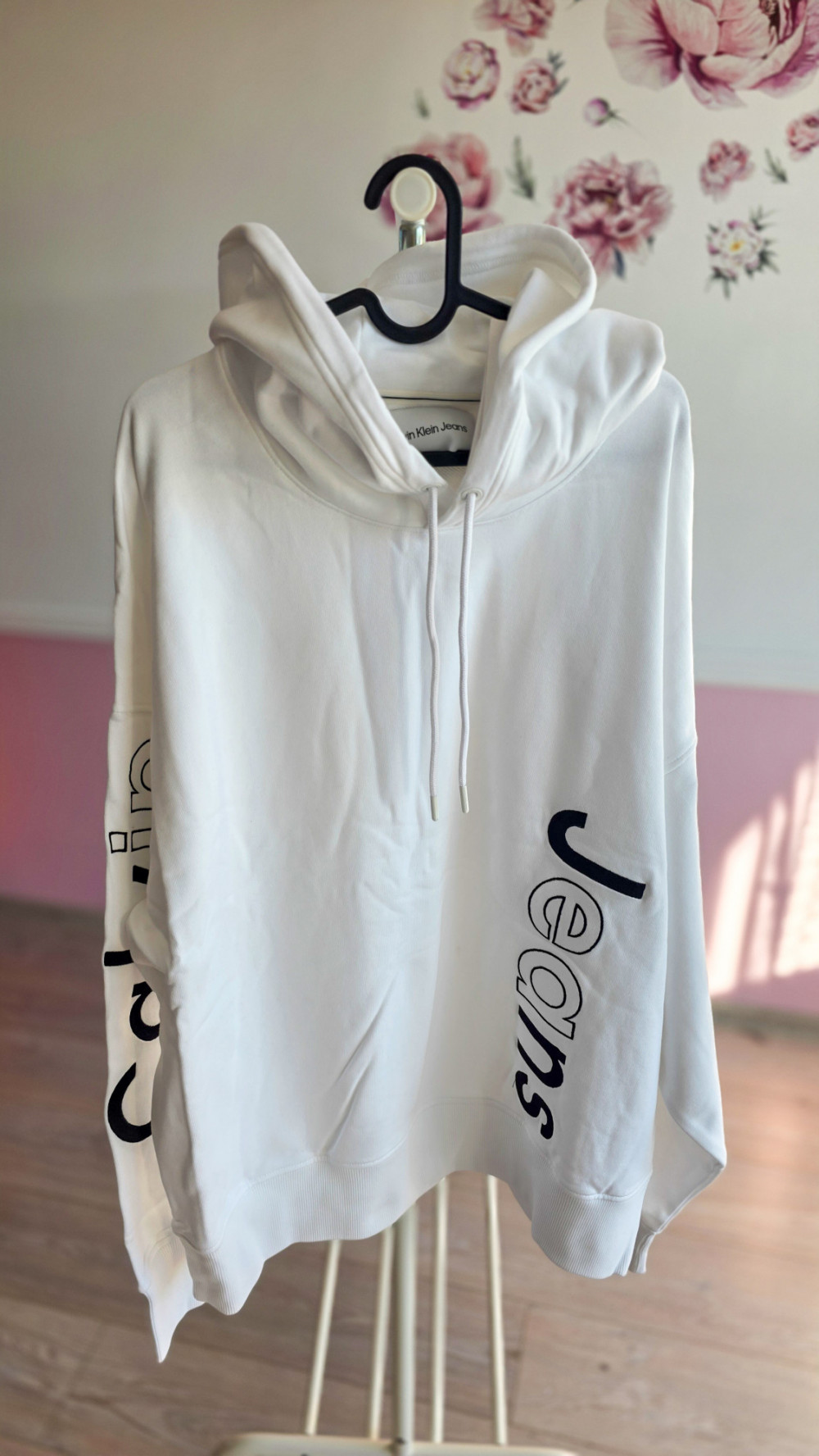 - nadruki Calvin / Jeans po bokach bluzy,