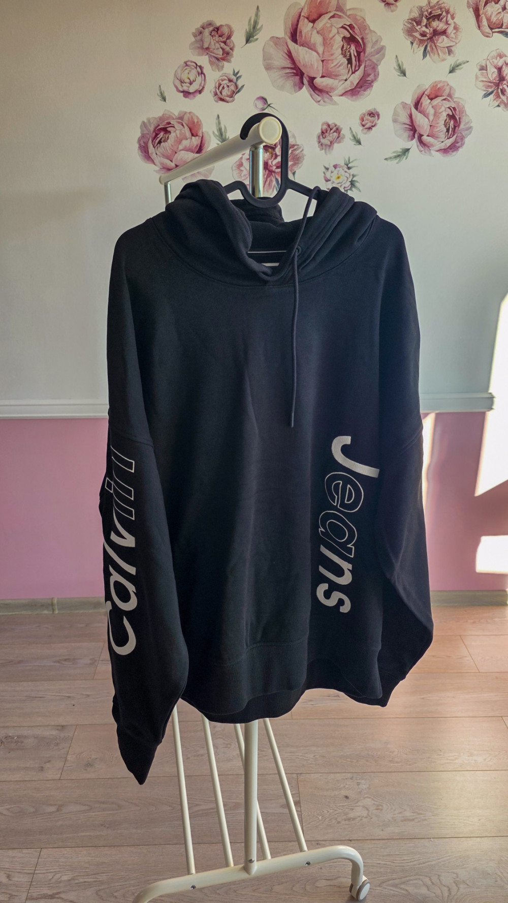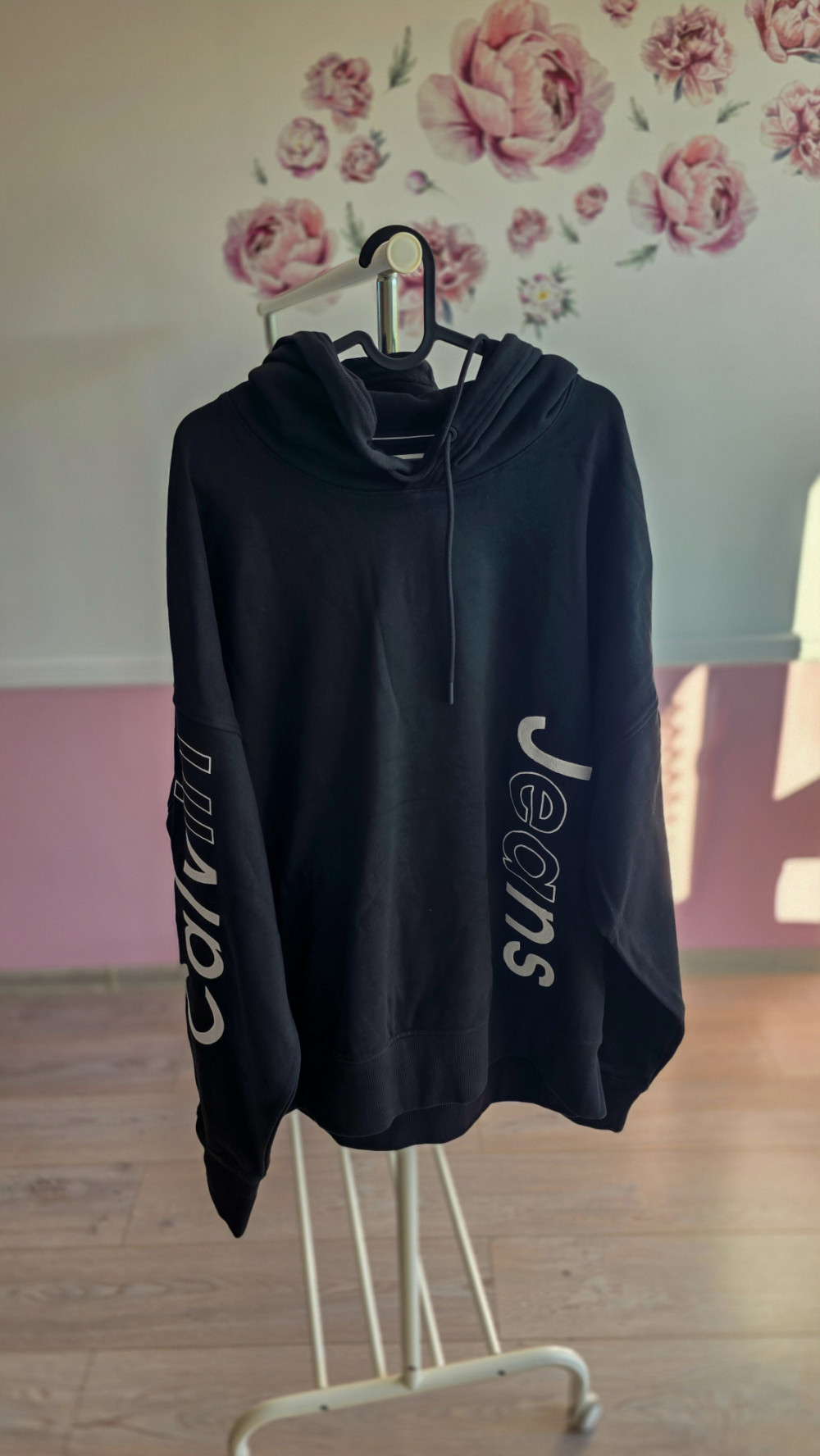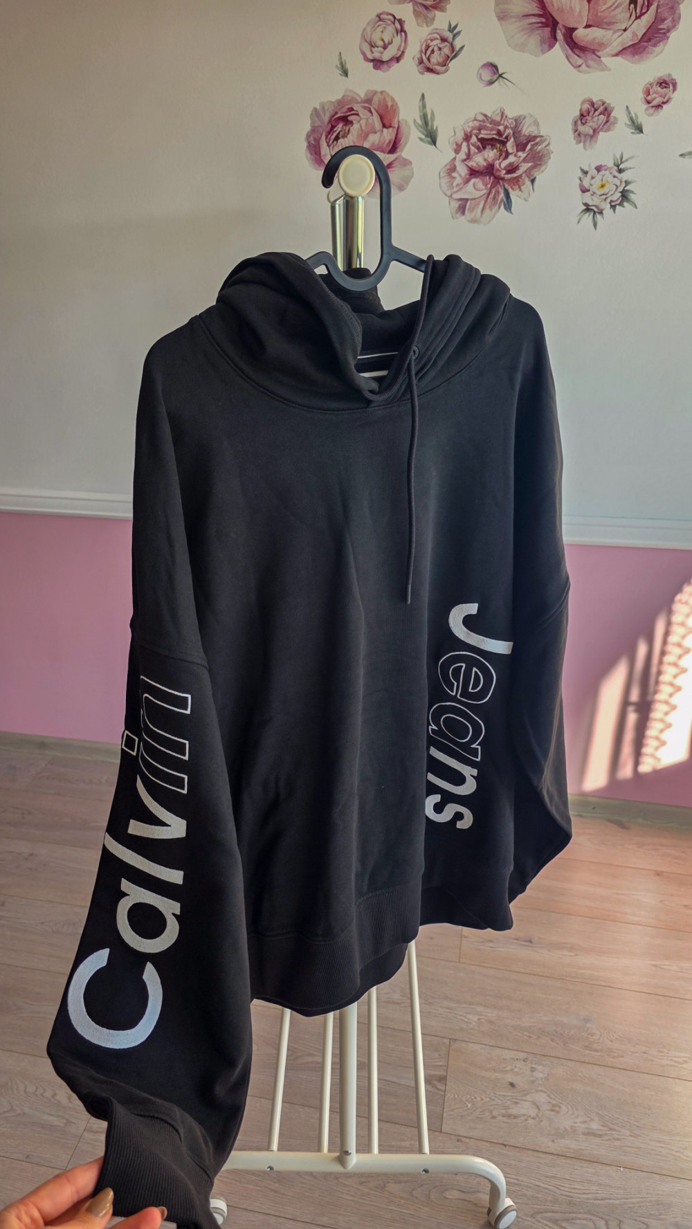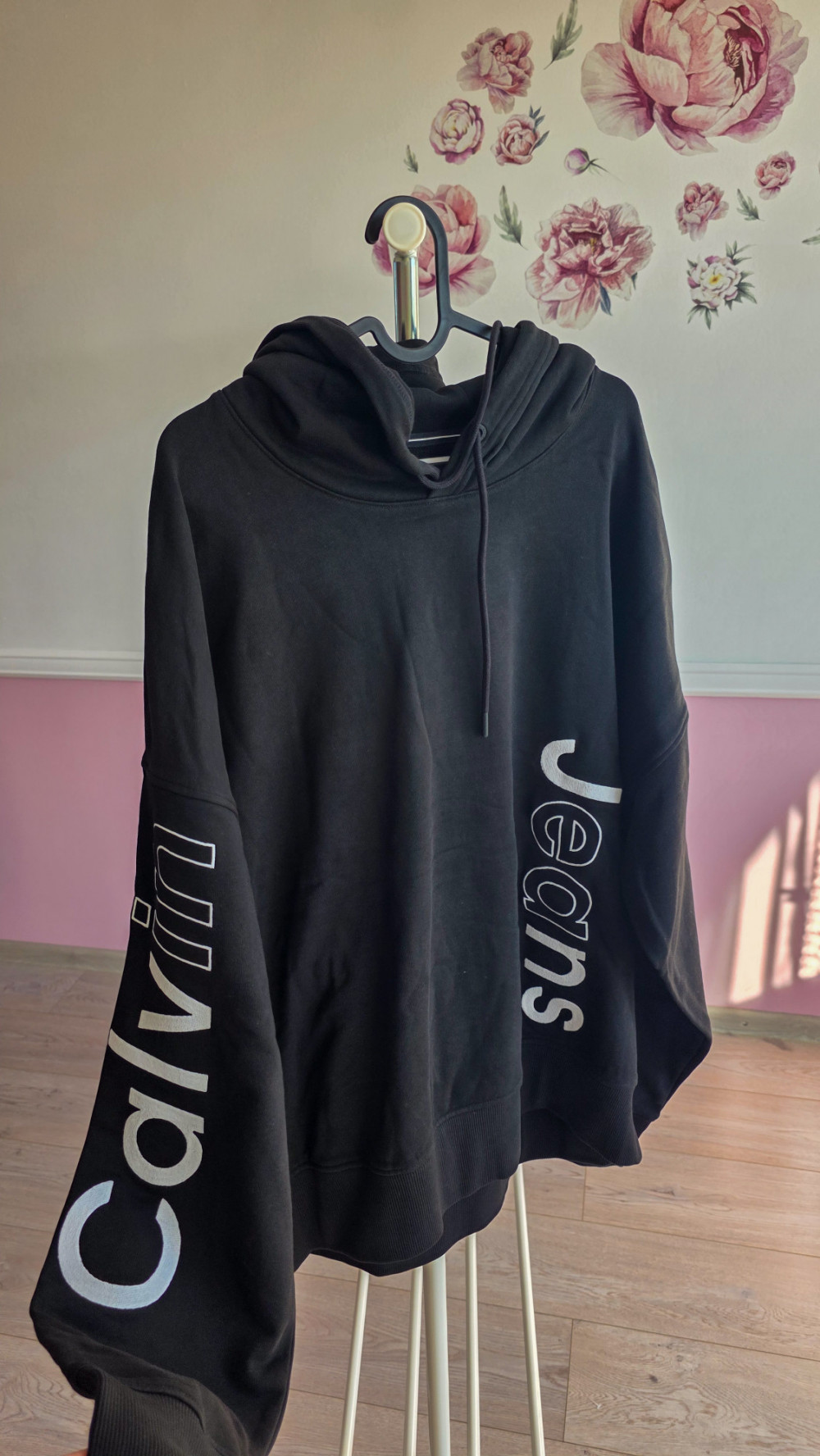 Calvin Klein Jeans – męska czarna bluza z kapturem i nadrukiem po bokach (oryginał, z metkami)