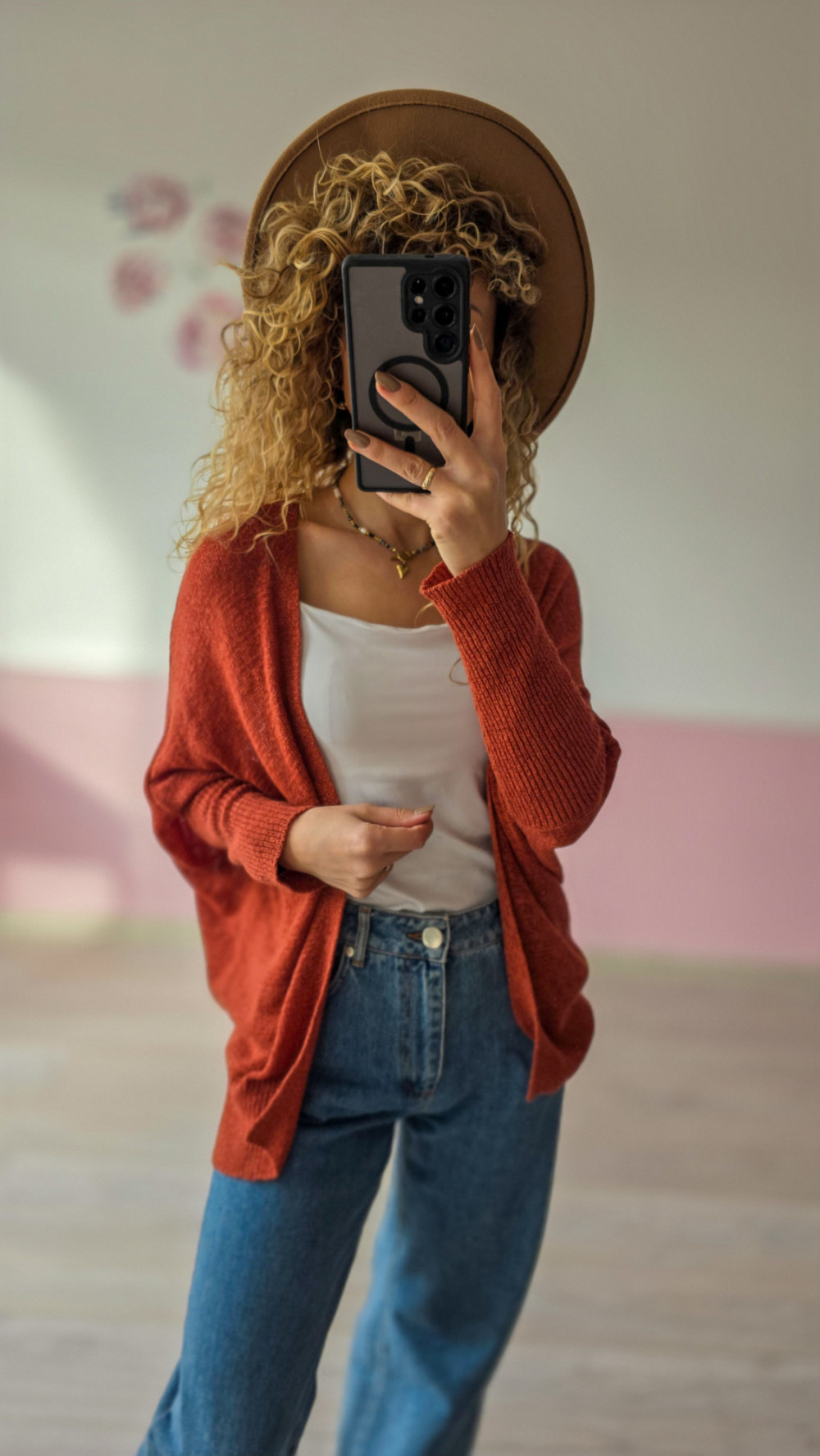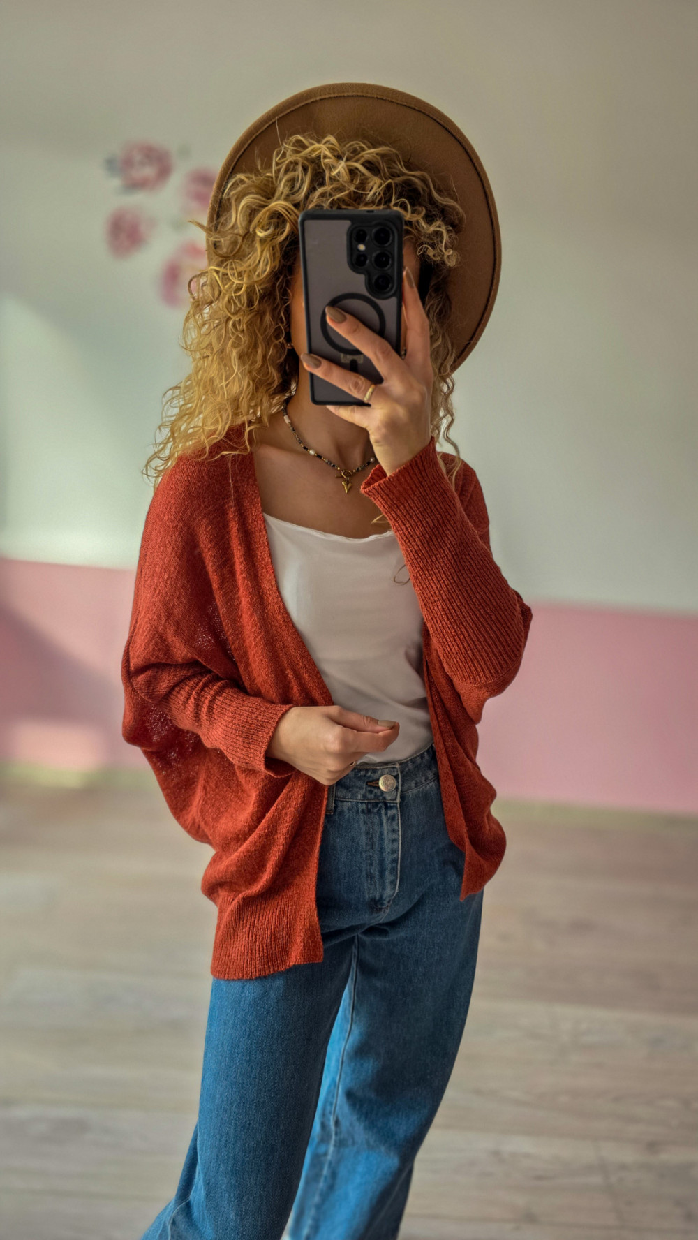 Wygodny i stylowy kardigan damski w kolorze ceglastym to idealny wybór na każdą porę roku. Wykonany z miękkiego, przyjemnego w dotyku materiału, doskonale układa się na sylwetce i dodaje lekkości każdej stylizacji. Swobodny krój gwarantuje pełen komfort noszenia, a ponadczasowy odcień sprawia, że kardigan świetnie komponuje się zarówno z jeansami, jak i sukienkami. To idealne okrycie dla kobiet, które szukają połączenia wygody, stylu i uniwersalności w codziennych stylizacjach.
