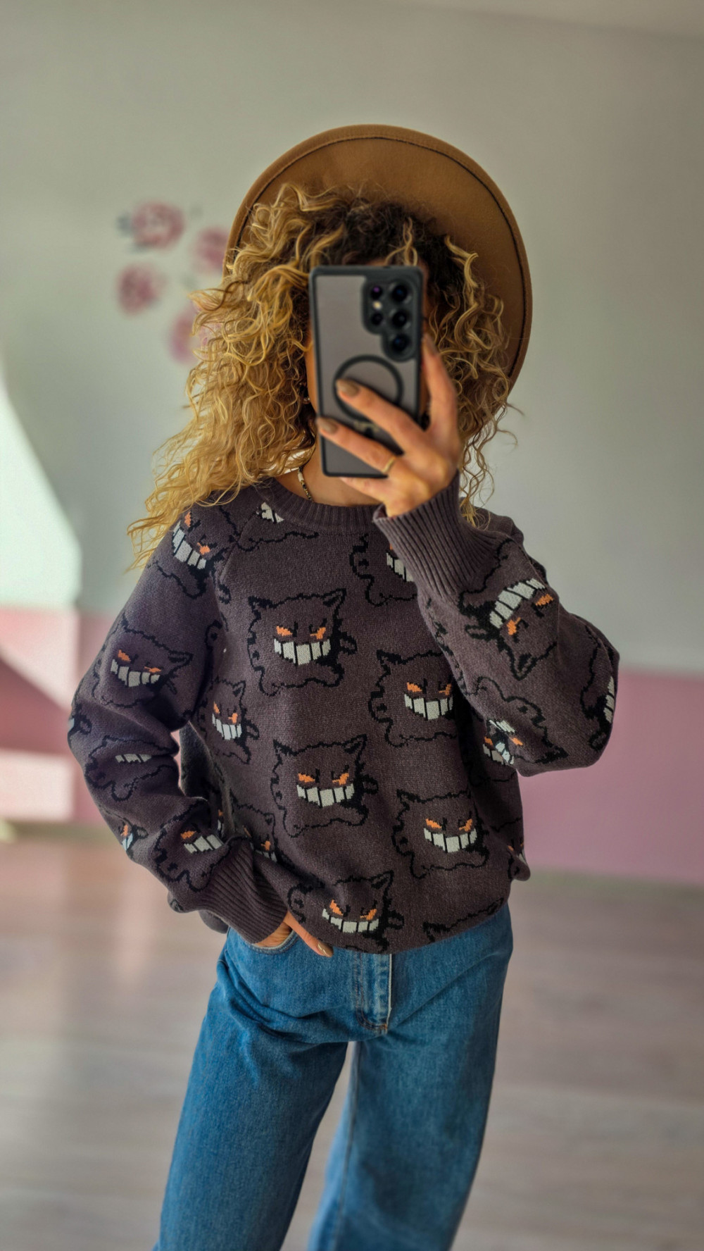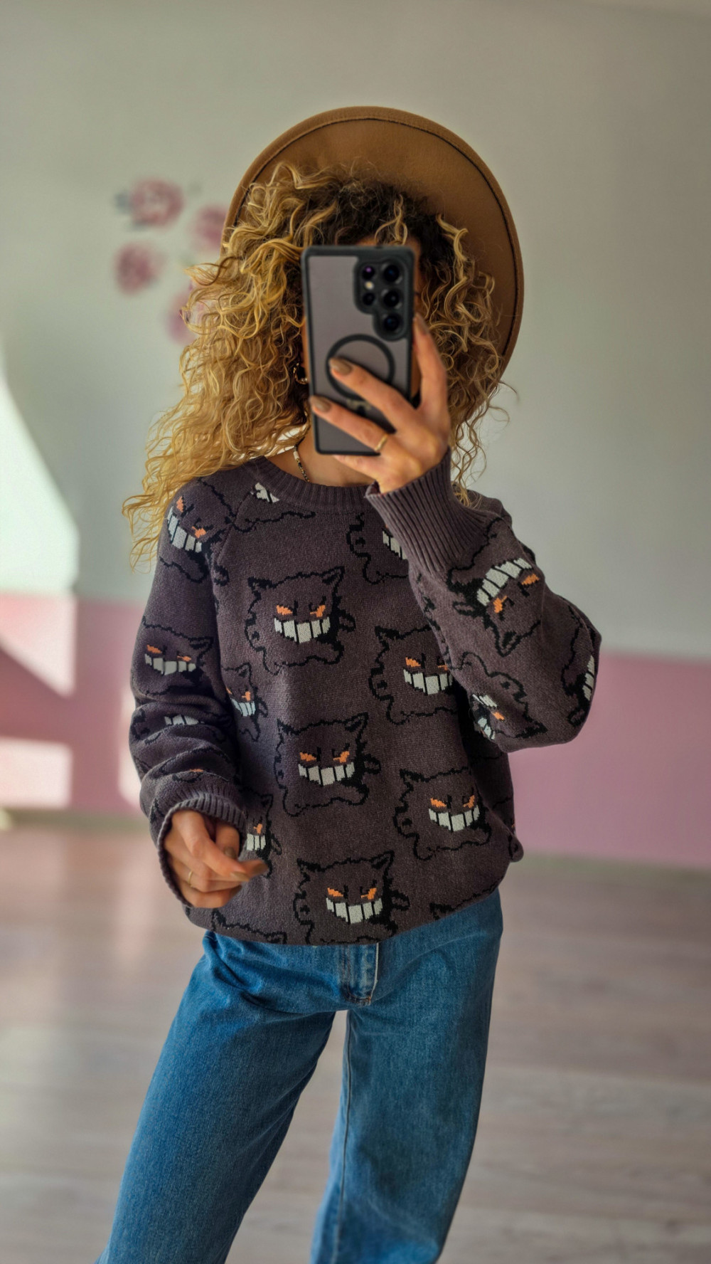 Wyjątkowy sweter damski z zabawnym nadrukiem kota to propozycja dla kobiet, które kochają modę z charakterem. Miękka dzianina sprawia, że sweter jest wygodny, ciepły i przyjemny w noszeniu. Oryginalny wzór przyciąga wzrok i dodaje stylizacji wyjątkowego, lekko humorystycznego akcentu. Idealny na co dzień, do szkoły, pracy czy spotkań ze znajomymi — ten sweter sprawi, że każda stylizacja stanie się niepowtarzalna.