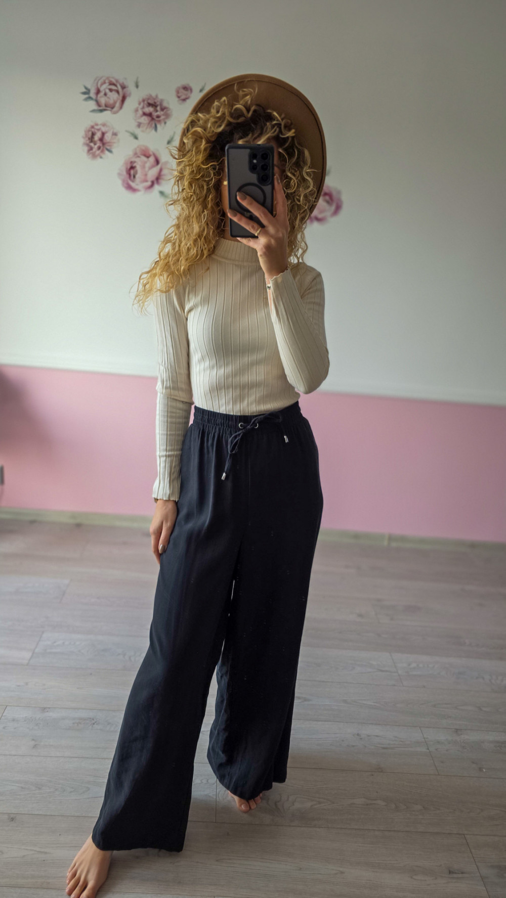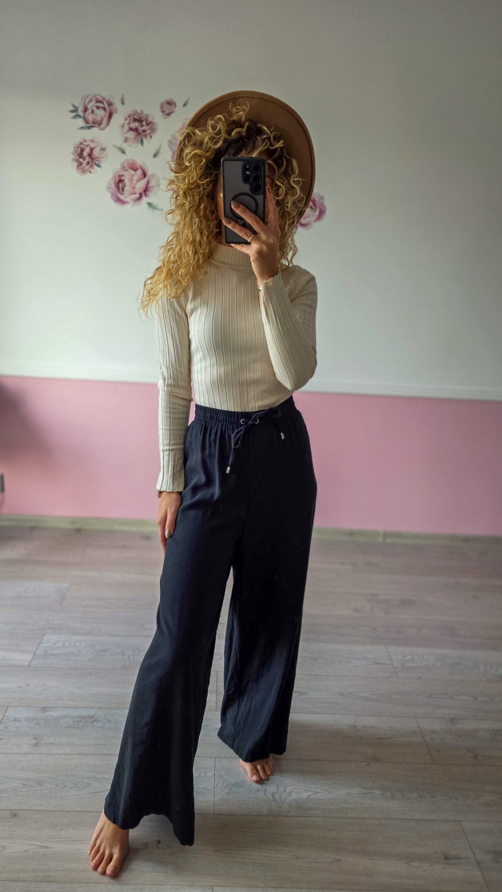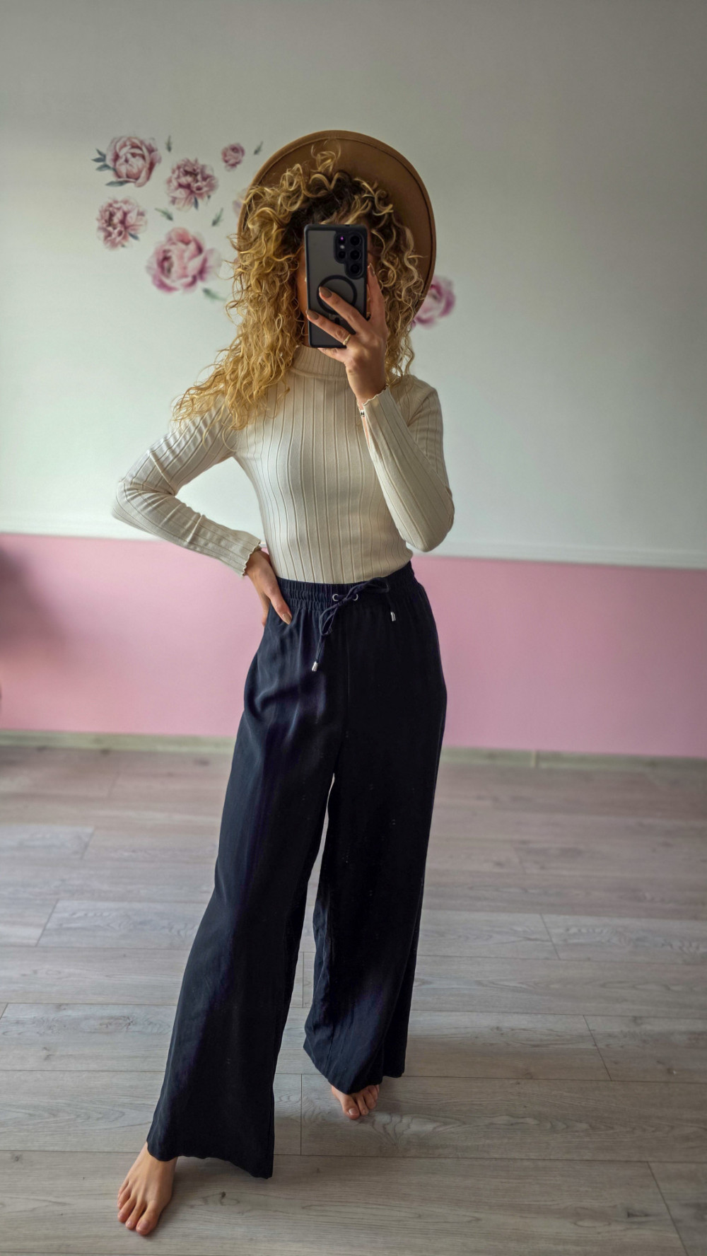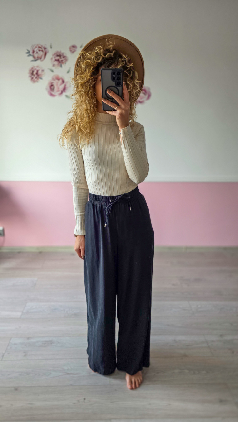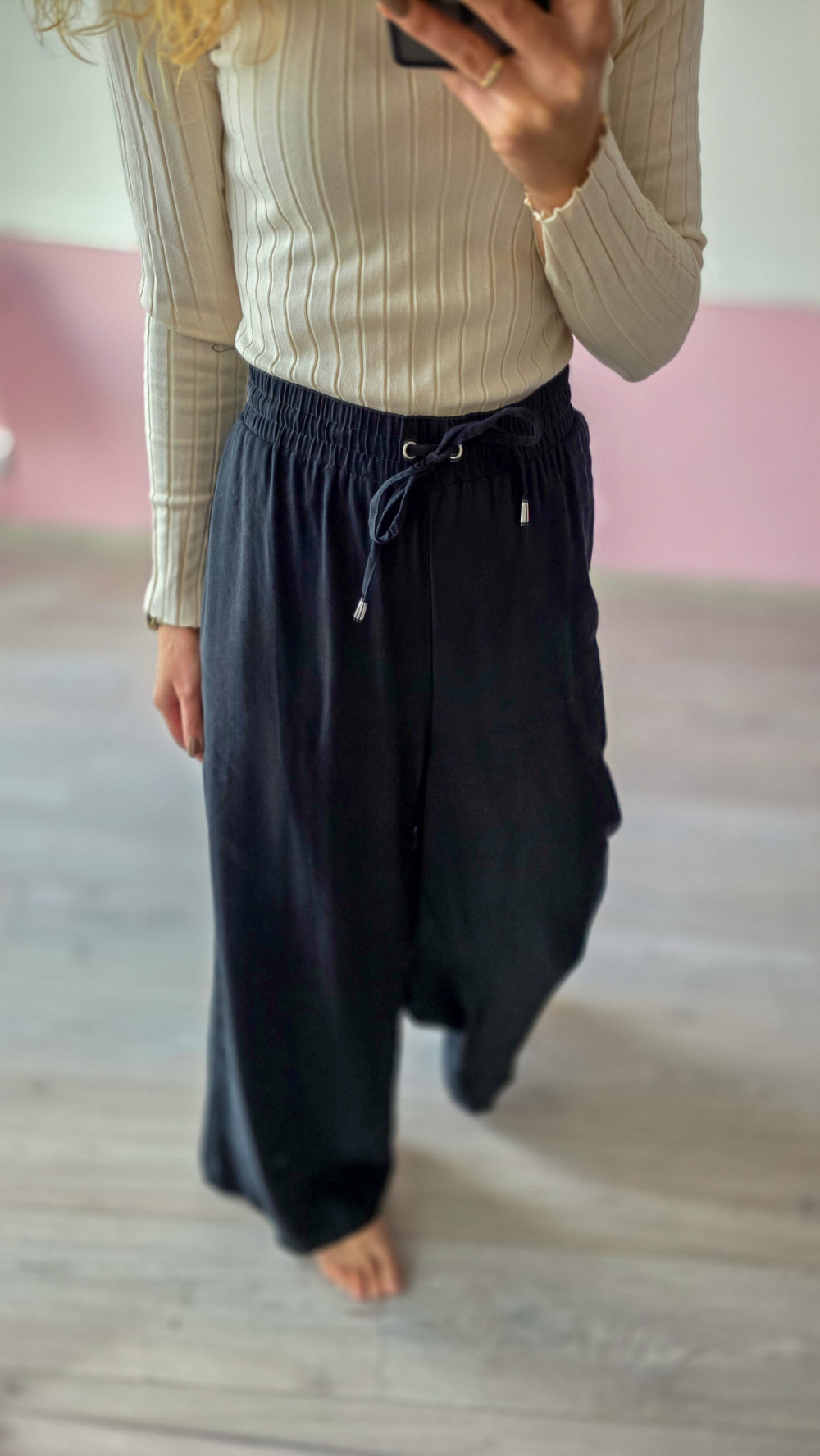Odkryj maksymalny komfort dzięki czarnym szerokim spodniom damskim wykonanym z lekkiego, przewiewnego materiału. Elastyczny pas z regulacją idealnie dopasowuje się do talii, zapewniając wygodę przez cały dzień. Szeroka nogawka dodaje stylizacji luzu i elegancji, sprawiając, że spodnie sprawdzą się zarówno na co dzień, jak i do pracy czy na spotkania. To model, który pięknie prezentuje się z dopasowanym golfem, topem lub oversize’ową koszulą. Idealne na sezon wiosna–jesień oraz letnie, chłodniejsze wieczory.