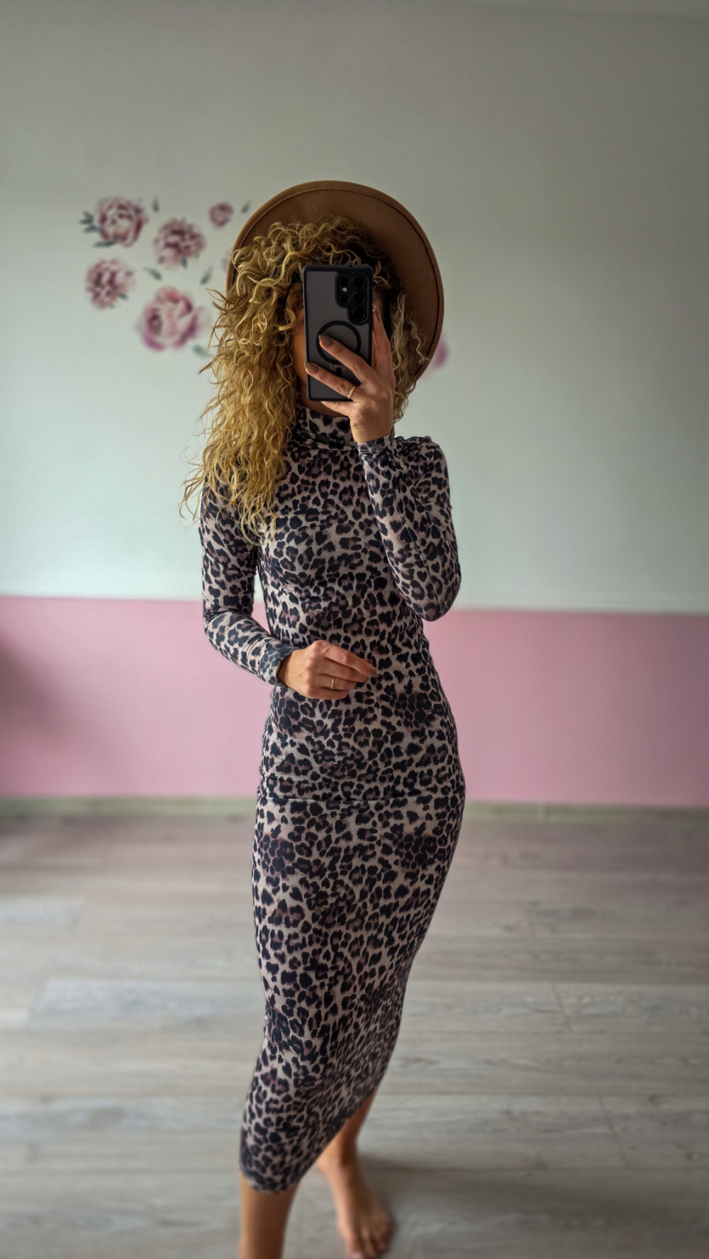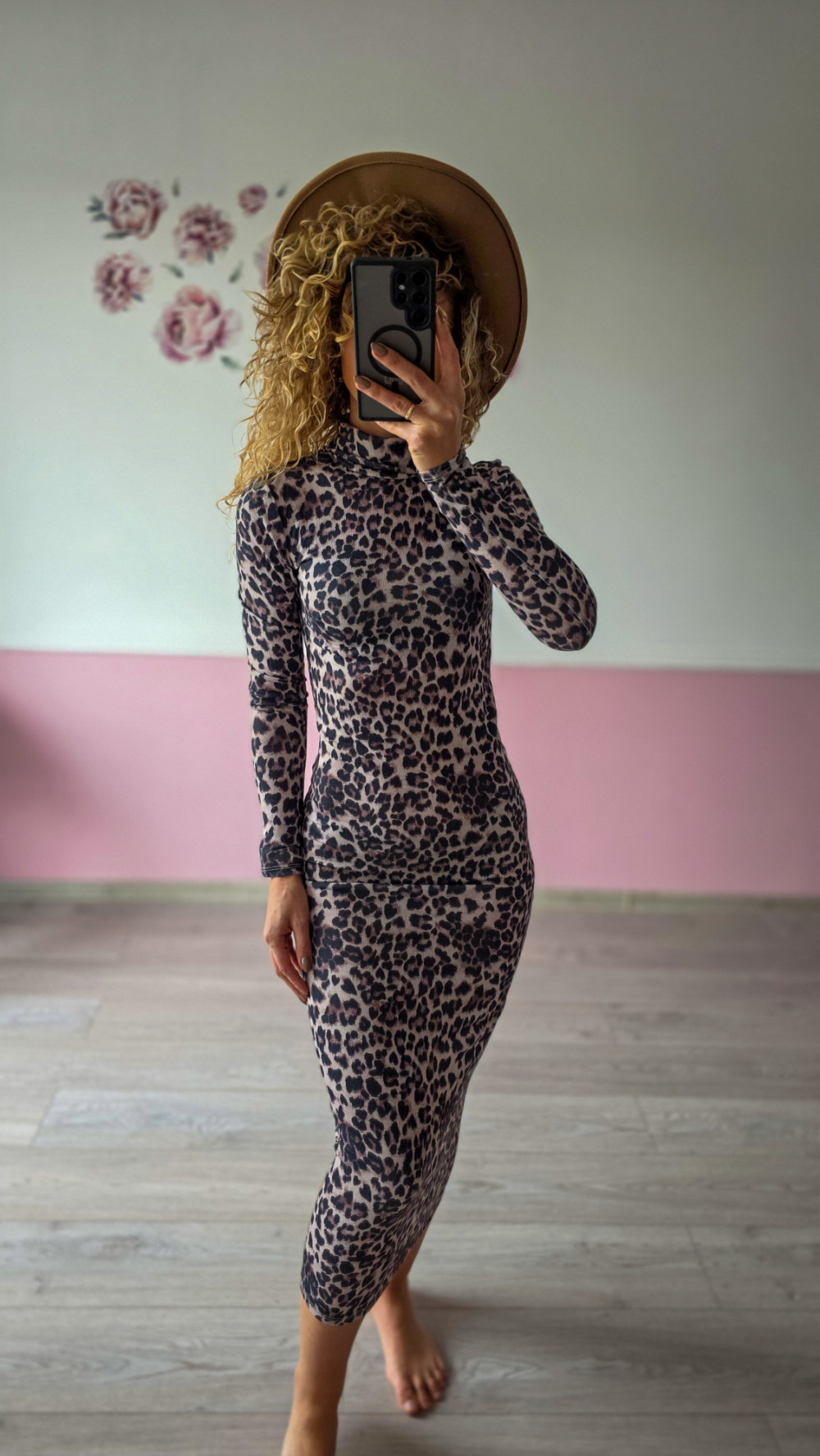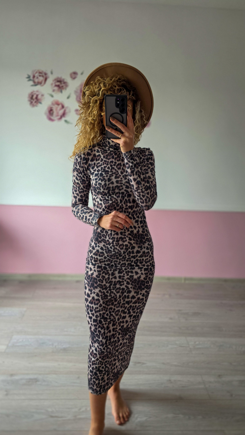 Dopasowana sukienka midi w panterkę to propozycja dla kobiet, które kochają pewny siebie, wyrazisty styl. Miękki, elastyczny materiał podkreśla kobiecą figurę, a długi rękaw i zabudowany fason dodają elegancji, równoważąc drapieżny wzór. To model idealny na wieczorne wyjścia, imprezy, randki czy każdą okazję, kiedy chcesz poczuć się wyjątkowo. W połączeniu ze szpilkami tworzy look pełen charakteru i zmysłowości.