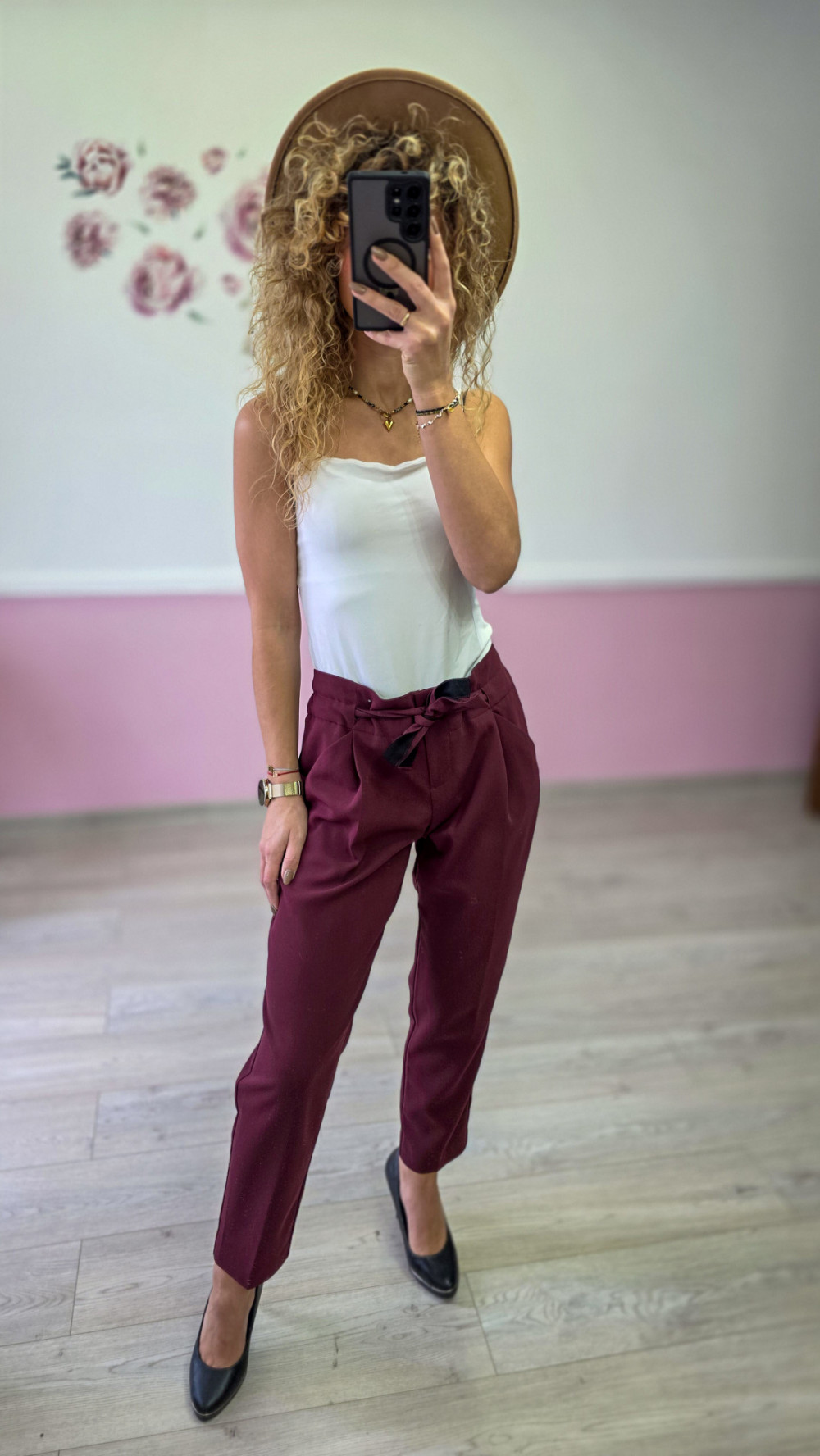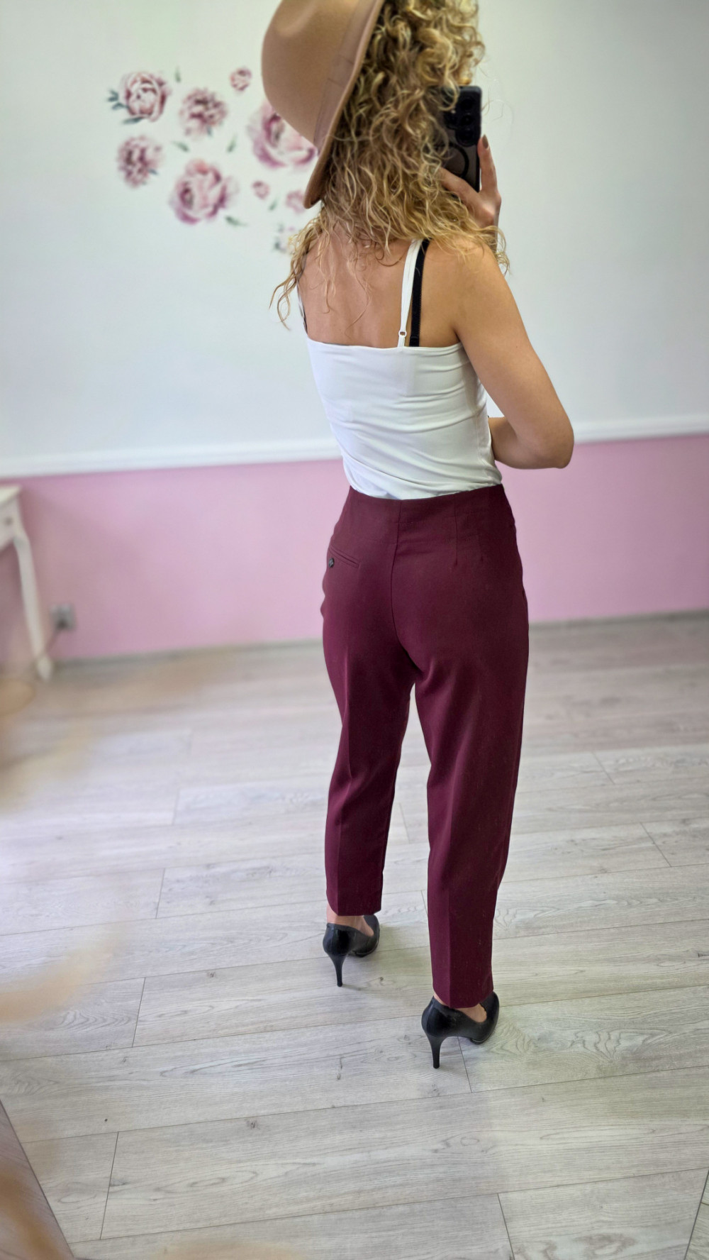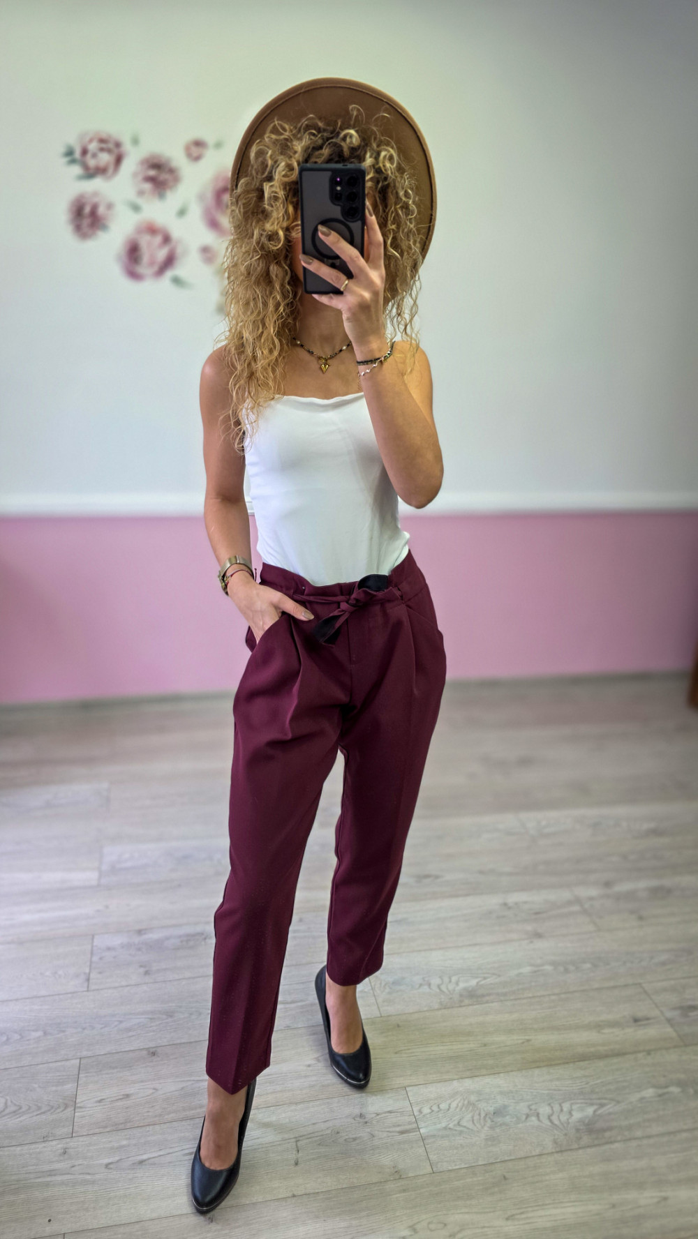 Stylowe spodnie damskie w kolorze głębokiego wina to propozycja dla kobiet, które cenią klasykę w nowoczesnym wydaniu. Wysoki stan pięknie podkreśla talię, a dołączony materiałowy pasek dodaje elegancji i podkreśla kobiecą sylwetkę. Wykonane z przyjemnego w dotyku, lekko elastycznego materiału, gwarantują komfort przez cały dzień.