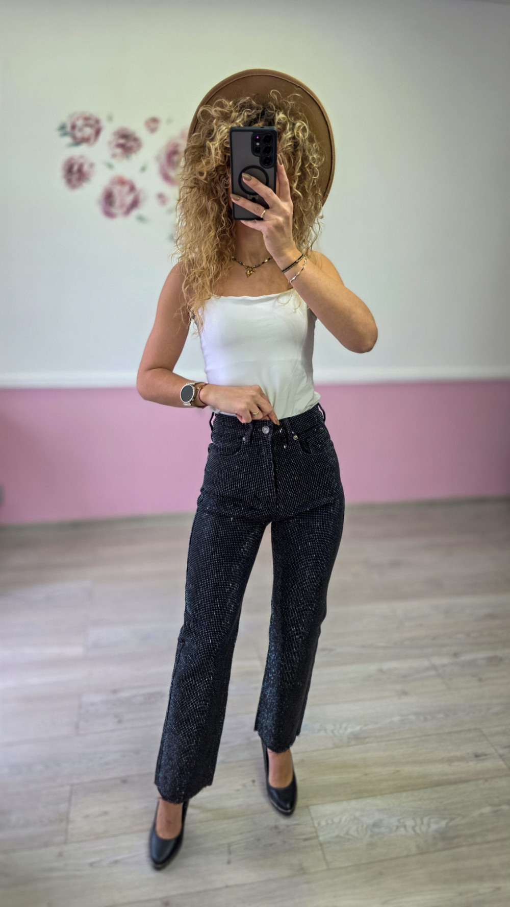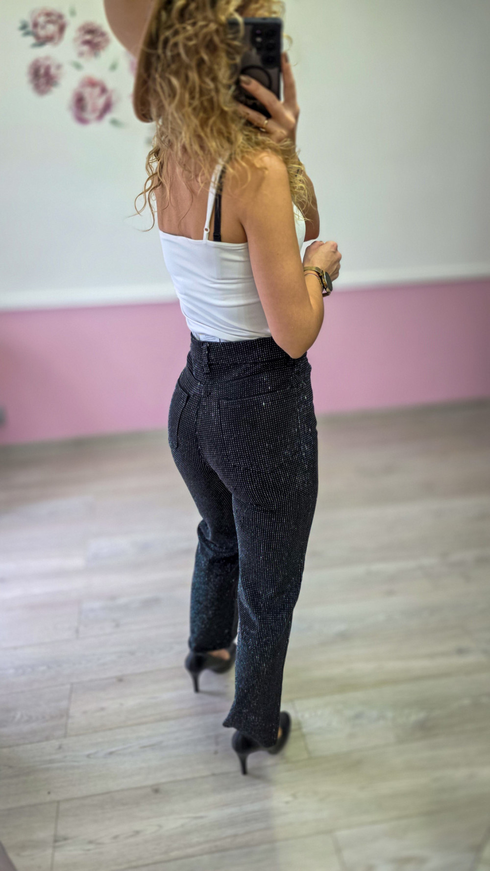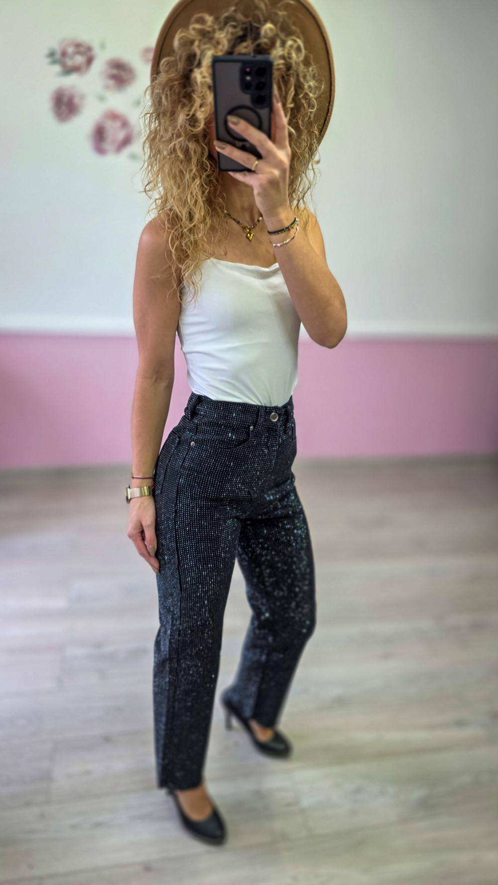Czarne spodnie z połyskiem – elegancja z nutą glamour