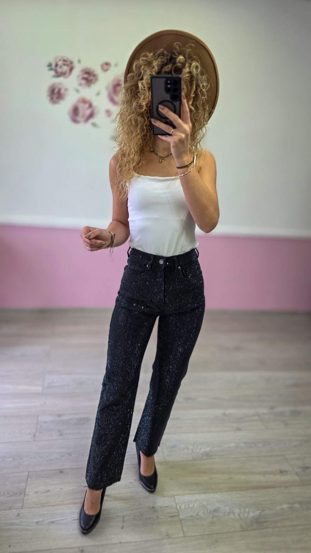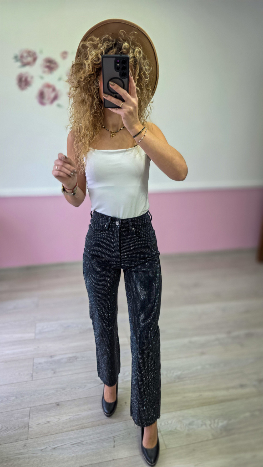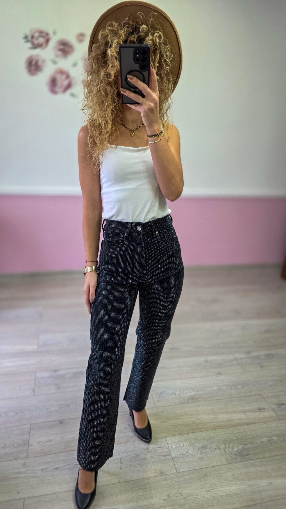 Czarne spodnie z połyskiem – elegancja z nutą glamour
