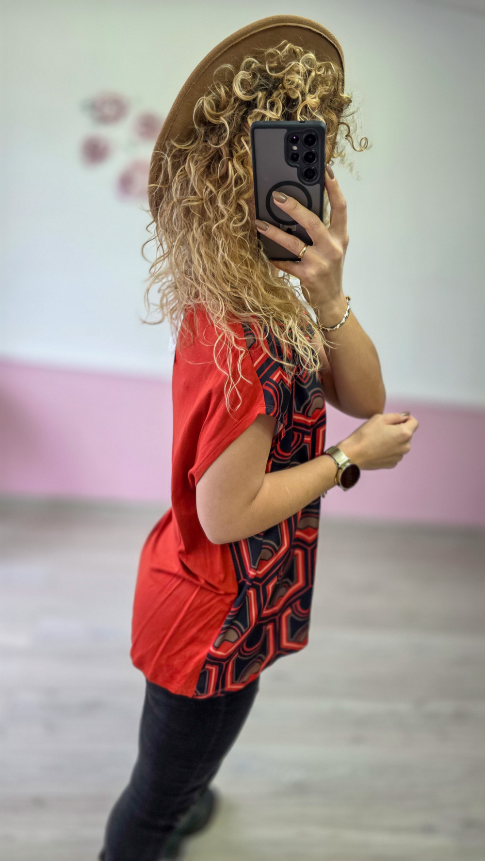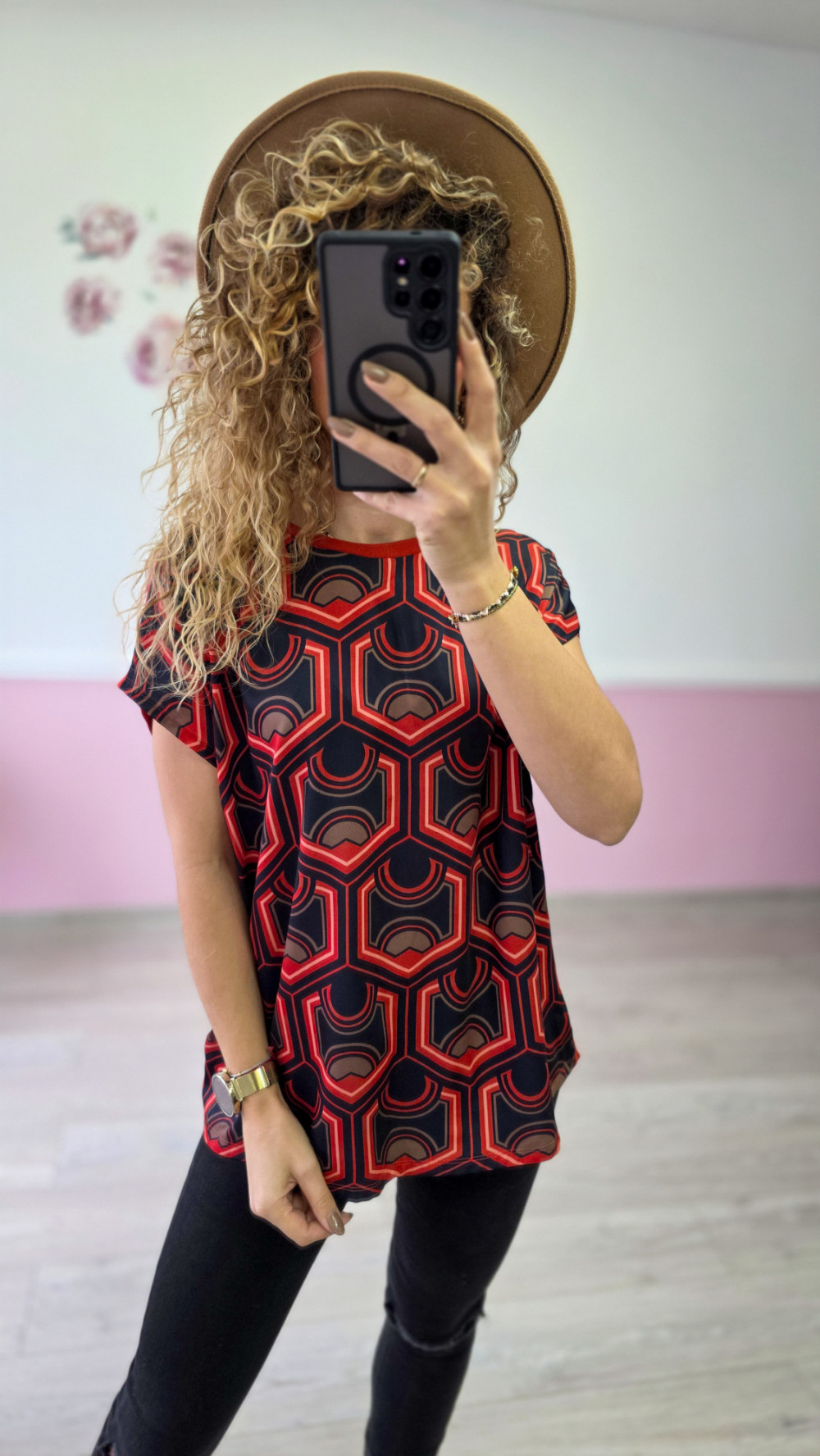 Bluzka z geometrycznym wzorem w czerwono-czarnych odcieniach