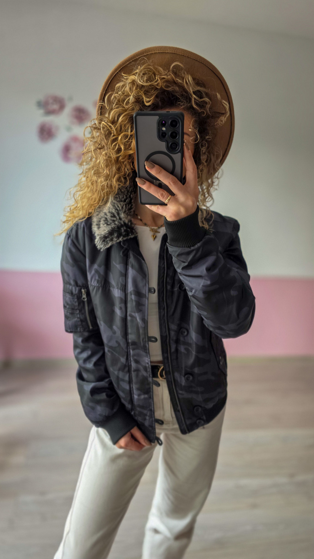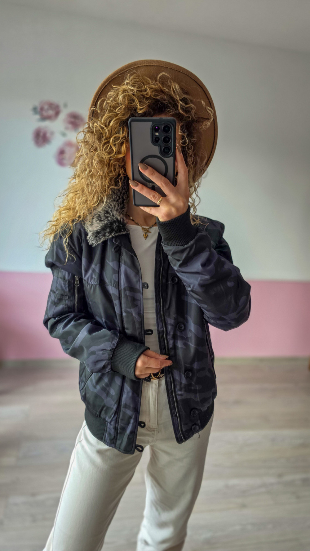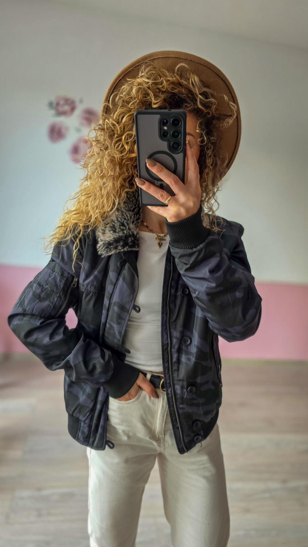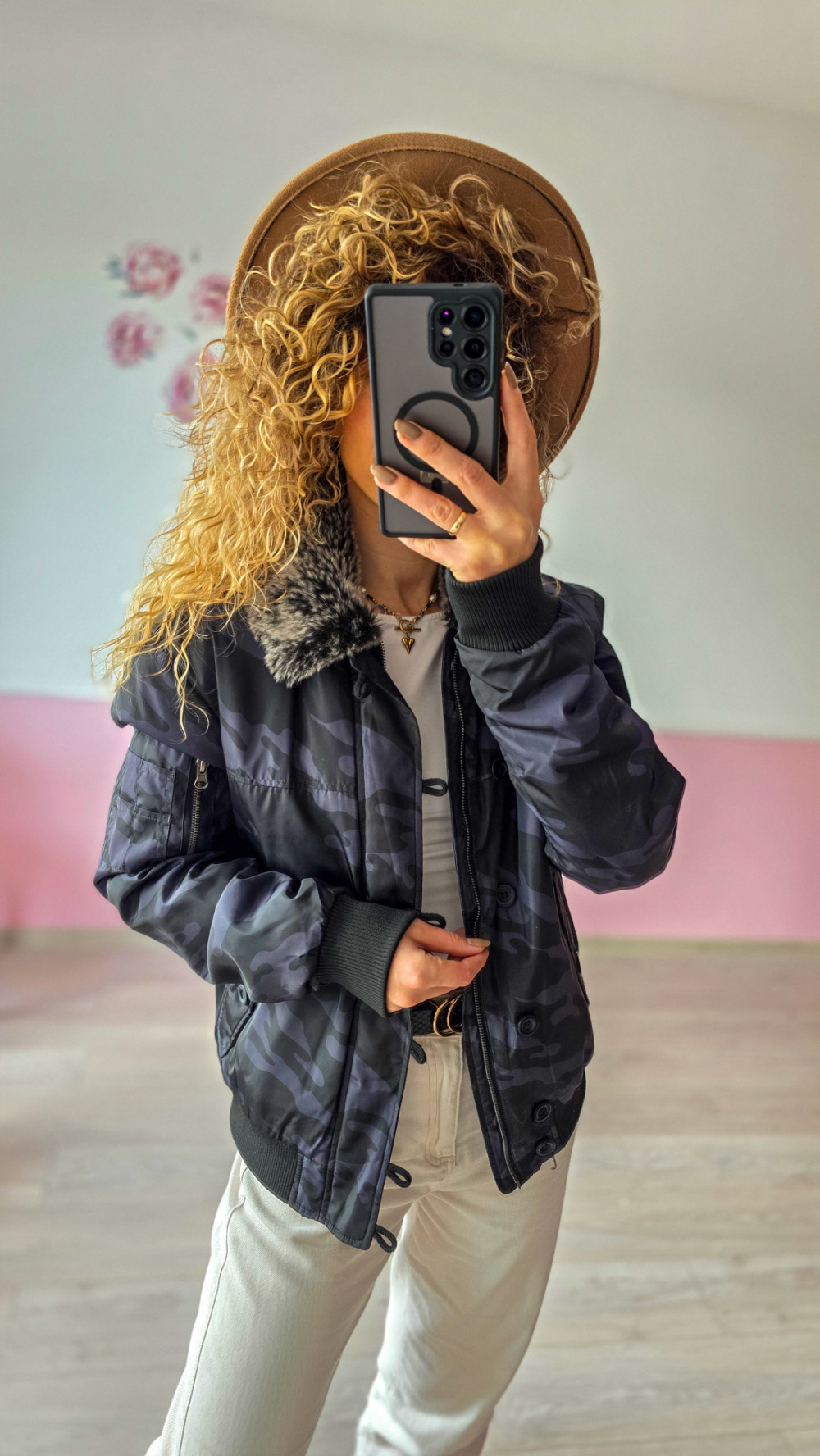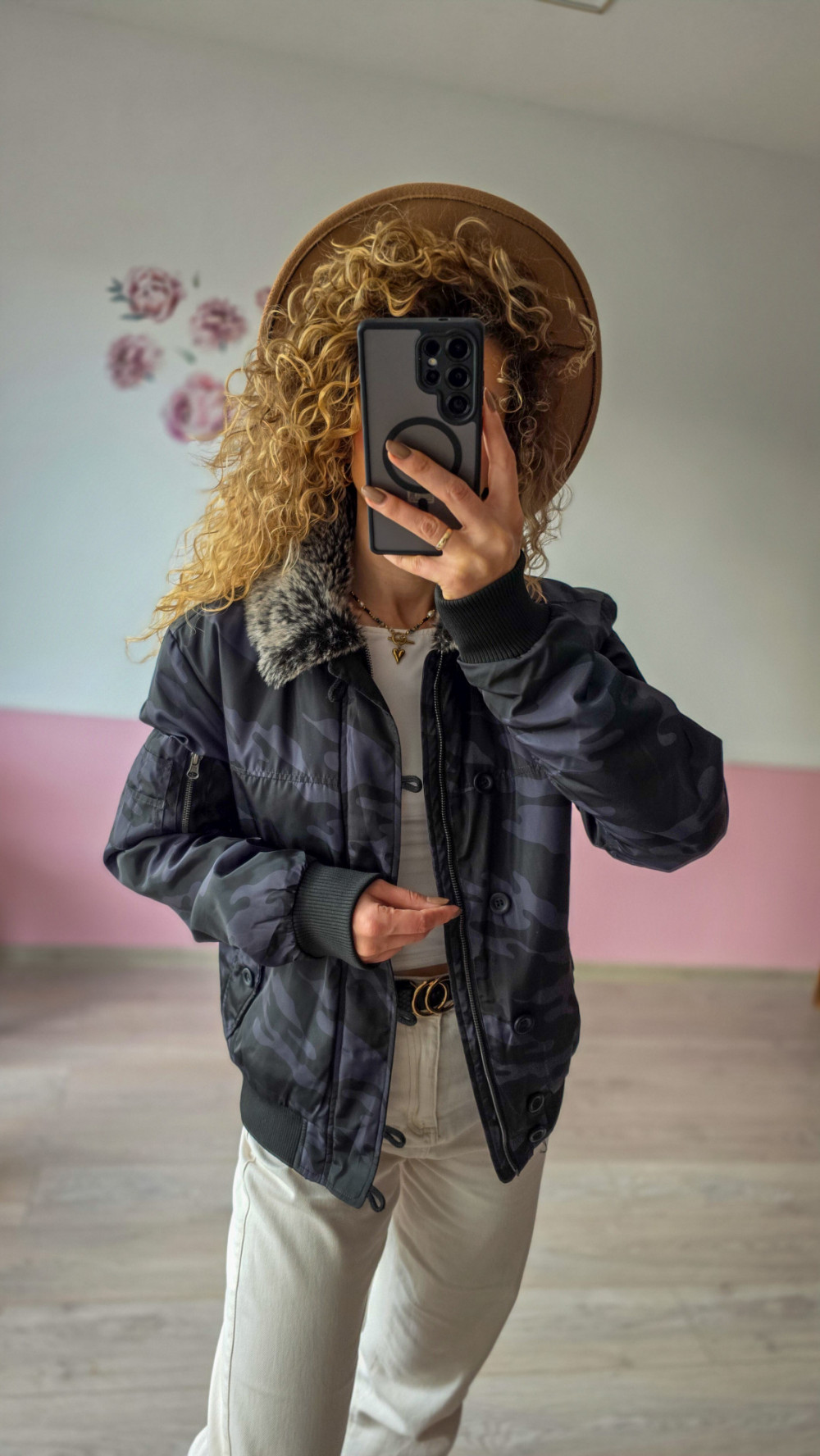 Stylowa kurtka damska moro to idealny wybór dla kobiet, które lubią modne, wyraziste akcenty w codziennych stylizacjach. Model posiada charakterystyczny wzór camouflage, który dodaje energii i miejskiego charakteru. Miękki kołnierz z futerkiem zapewnia komfort cieplny, a elastyczne ściągacze przy rękawach i u dołu poprawiają dopasowanie. Kurtka świetnie sprawdzi się w chłodniejsze dni, jako uzupełnienie stylu casual, streetwear lub sportowego.