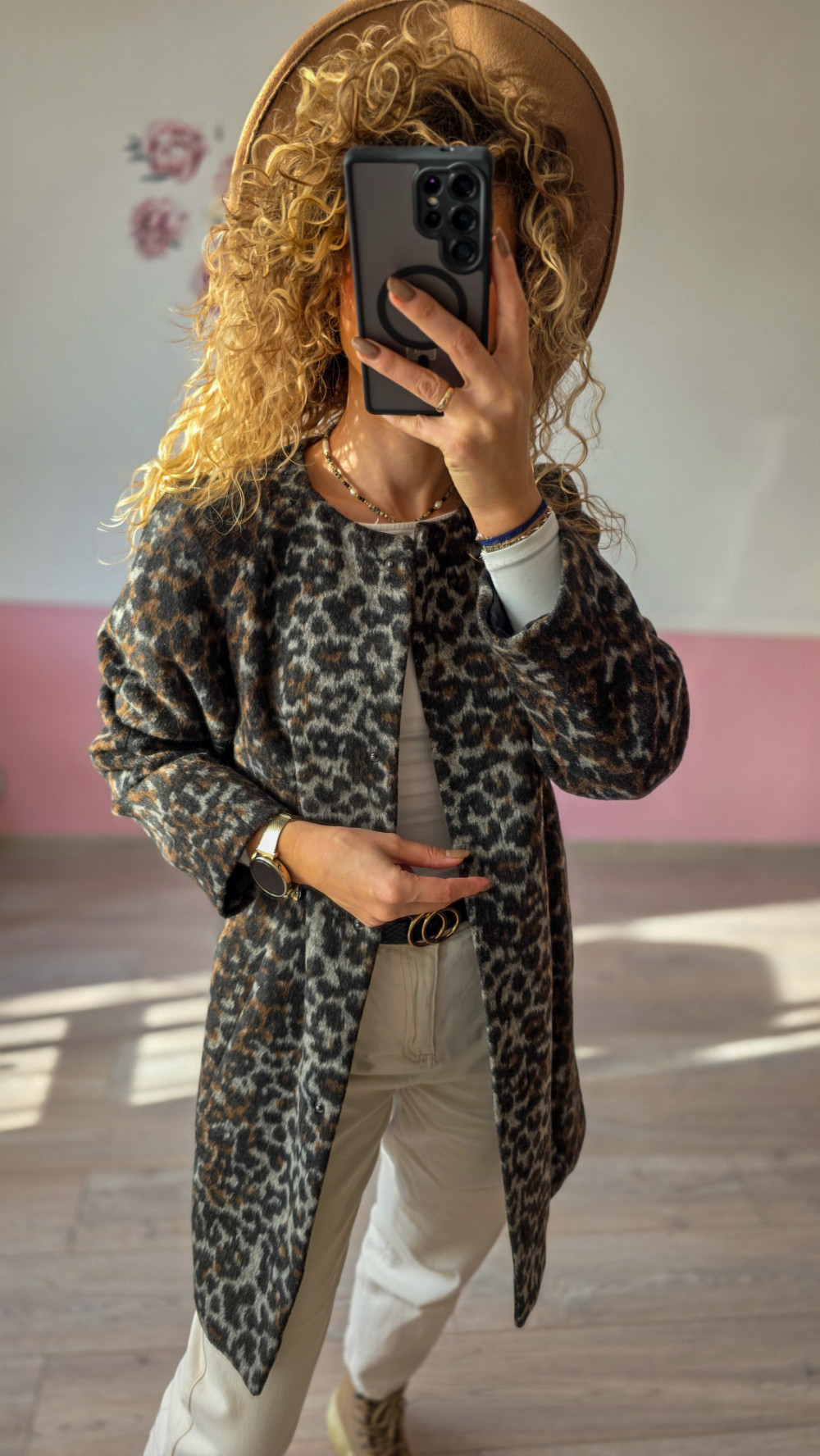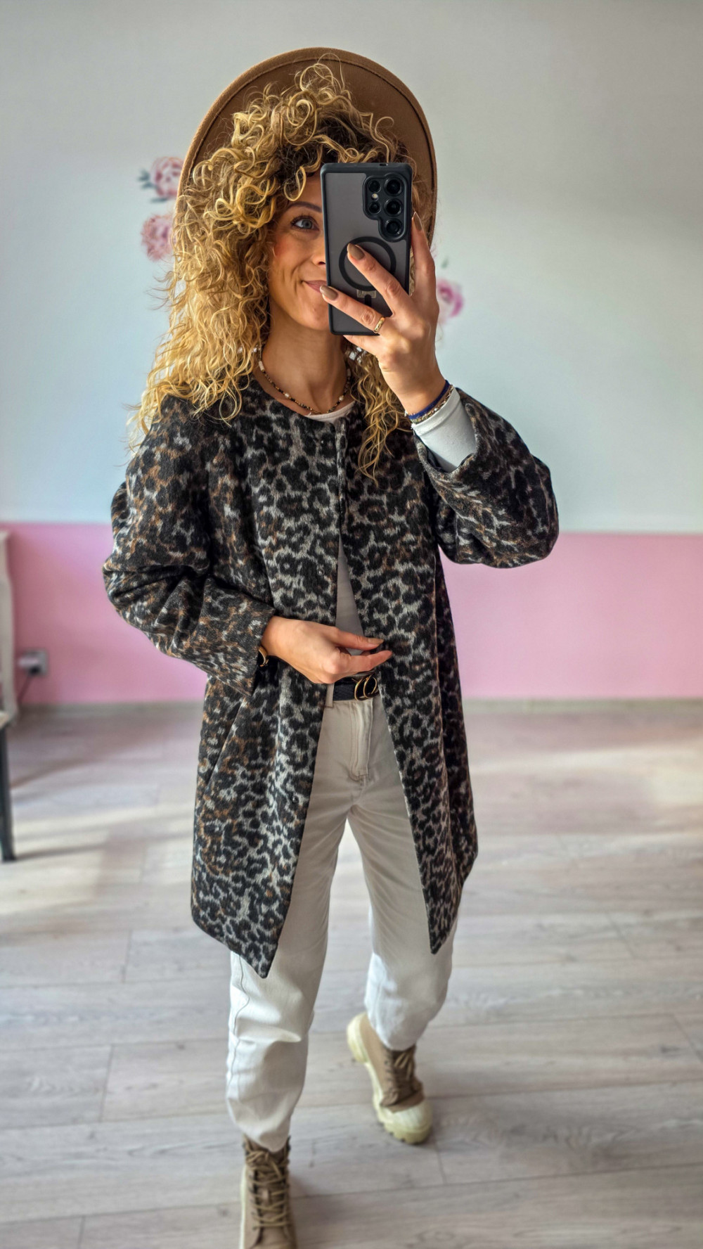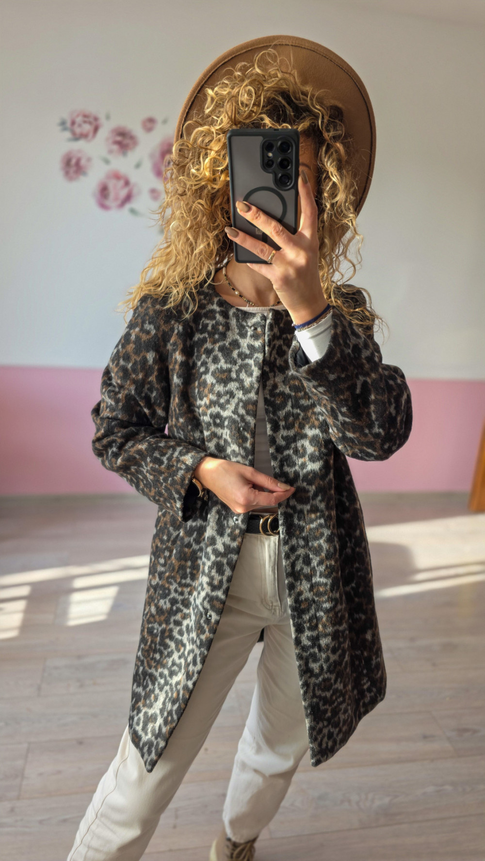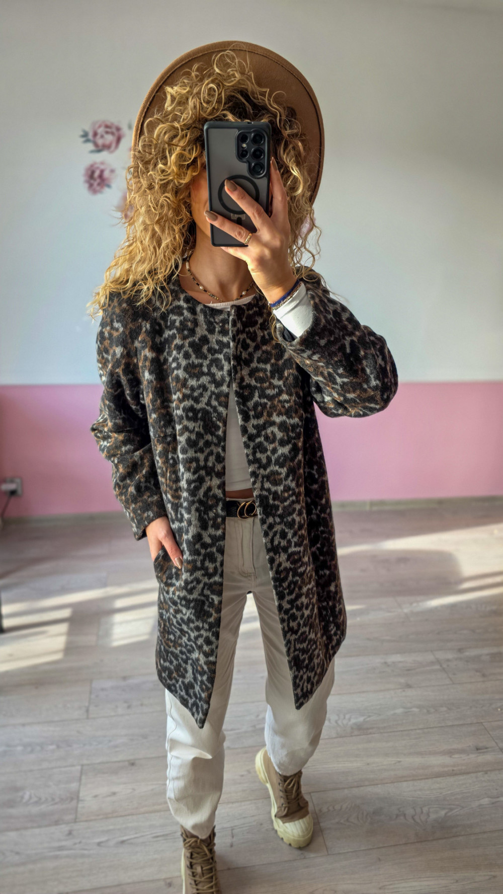 Wyjątkowy płaszcz damski w panterkę to propozycja dla kobiet, które lubią wyraziste wzory i modny, odważny styl. Miękka, lekko otulająca tkanina oraz prosty, długi krój sprawiają, że płaszcz świetnie układa się na sylwetce. Zapinany na napy, dzięki czemu pozostaje minimalistyczny, ale bardzo efektowny.