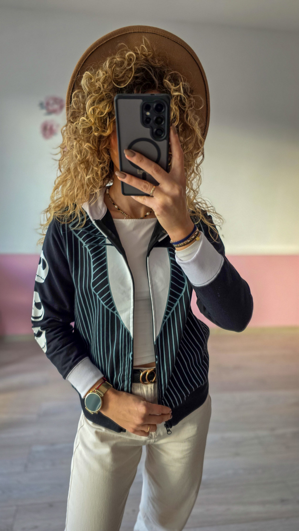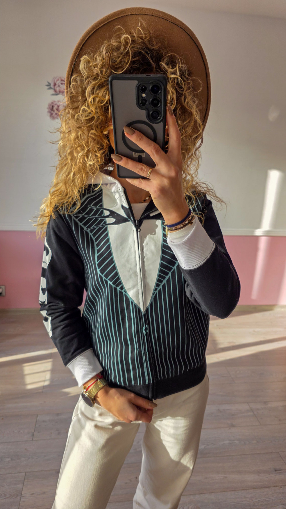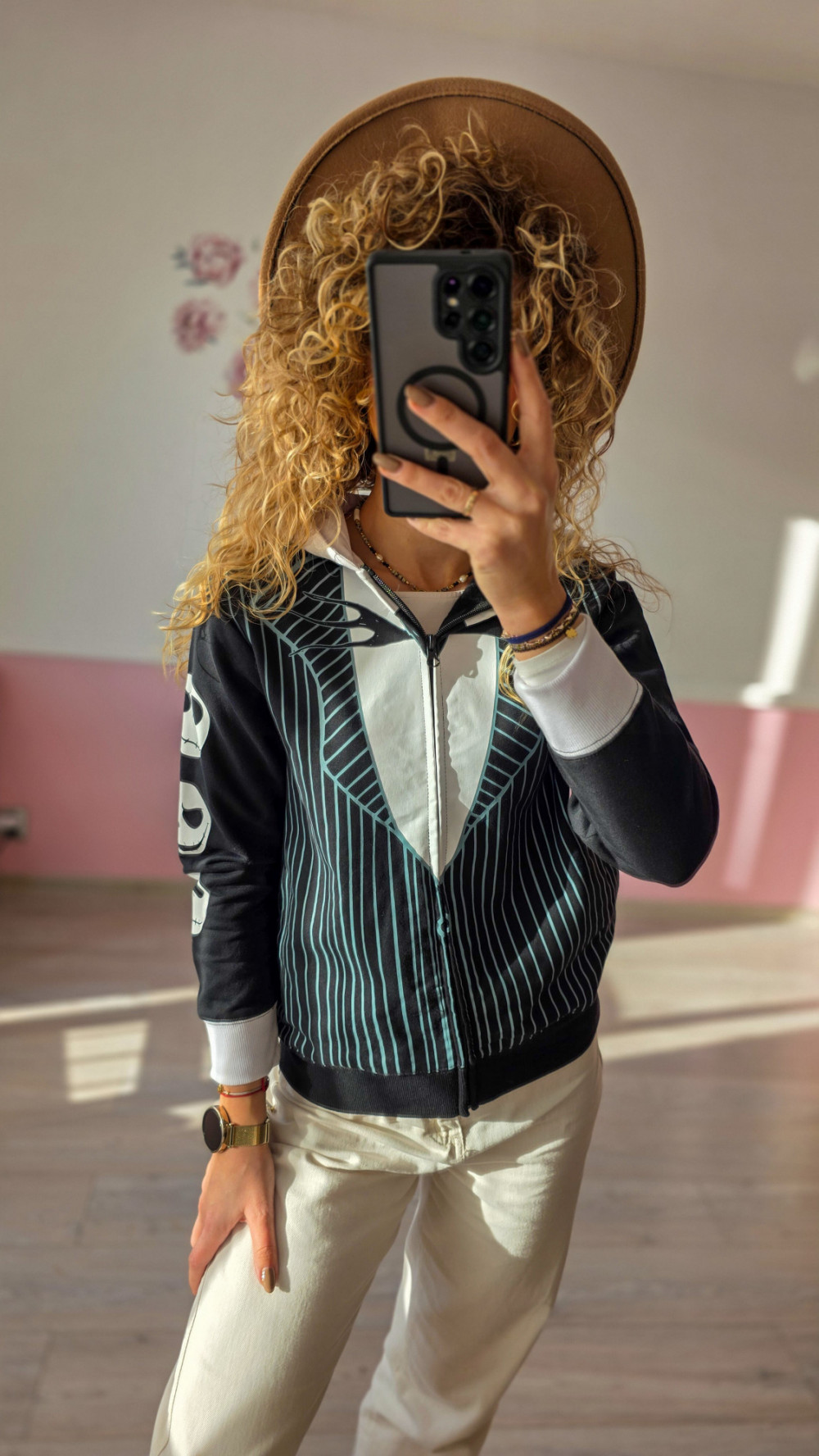 Bluza damska z motywem szkieletowych buziek – czarna, zapinana na zamek
