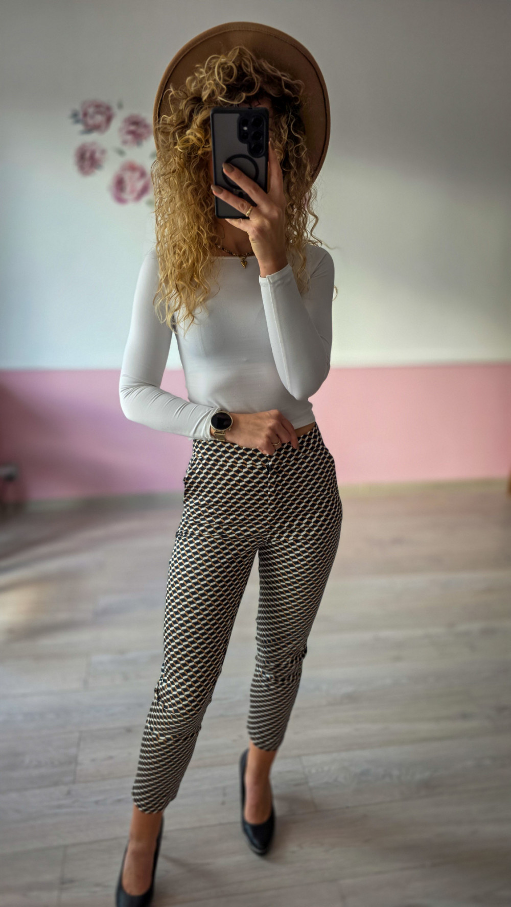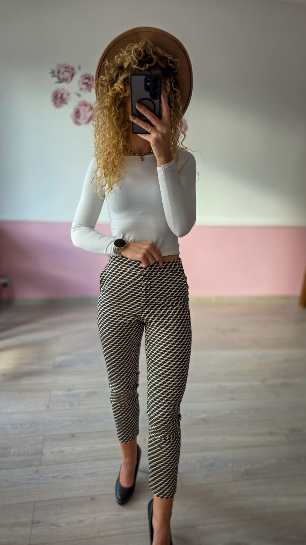 Spodnie w geometryczny wzór – czarno-beżowe cygaretki