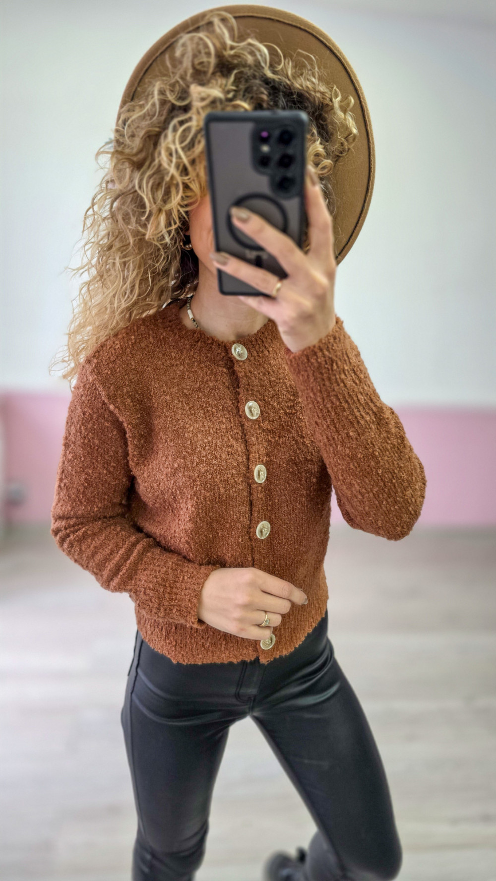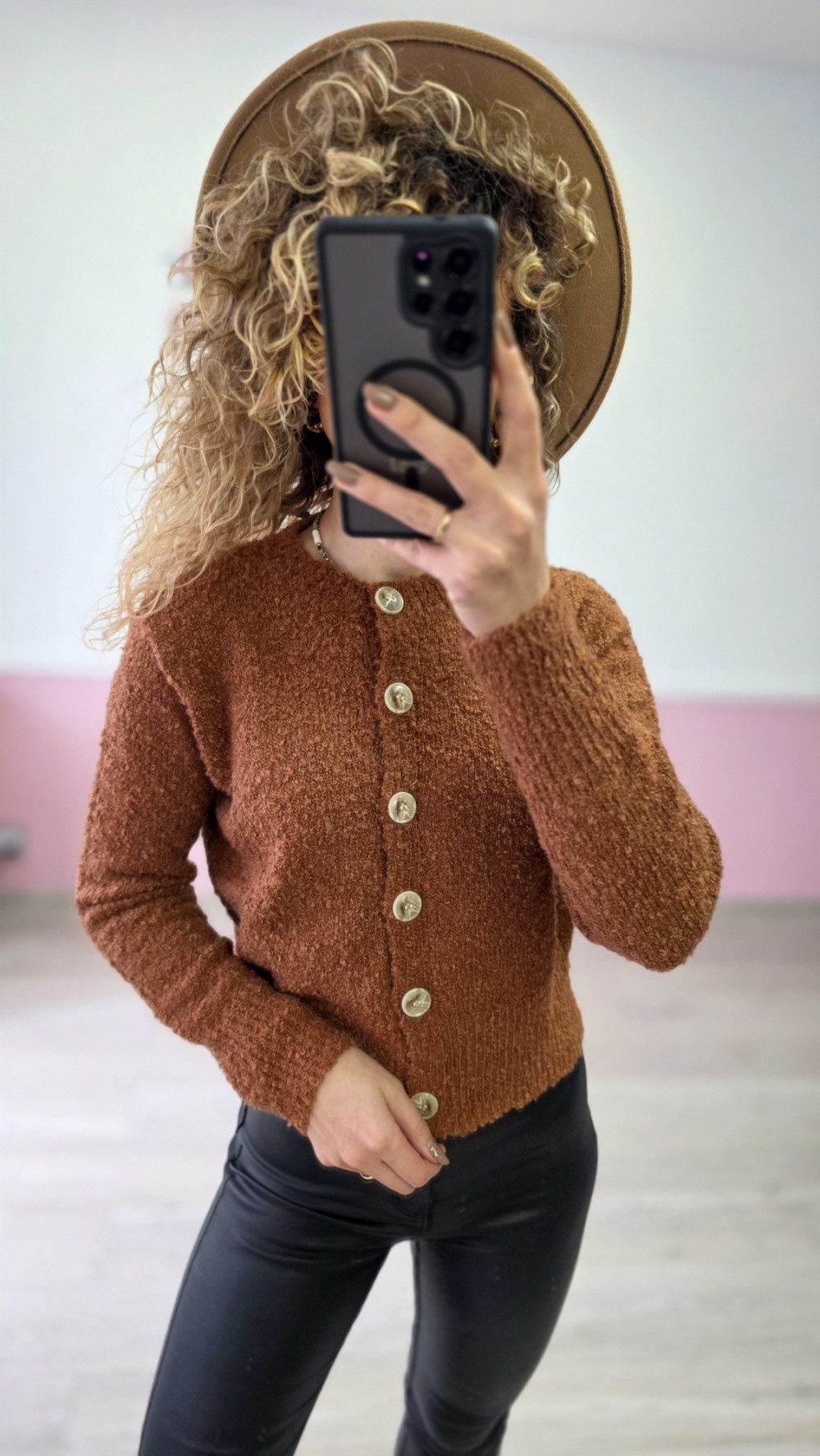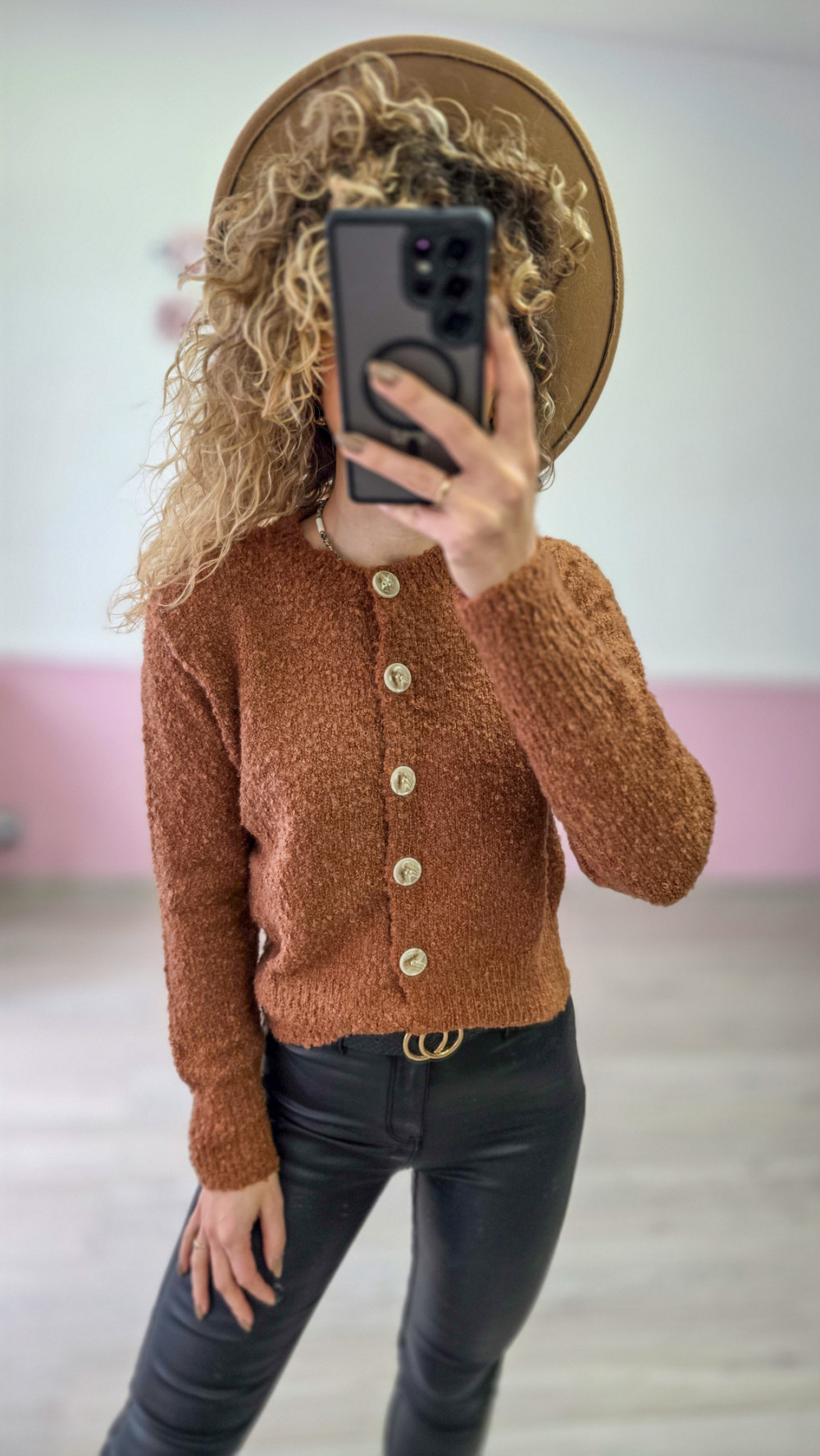 Kardigan z ozdobnymi guzikami – karmelowy
