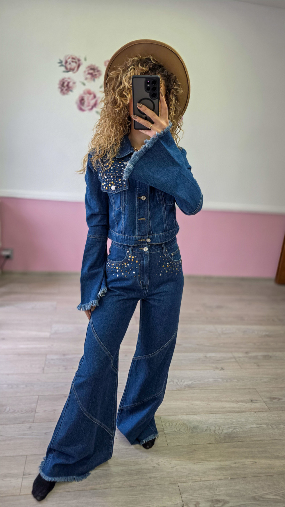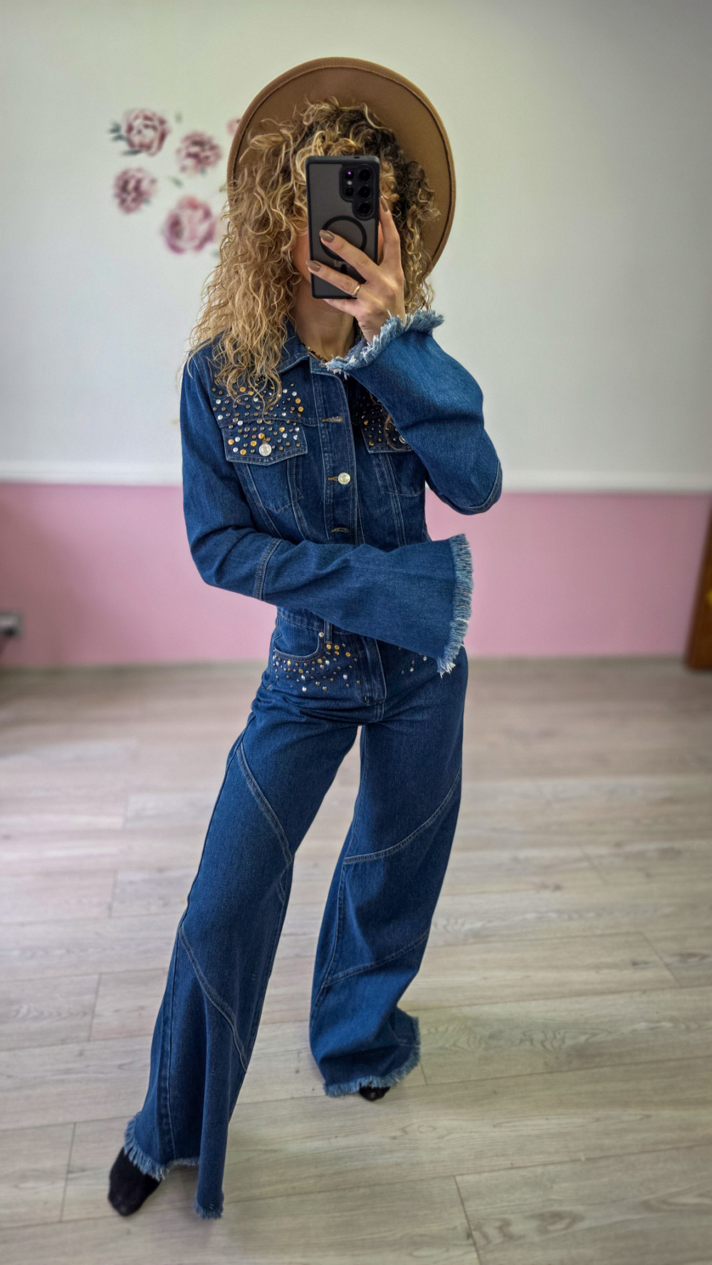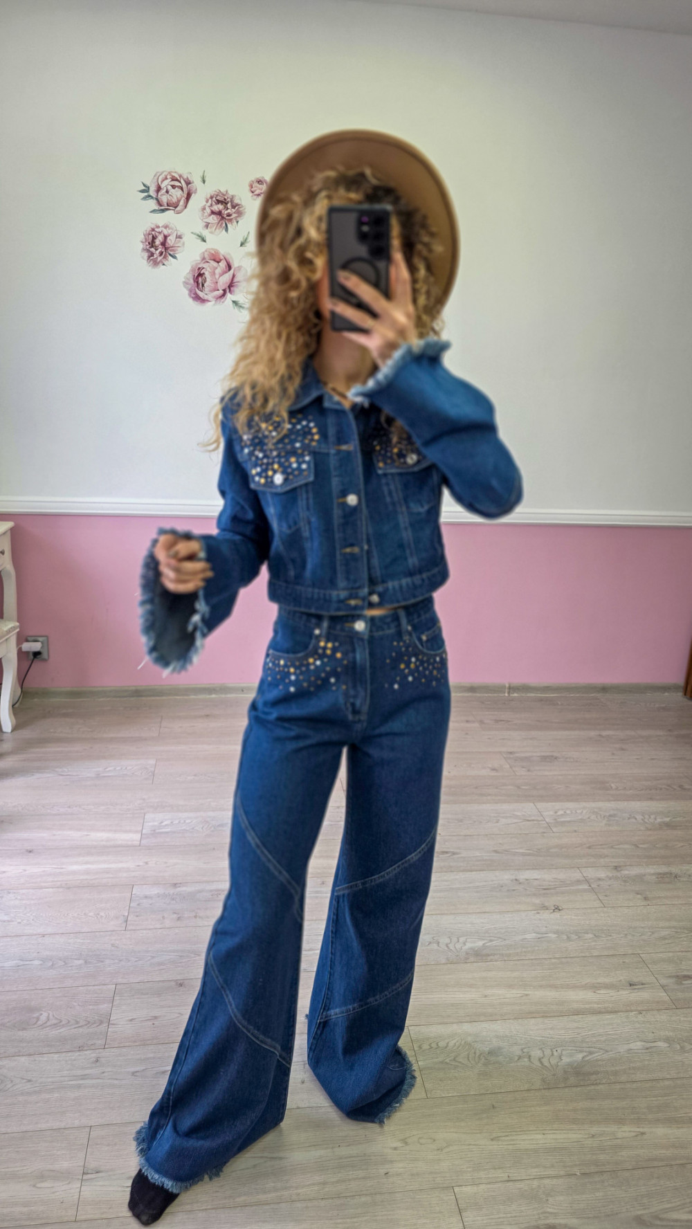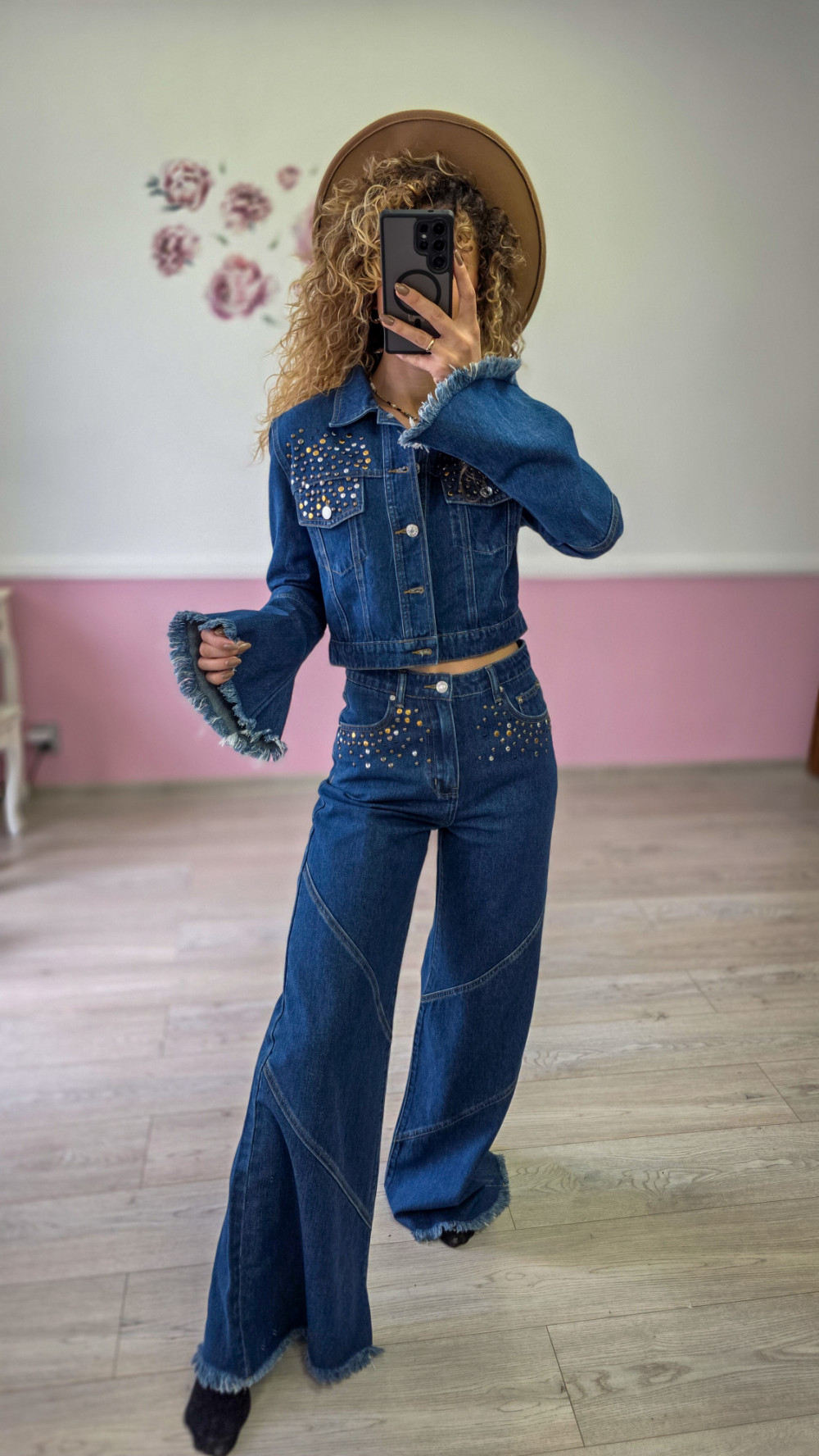 Komplet jeansowy – katana + spodnie z szeroką nogawką