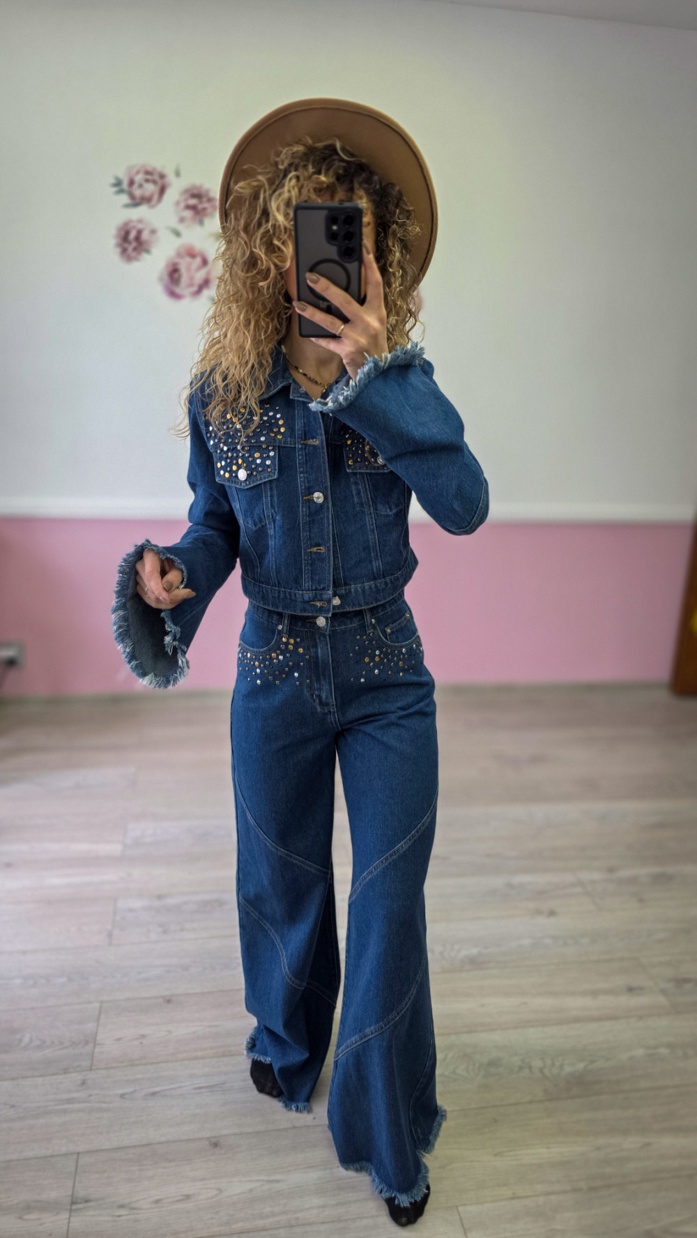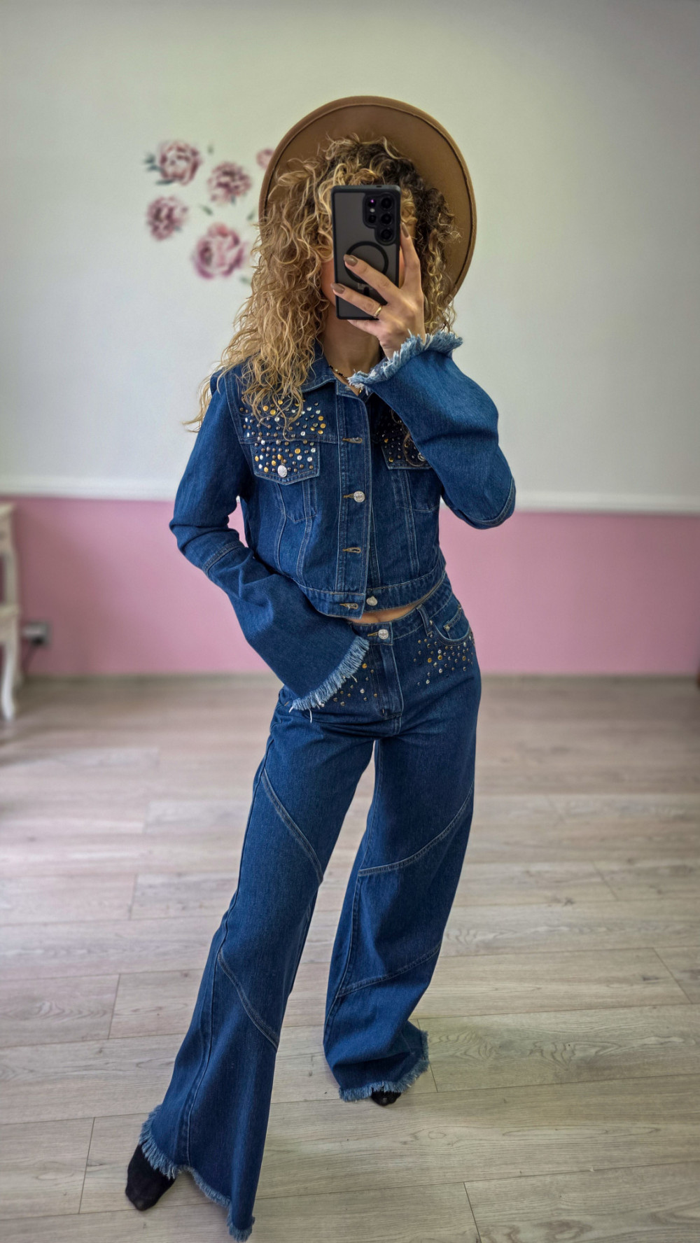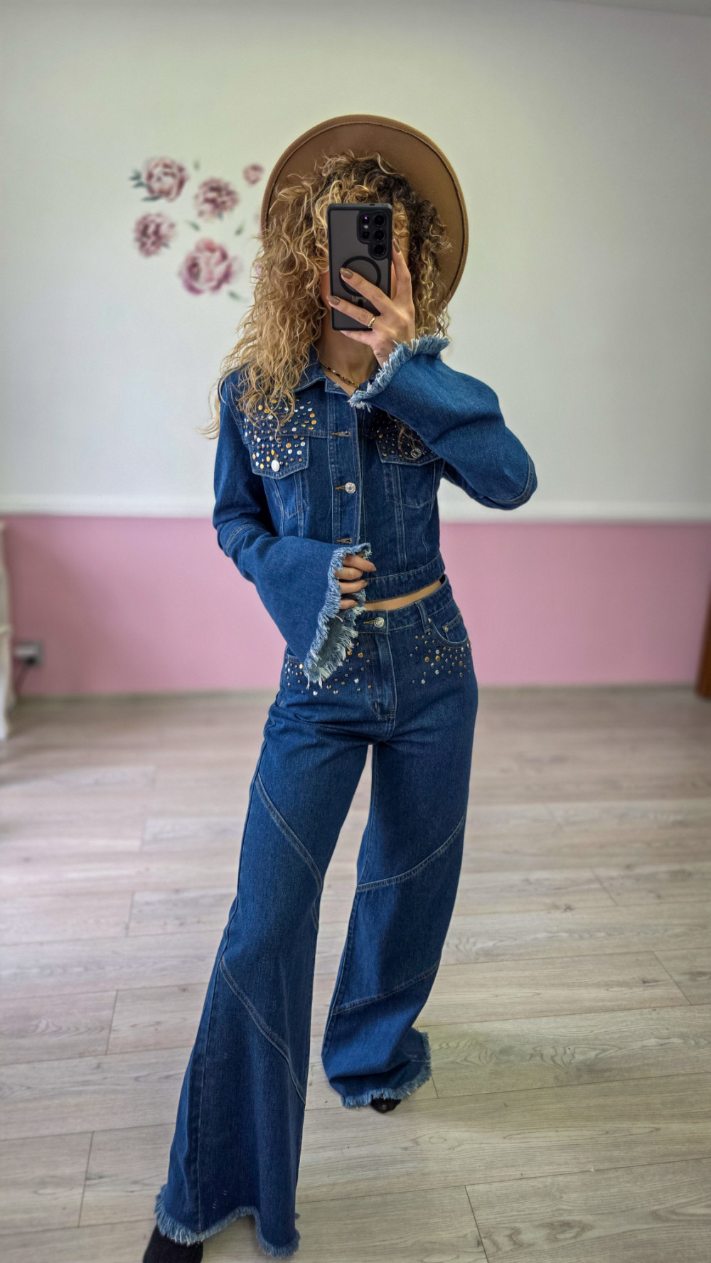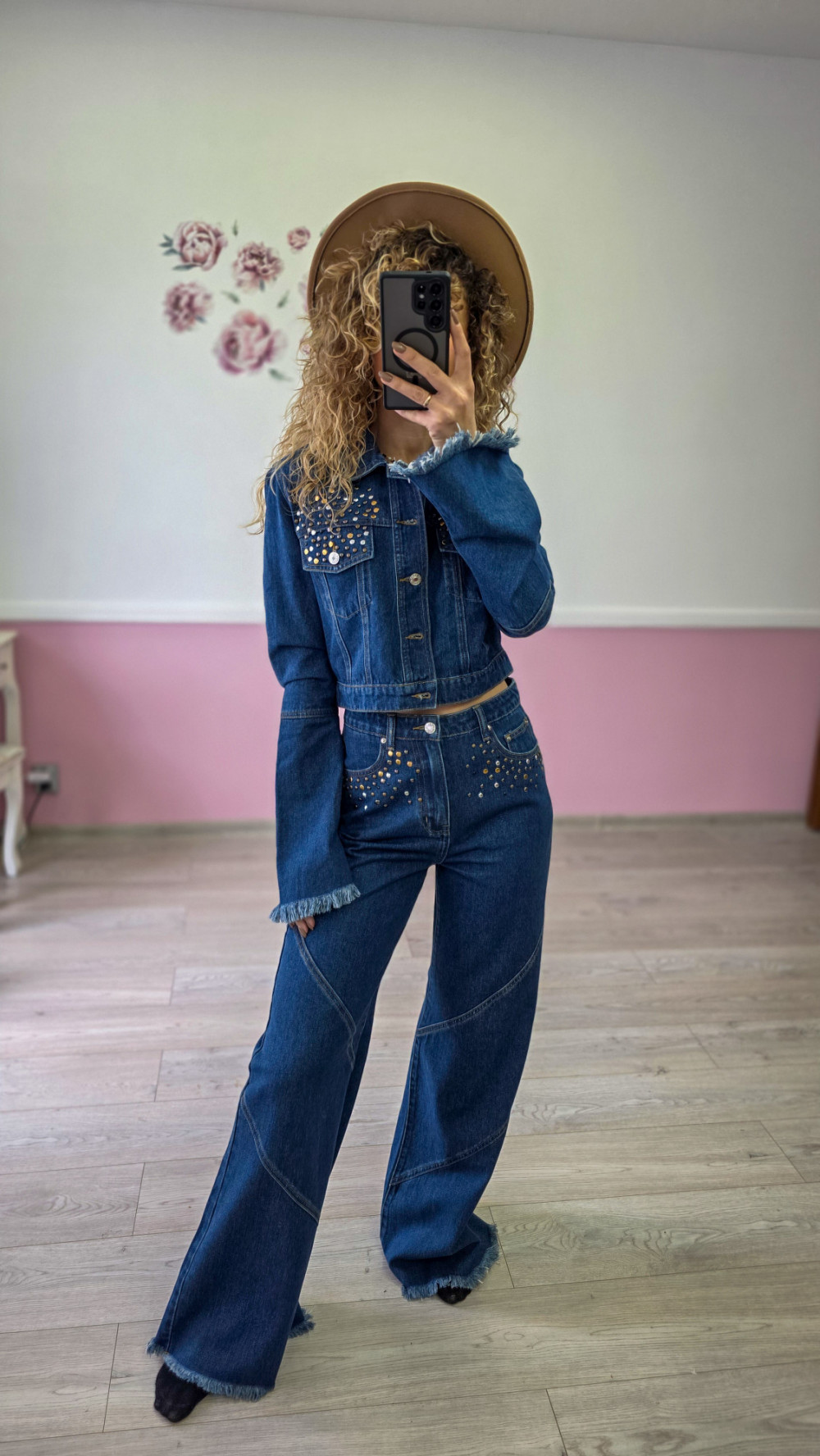 Komplet jeansowy – katana + spodnie z szeroką nogawką