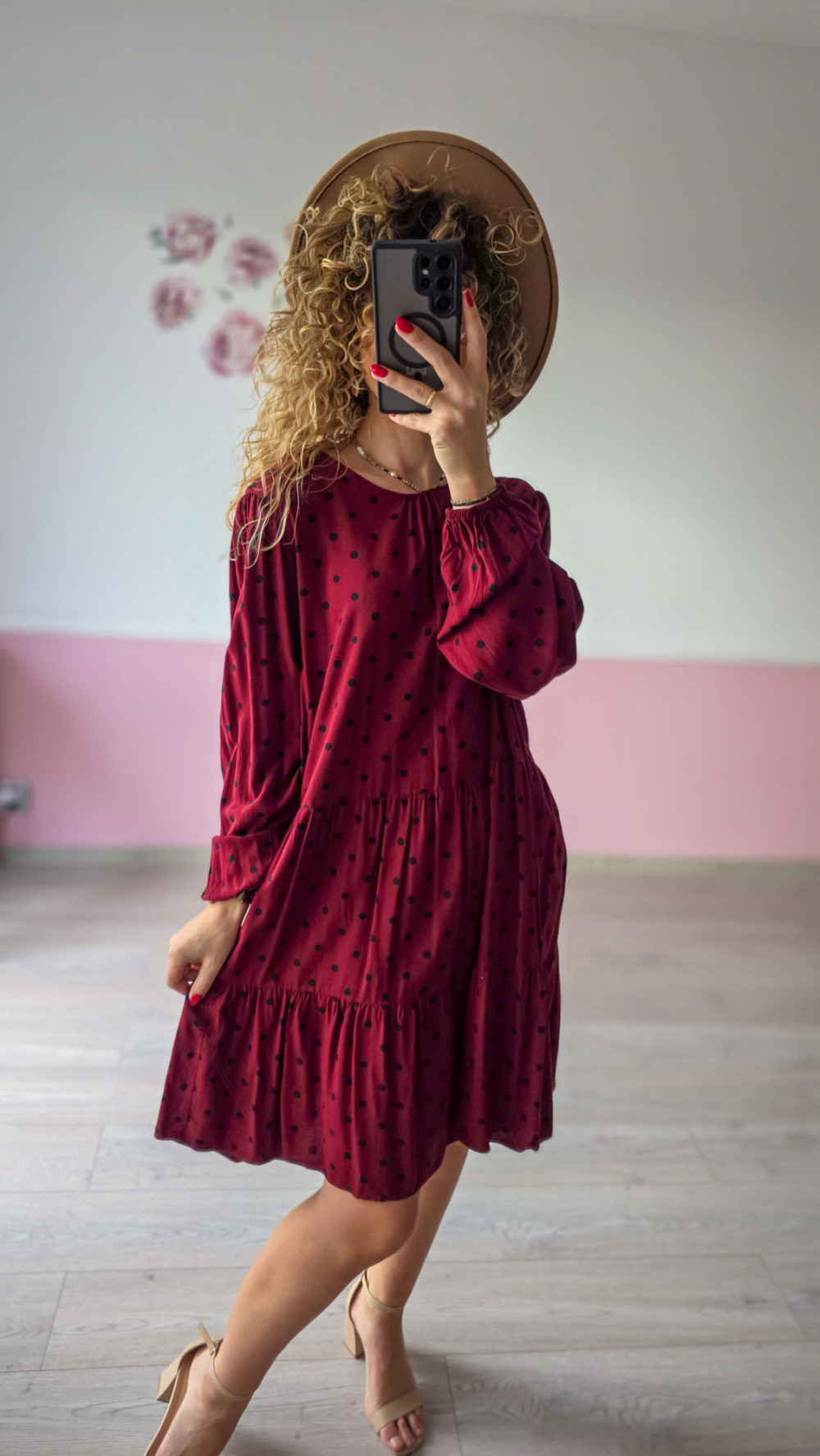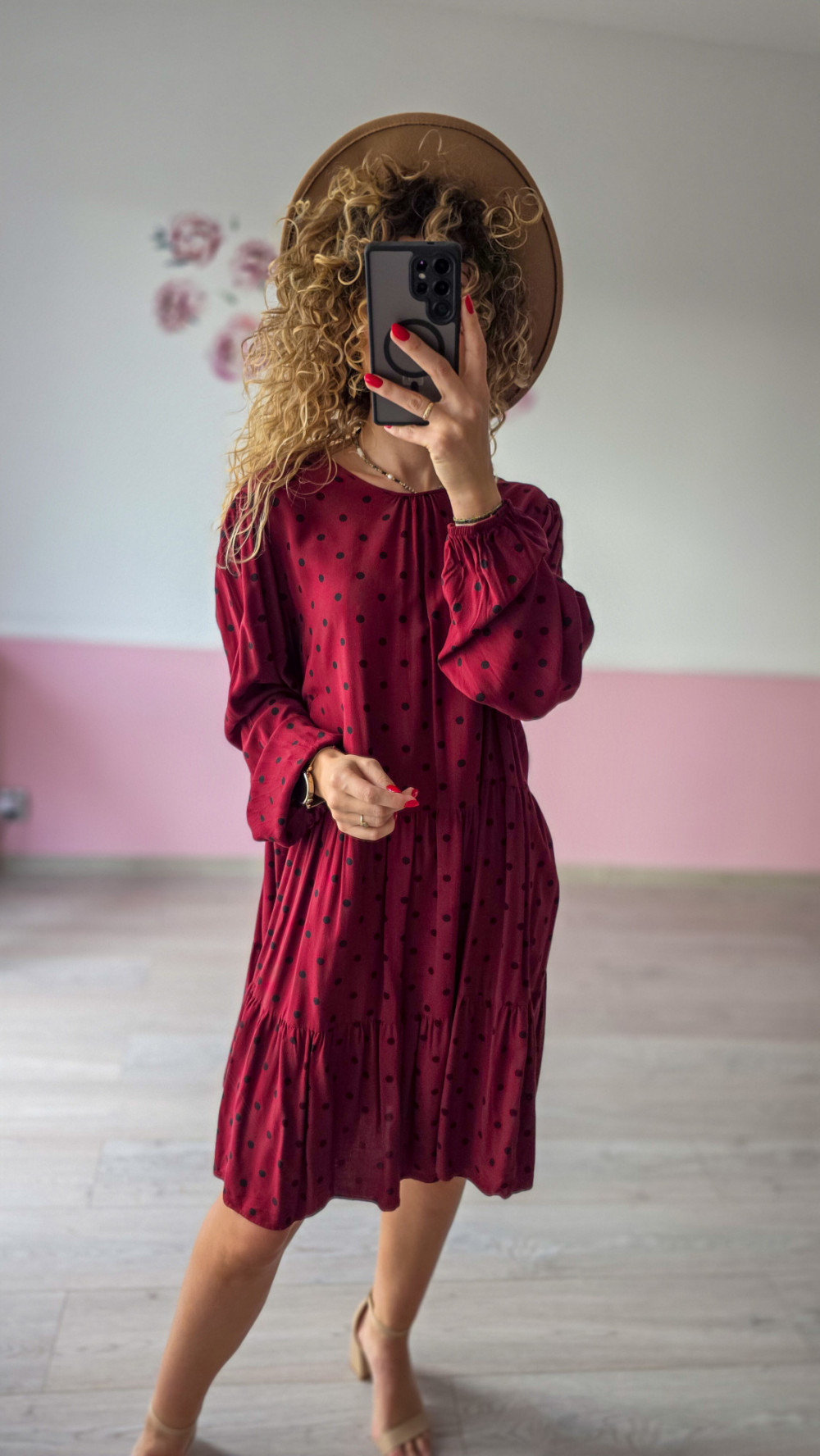 Sukienka oversize w kolorze wina w kropki – kobieca, lekka i wyjątkowo wygodna