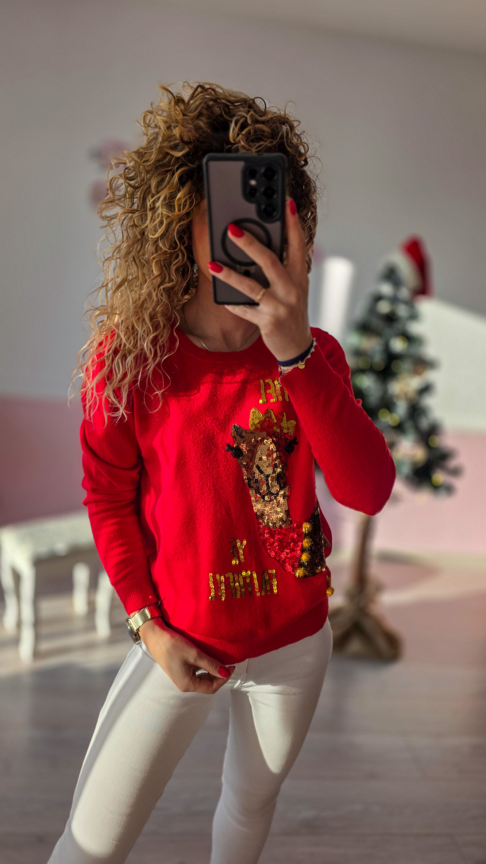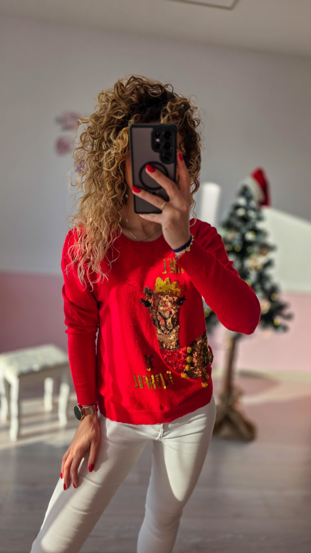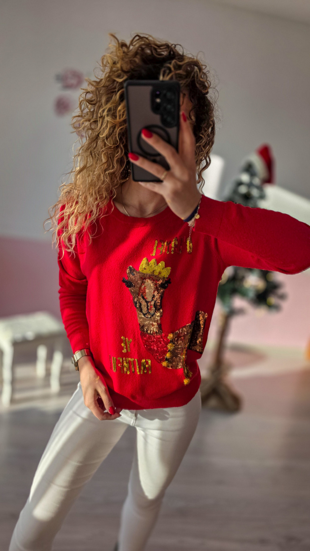 Sweterek pasuje do codziennych stylizacji, zimowych spacerów oraz świątecznych imprez – wyróżnia się wysoką jakością wykonania, trwałością i uniwersalnym krojem odpowiednim dla każdej sylwetki. To must-have na grudniowy czas pełen magii i rodzinnego ciepła.