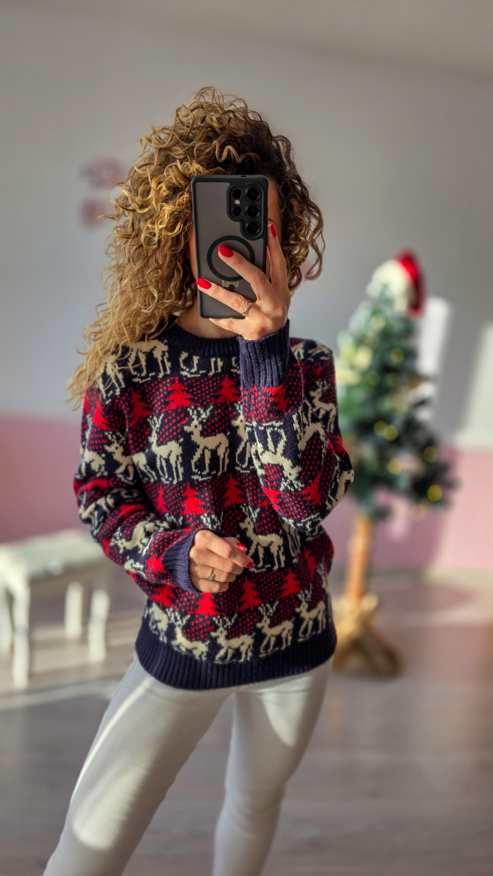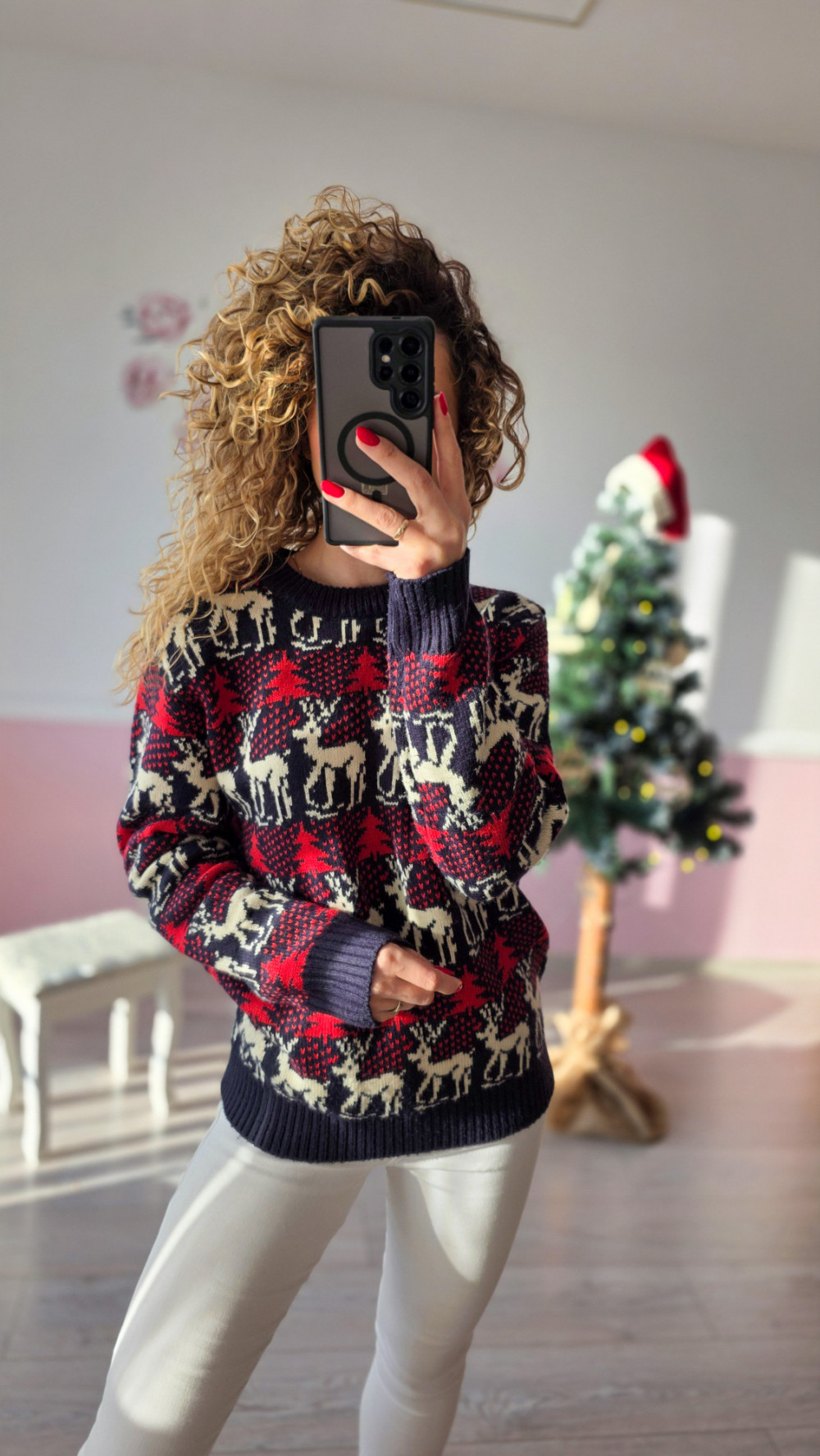 Sweterek pasuje do codziennych stylizacji, zimowych spacerów oraz świątecznych imprez – wyróżnia się wysoką jakością wykonania, trwałością i uniwersalnym krojem odpowiednim dla każdej sylwetki. To must-have na grudniowy czas pełen magii i rodzinnego ciepła.