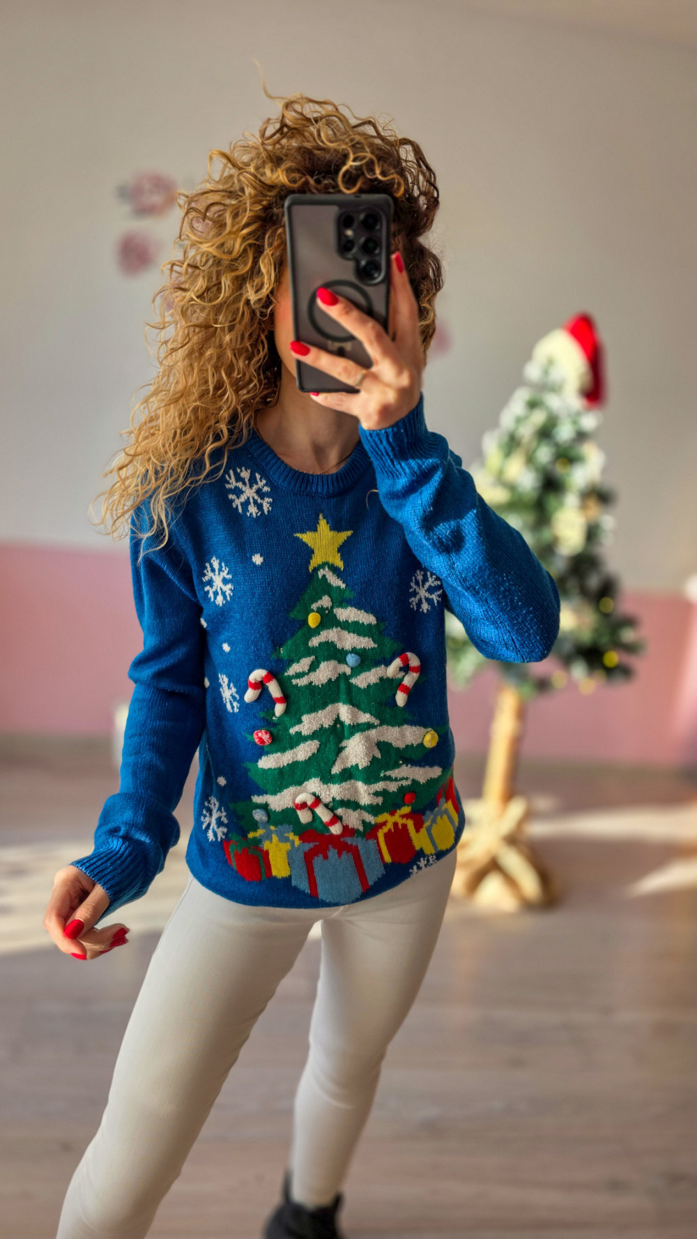 Sweterek pasuje do codziennych stylizacji, zimowych spacerów oraz świątecznych imprez – wyróżnia się wysoką jakością wykonania, trwałością i uniwersalnym krojem odpowiednim dla każdej sylwetki. To must-have na grudniowy czas pełen magii i rodzinnego ciepła.