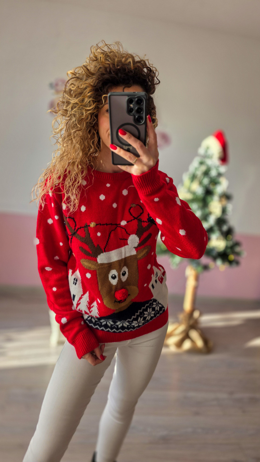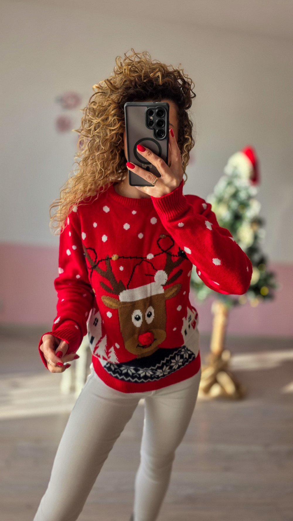 Sweterek pasuje do codziennych stylizacji, zimowych spacerów oraz świątecznych imprez – wyróżnia się wysoką jakością wykonania, trwałością i uniwersalnym krojem odpowiednim dla każdej sylwetki. To must-have na grudniowy czas pełen magii i rodzinnego ciepła.