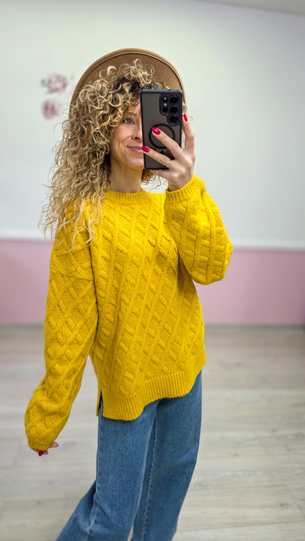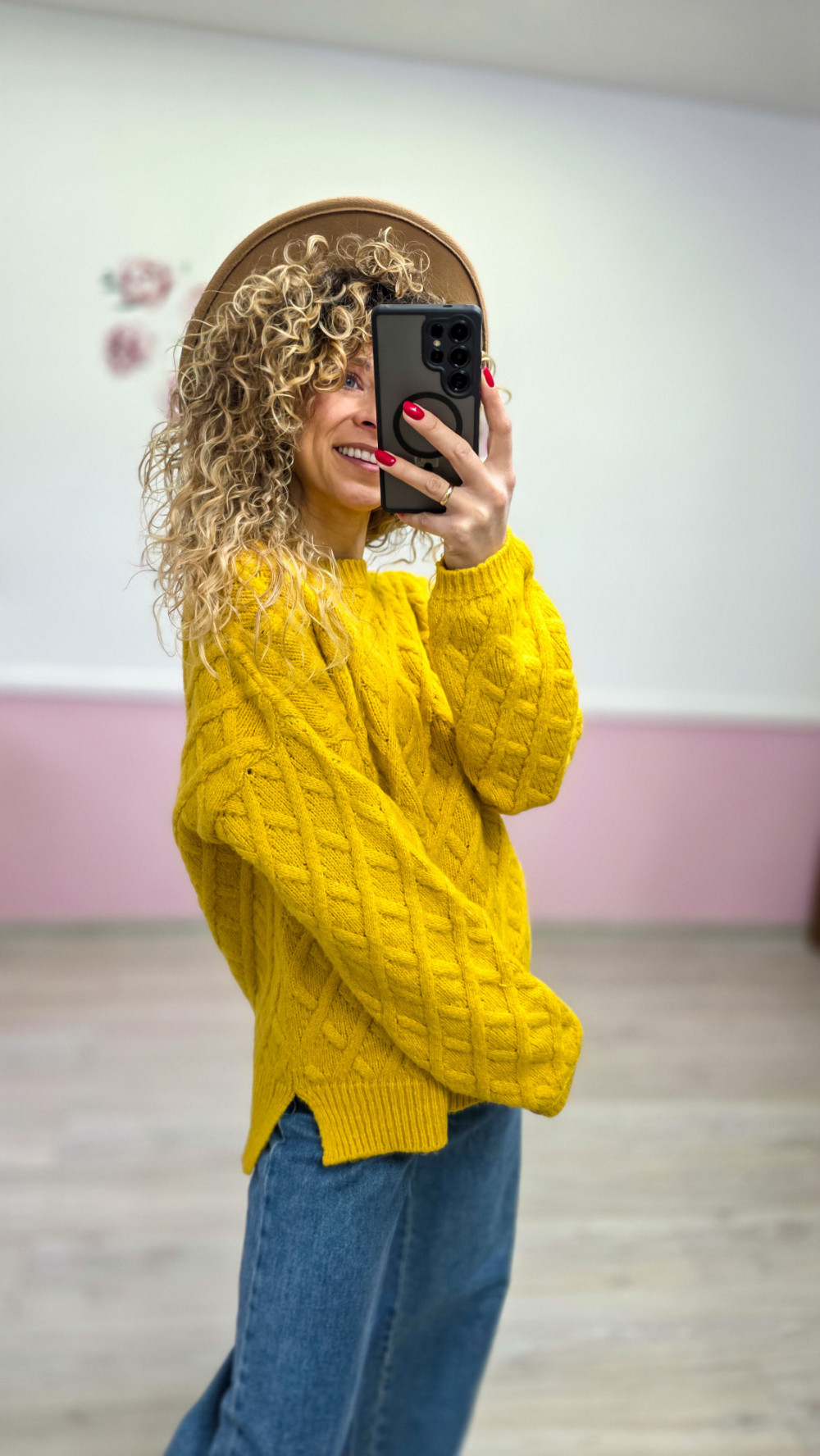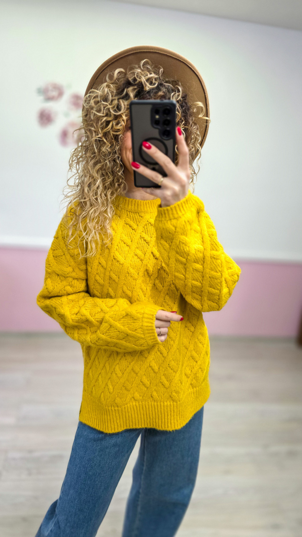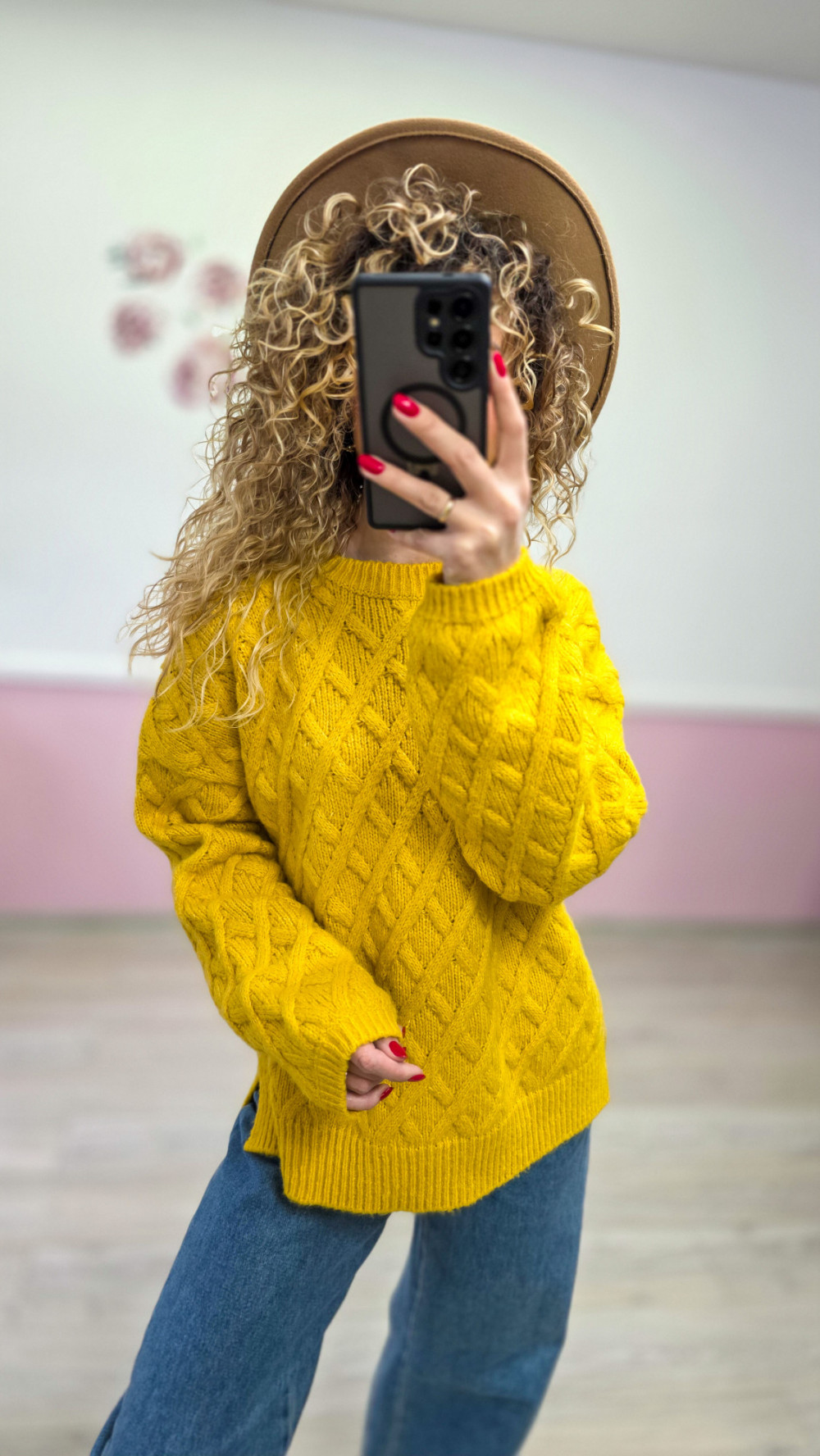 Musztardowy sweter o grubym splocie XXL/3XL