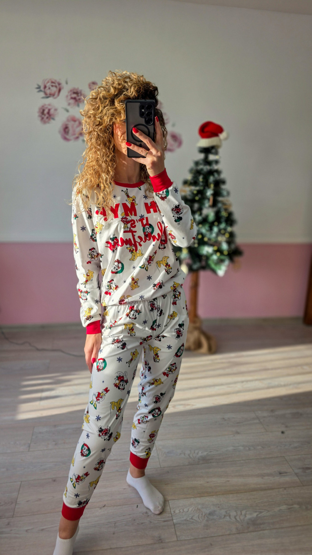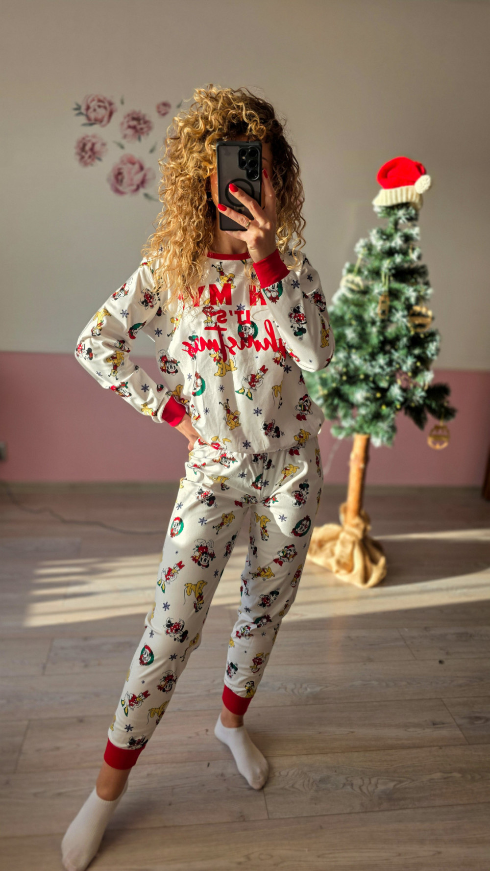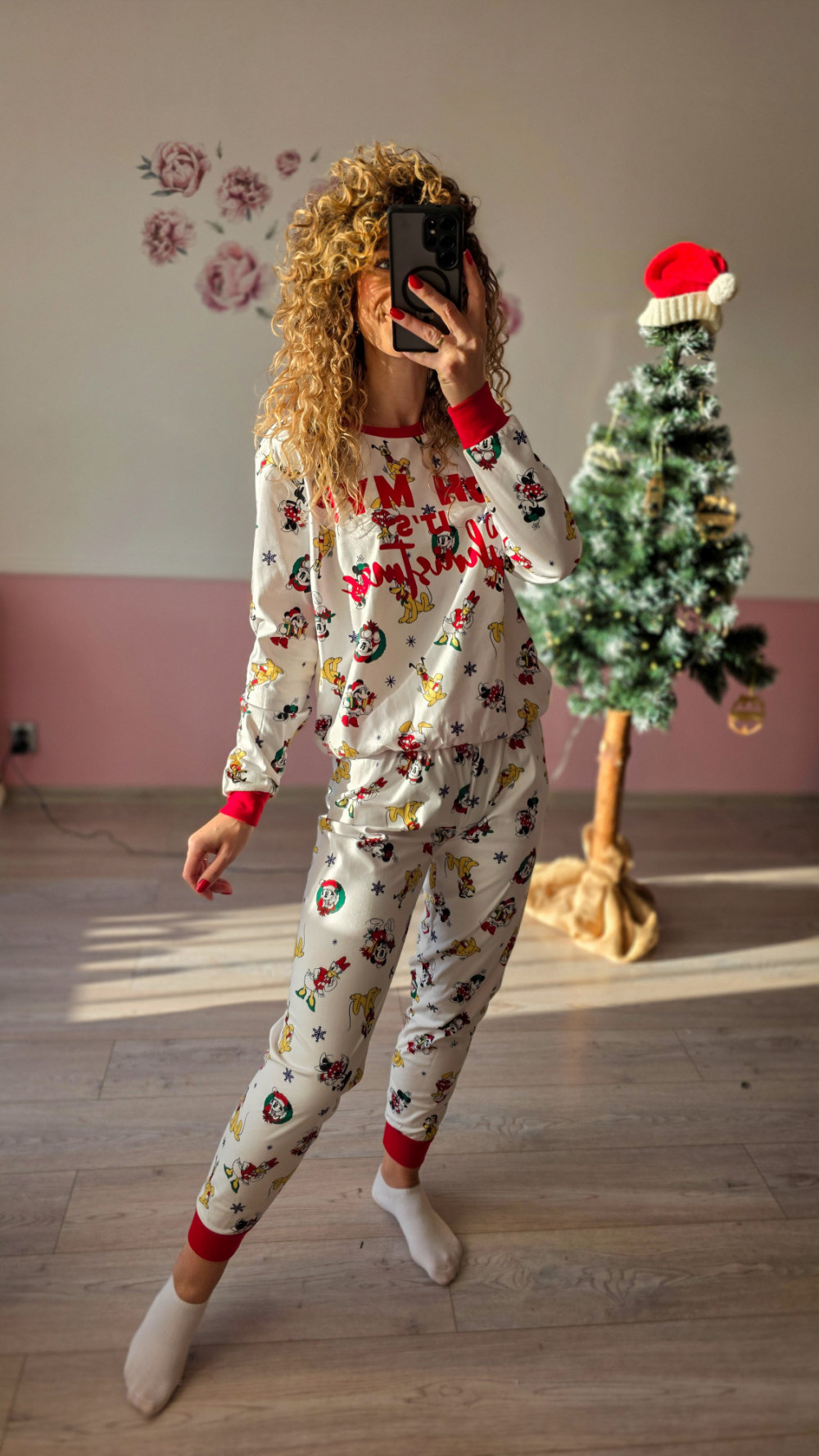 Biała świąteczna piżama z postaciami z kreskówek (Miki, Minnie, Pluto)S/M