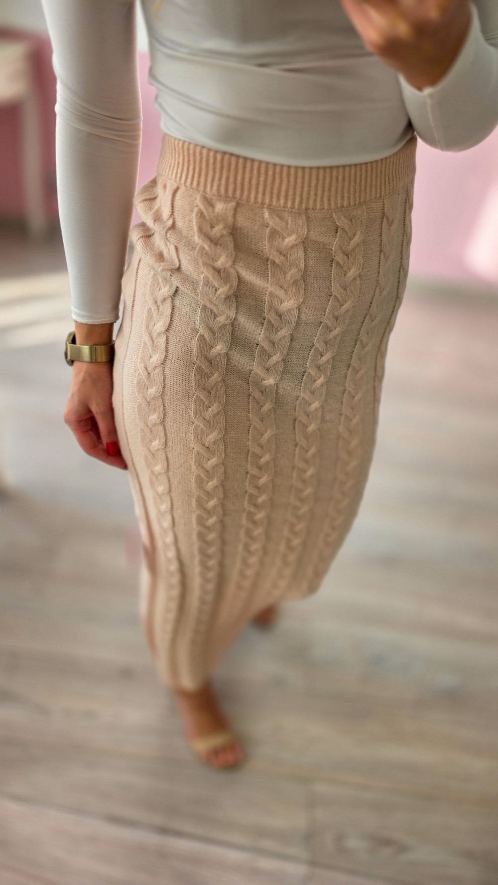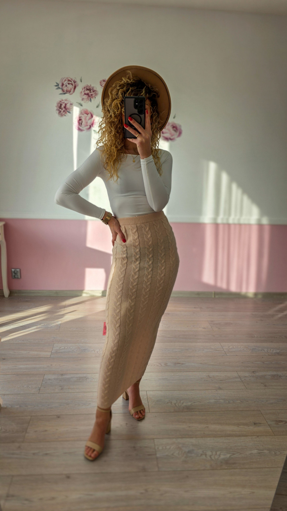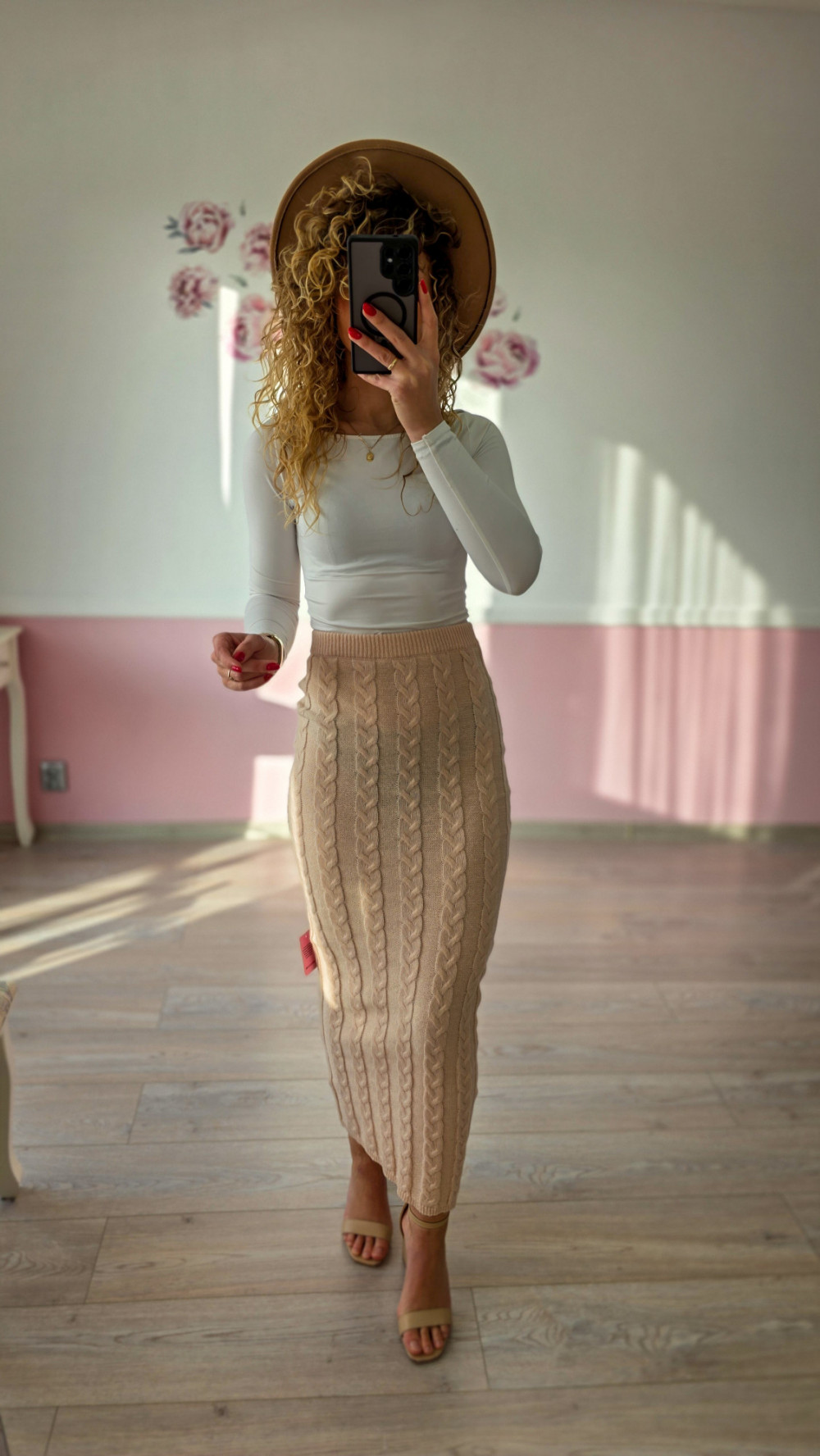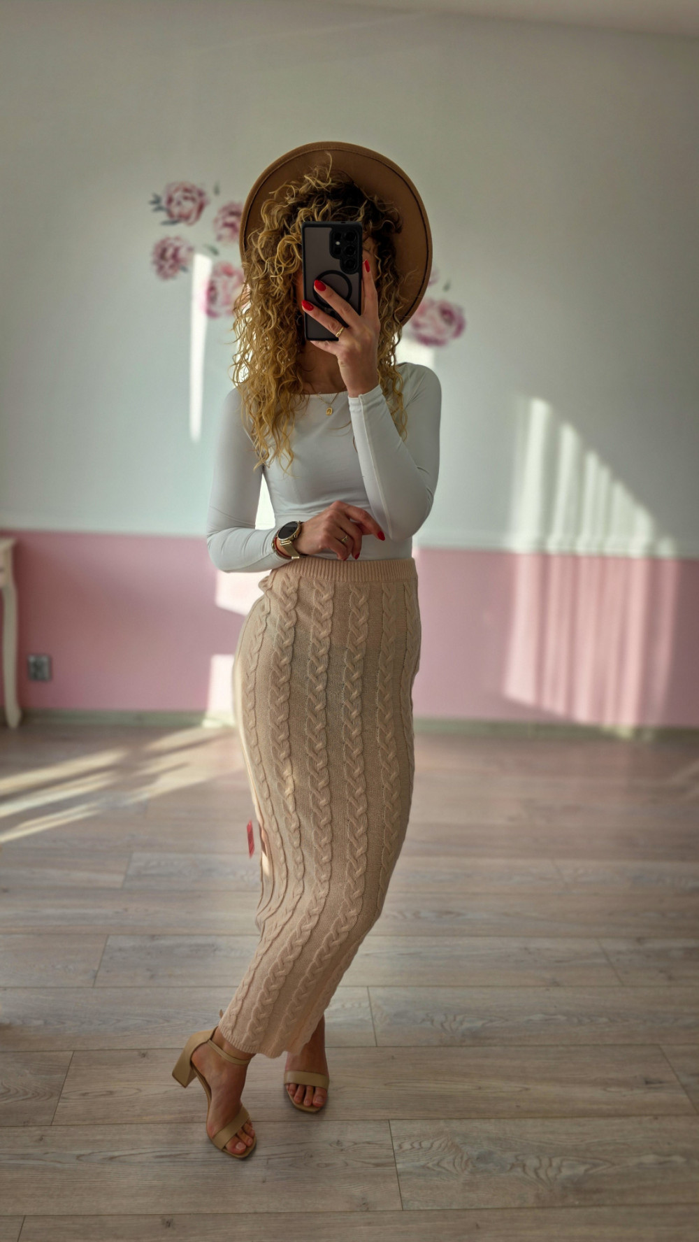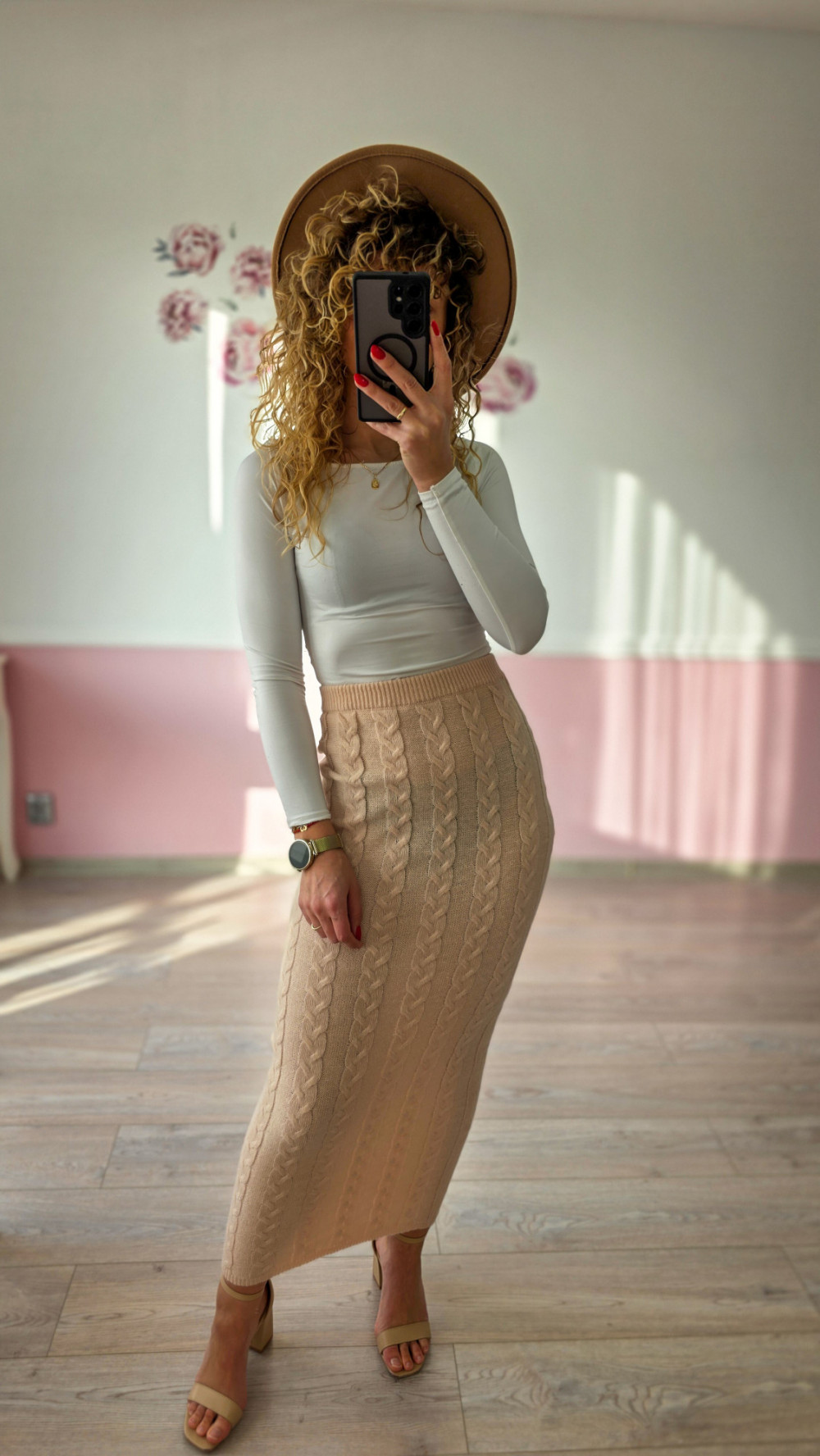 Sweterkowa spódnica maxi ze splotem – ciepła, stylowa i kobieca