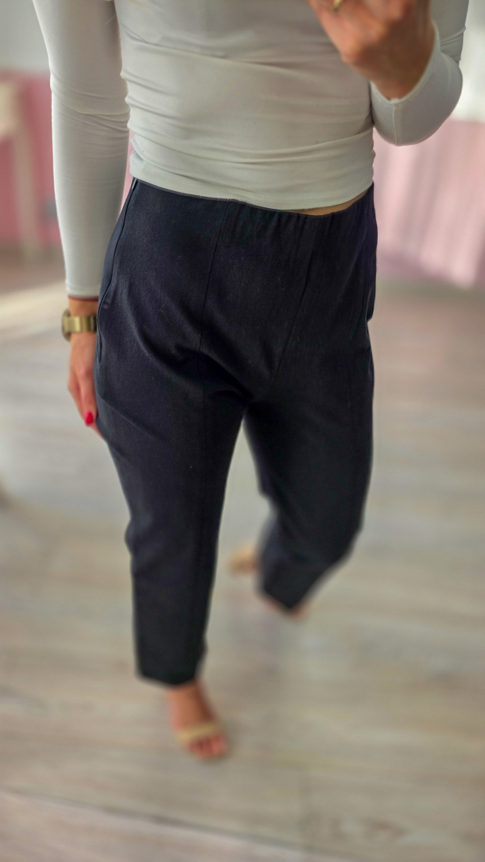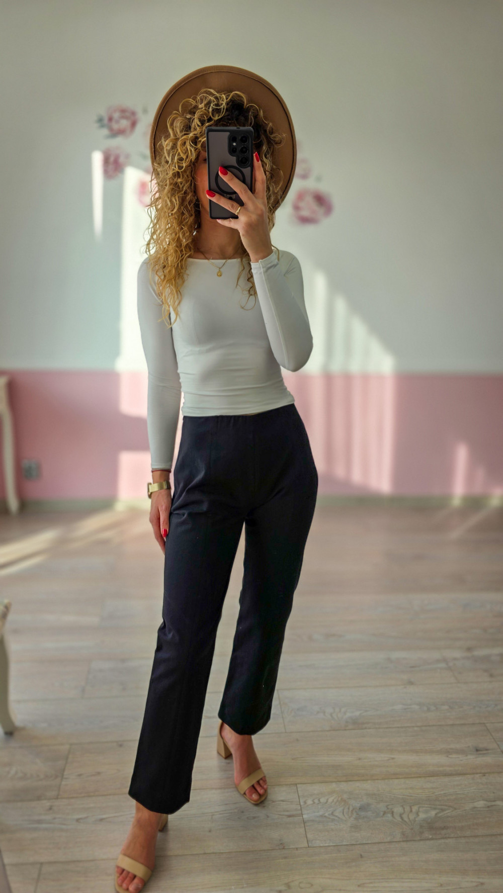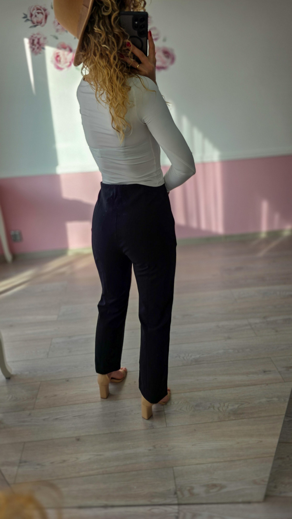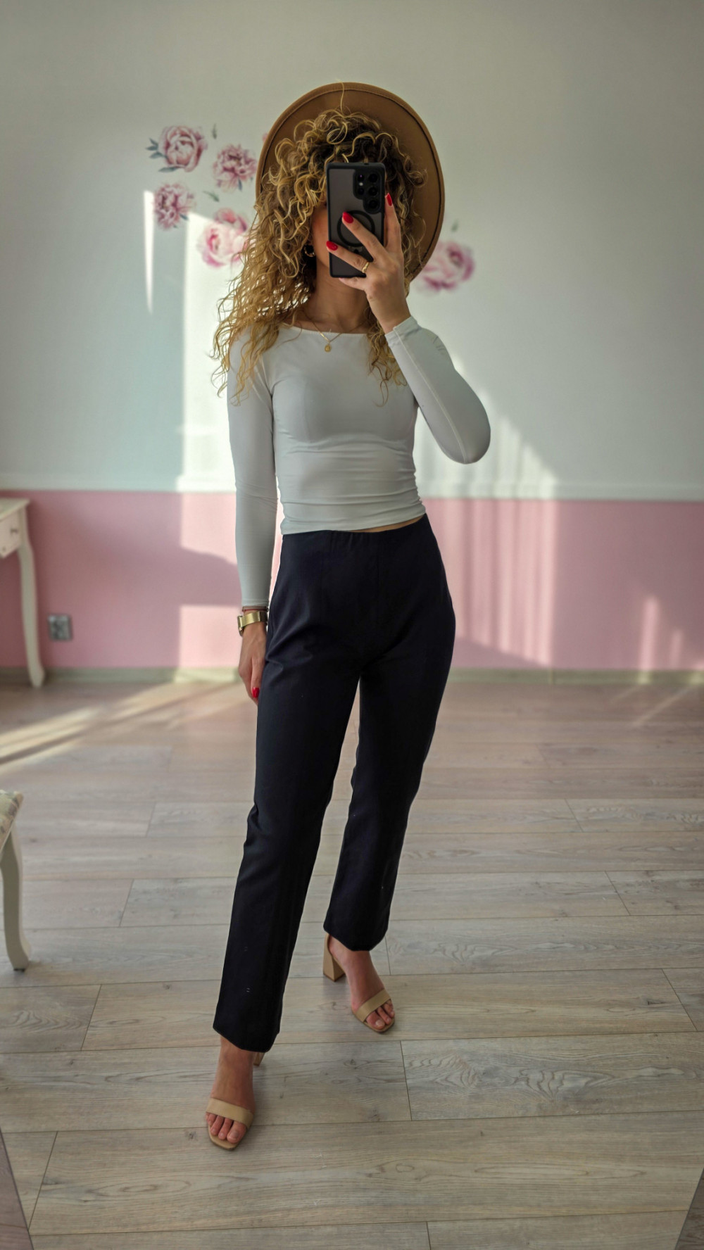 Czarne spodnie z elastycznego jeansu to idealna propozycja dla kobiet, które cenią komfort i klasyczny, dopasowany fason. Dzięki elastycznemu denimowi spodnie świetnie układają się na sylwetce, podkreślając jej kształty i zapewniając swobodę ruchów przez cały dzień. Uniwersalna czerń sprawia, że pasują do każdej stylizacji — od codziennych zestawów z T-shirtem, aż po eleganckie looki z koszulą lub swetrem. To ponadczasowy model, który zawsze wygląda stylowo i stanowi bazę wielu modnych outfitów.