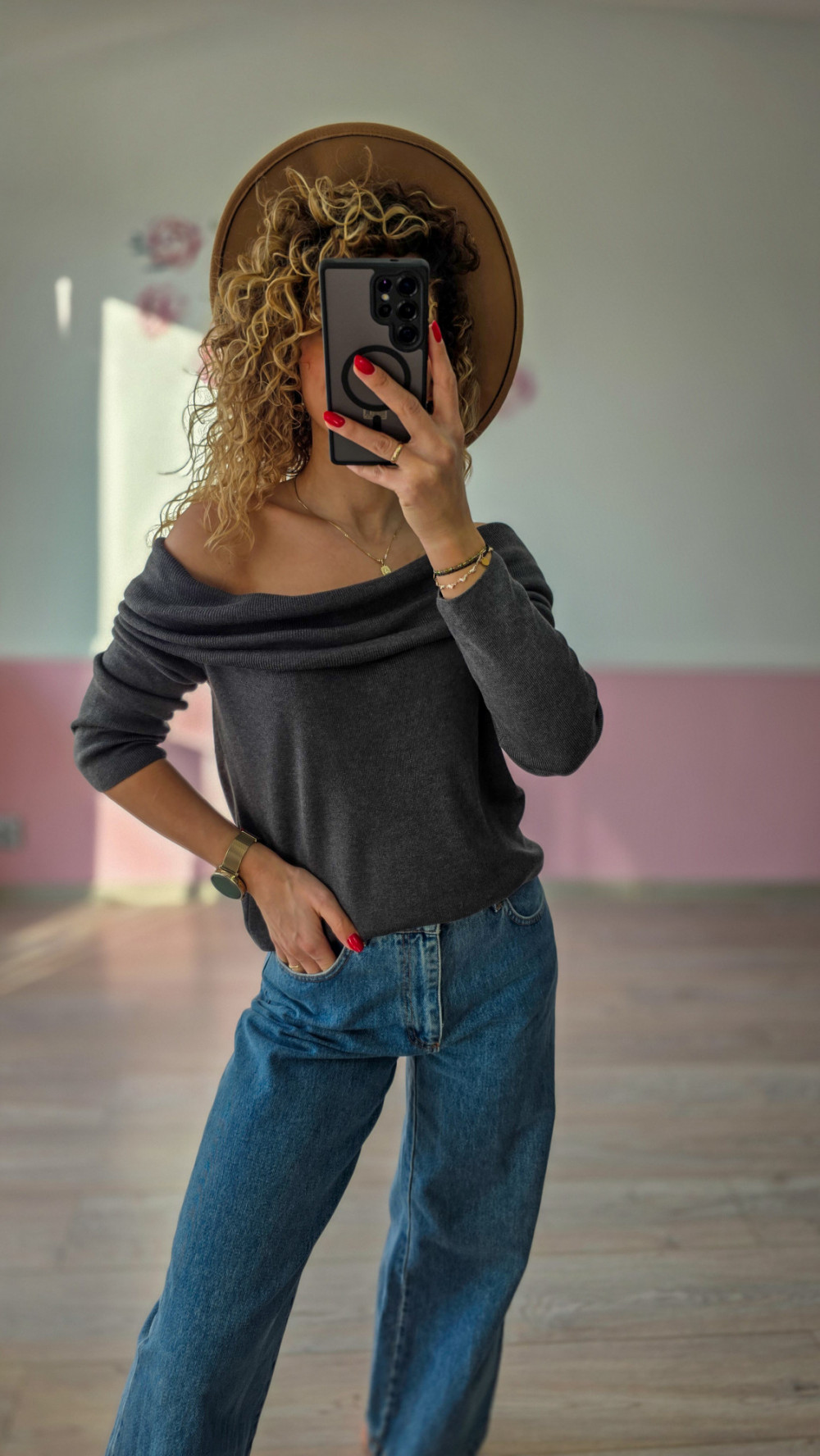 Szary sweterek hiszpanka – modny, kobiecy i wygodny