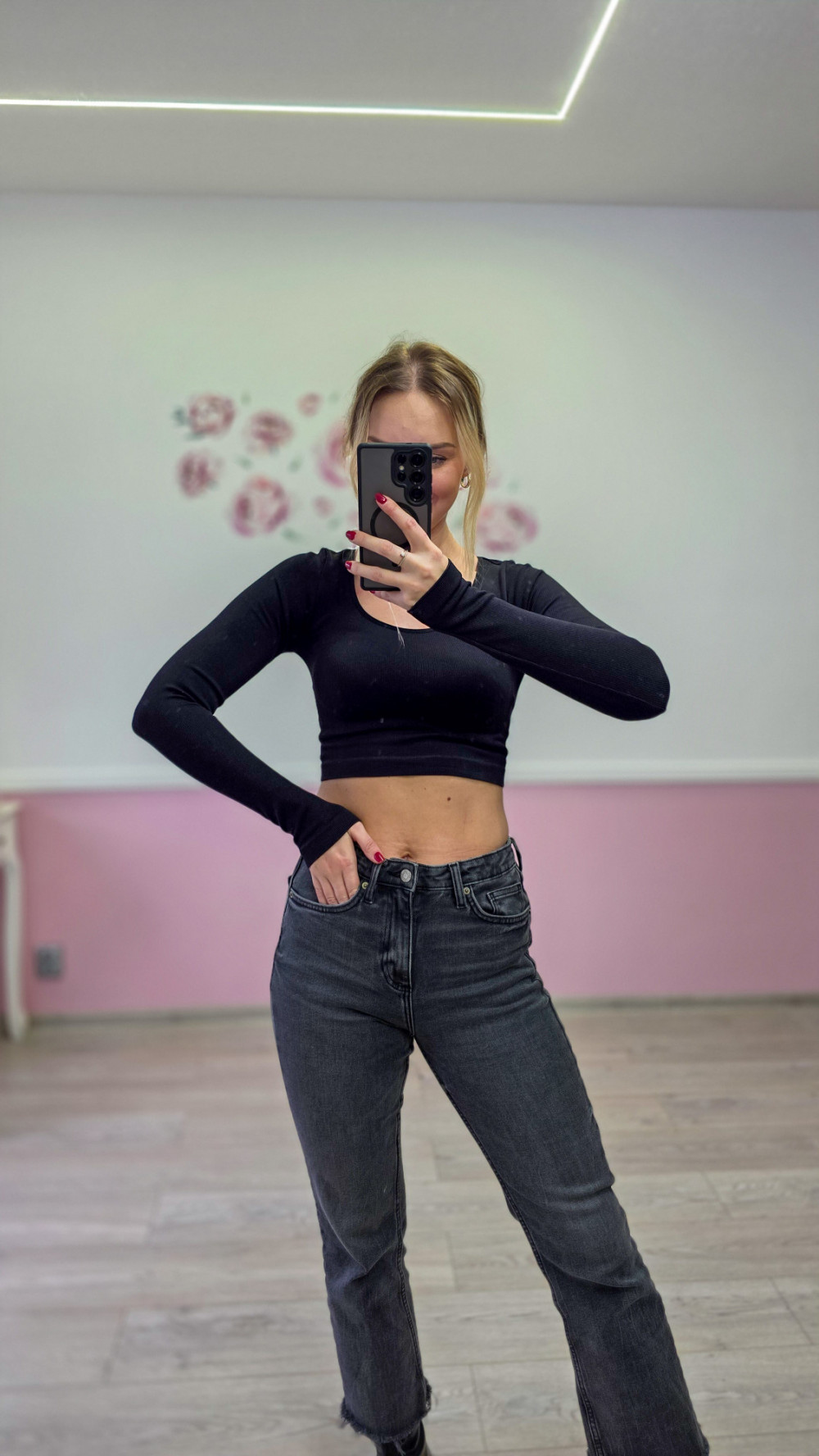 Czarny crop top z długim rękawem