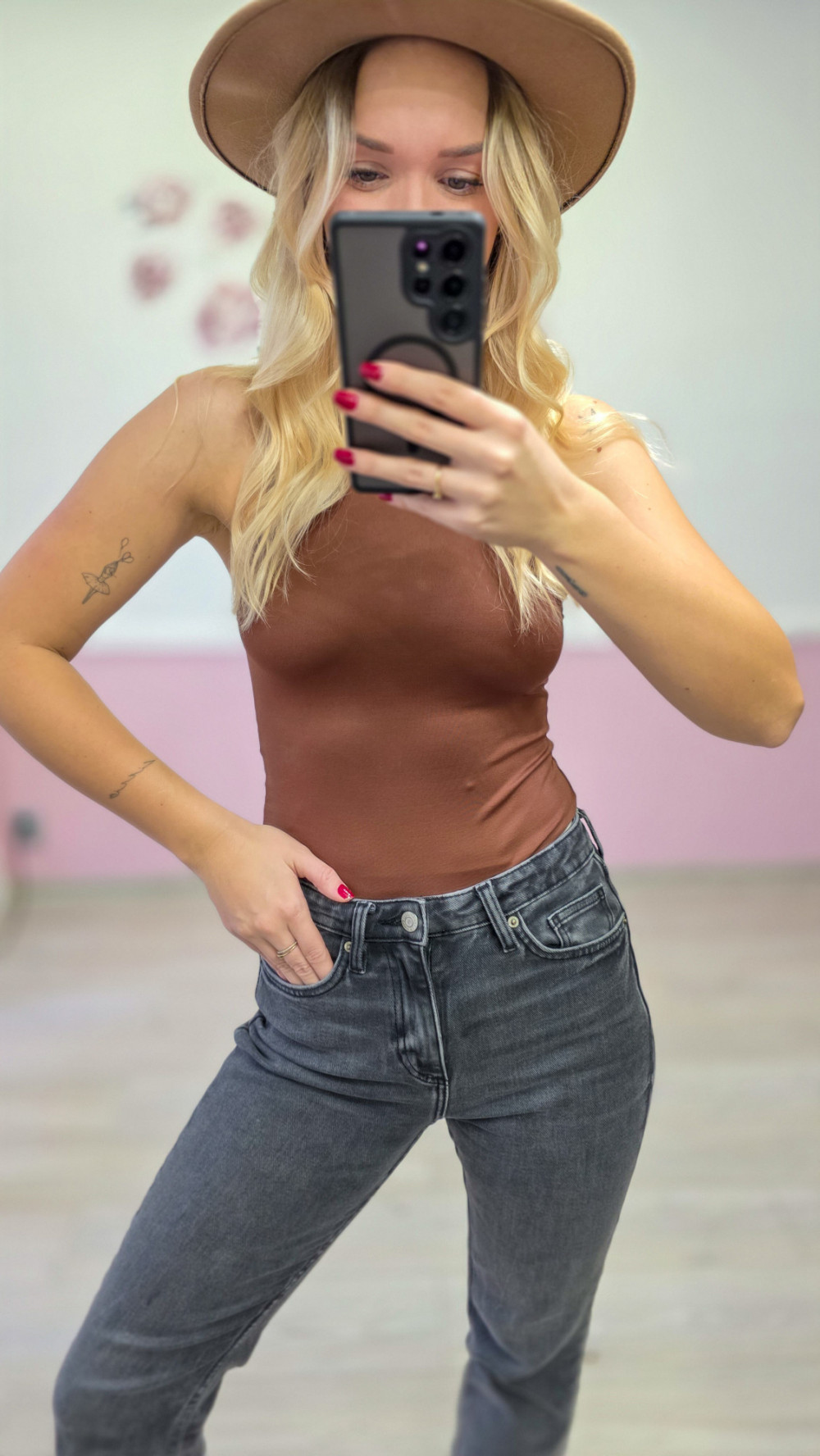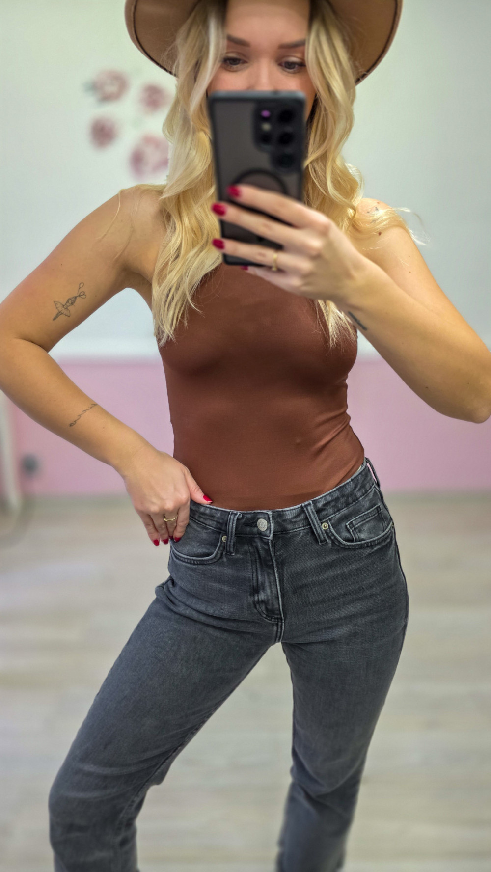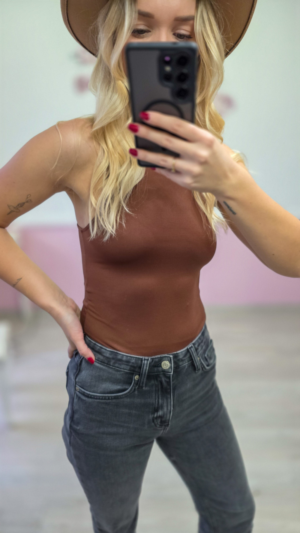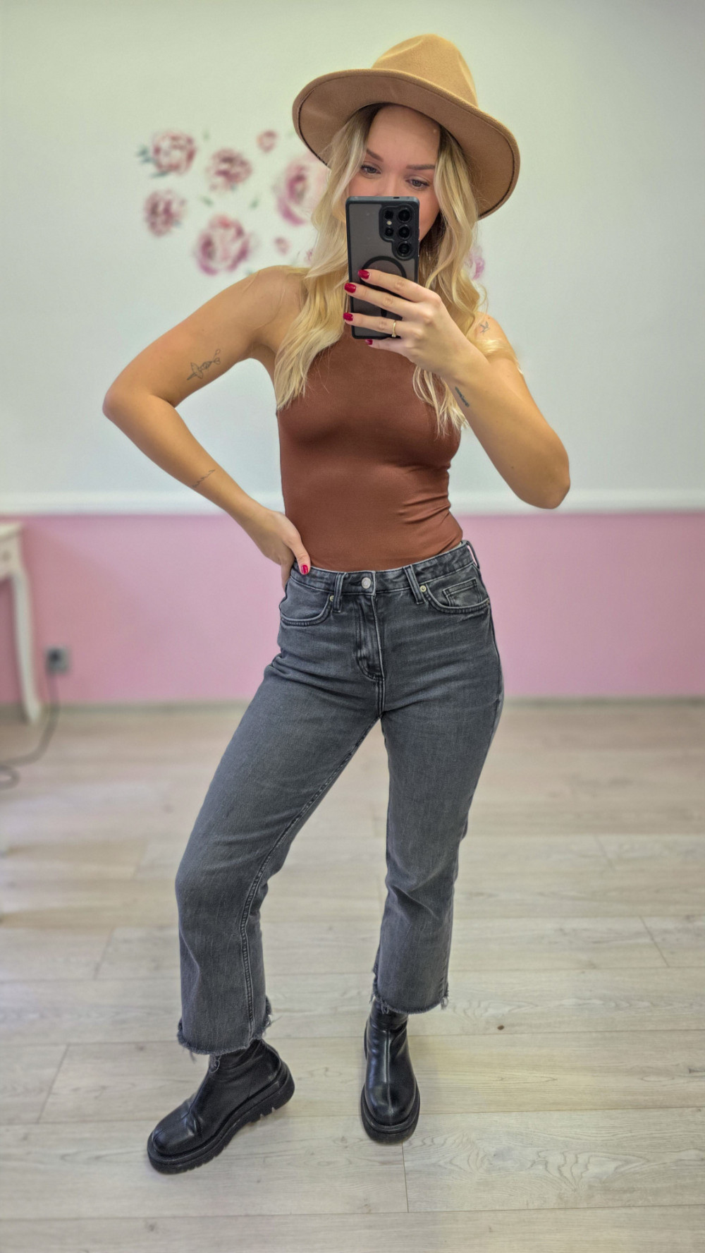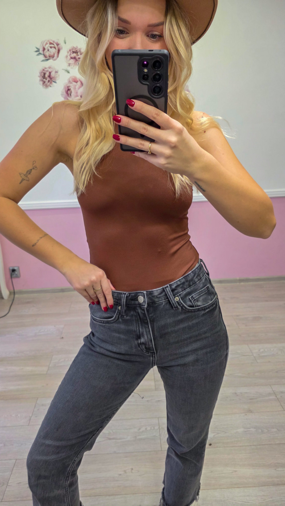 Brązowe body na ramiączkach to stylowa propozycja dla kobiet, które lubią naturalne, ziemiste odcienie. Elastyczny, gładki materiał dopasowuje się do sylwetki, zapewniając komfort przez cały dzień. Kolor brązu pięknie podkreśla opaleniznę i świetnie komponuje się z jeansami, camelowymi dodatkami czy kardiganami. To model idealny na lato oraz jako baza pod jesienne stylizacje.