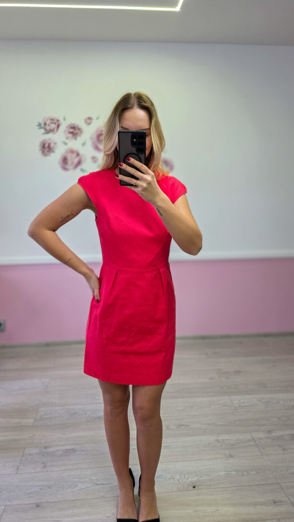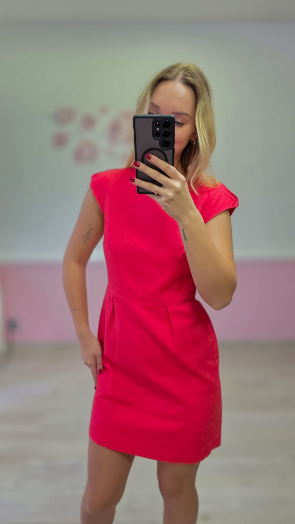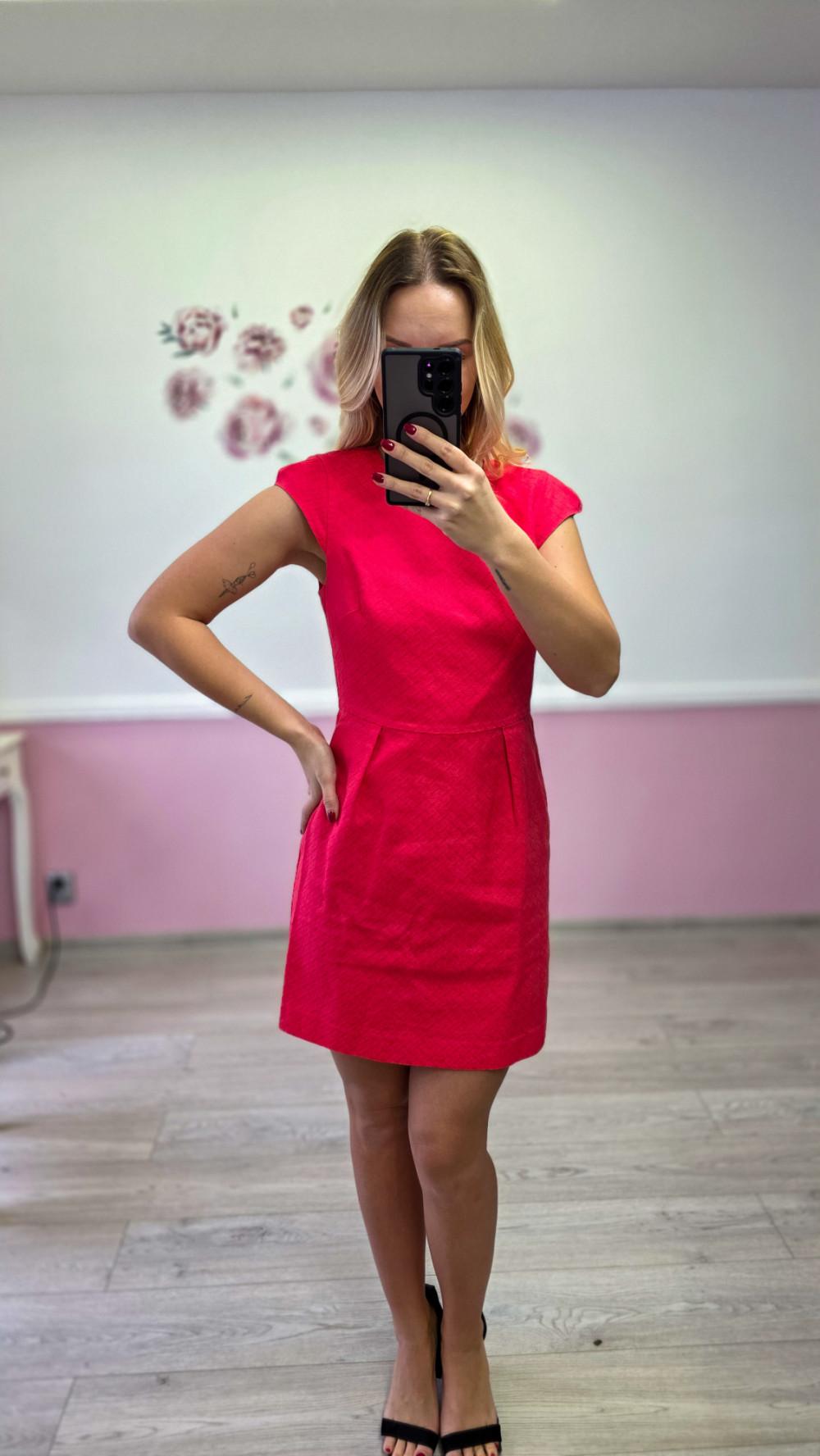 Elegancka różowa sukienka damska o klasycznym, taliowanym kroju. Świetna na wesela, uroczystości, do pracy lub na wieczorne wyjście. Delikatny materiał, kobieca linia i piękny kolor sprawiają, że to ponadczasowa sukienka, która podkreśla figurę i dodaje pewności siebie.