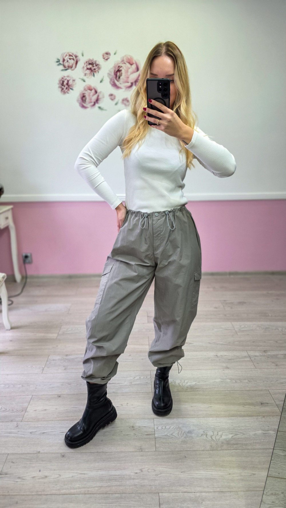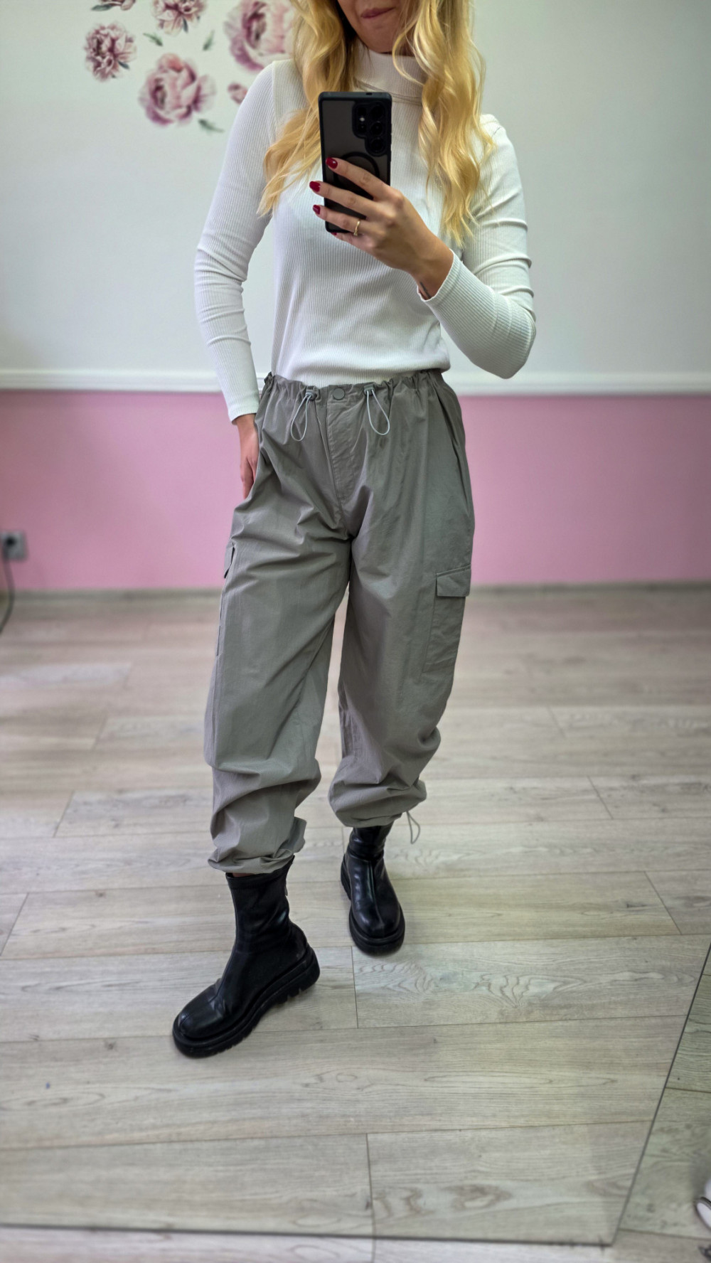 Postaw na wygodę i miejski styl dzięki szarym spodniom cargo damskim. Model o luźnym kroju zapewnia swobodę ruchów, a regulowana talia na troczki umożliwia idealne dopasowanie do sylwetki. Funkcjonalne boczne kieszenie podkreślają styl cargo, a ściągacze u dołu nogawek dodają sportowego charakteru.