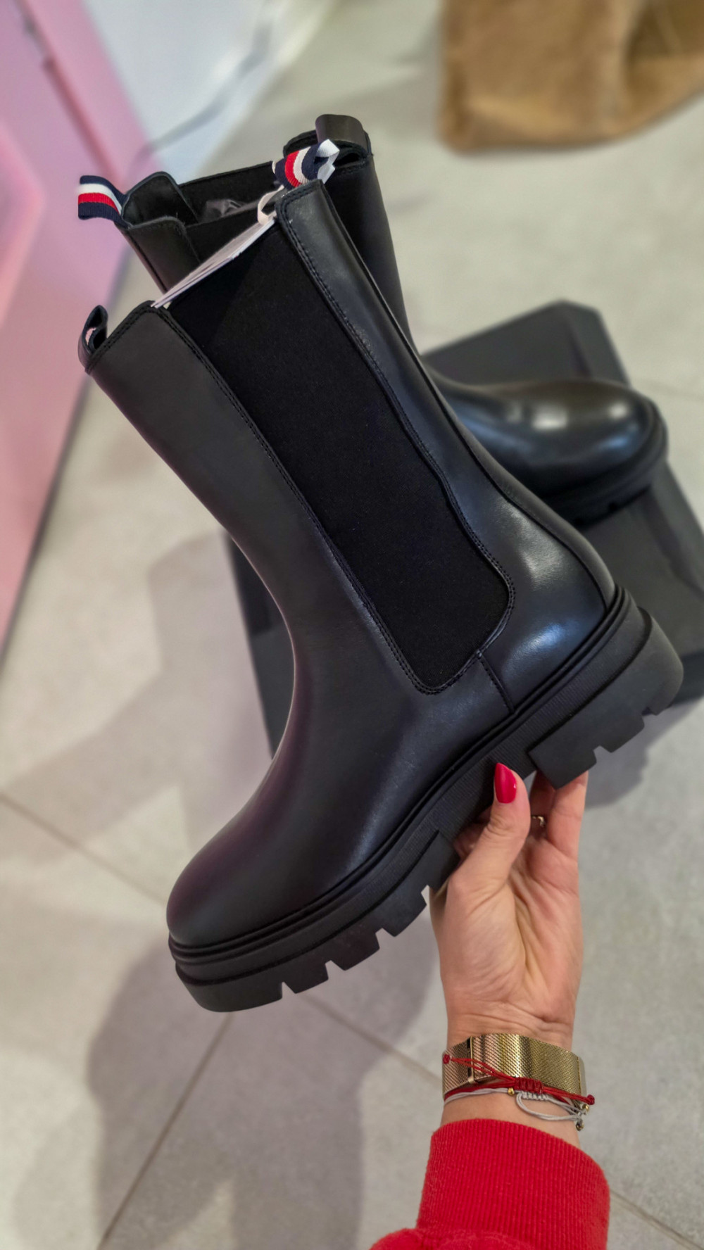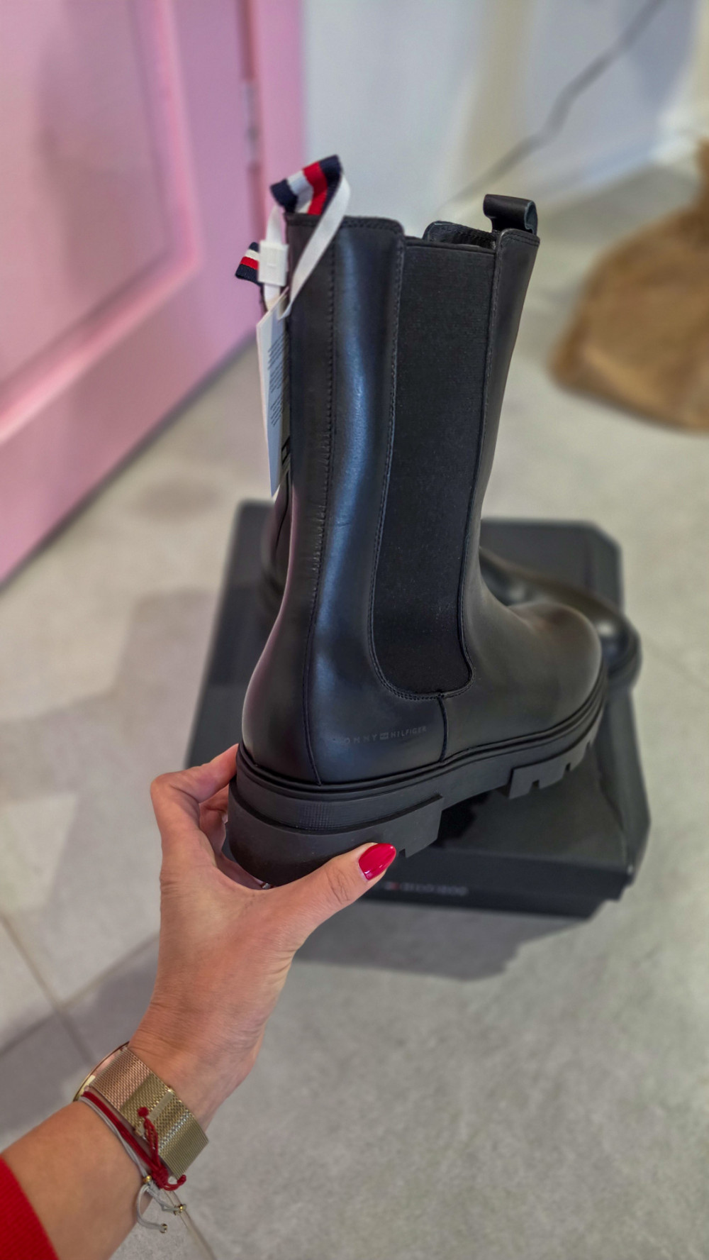 Sztyblety damskie Tommy Hilfiger Monochromatic Chelsea Boot czarne | Skórzane botki | Rozmiar 42 | NOWE