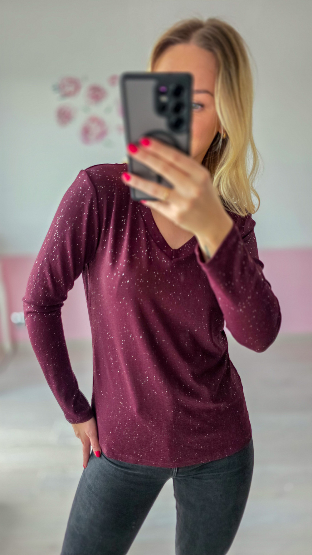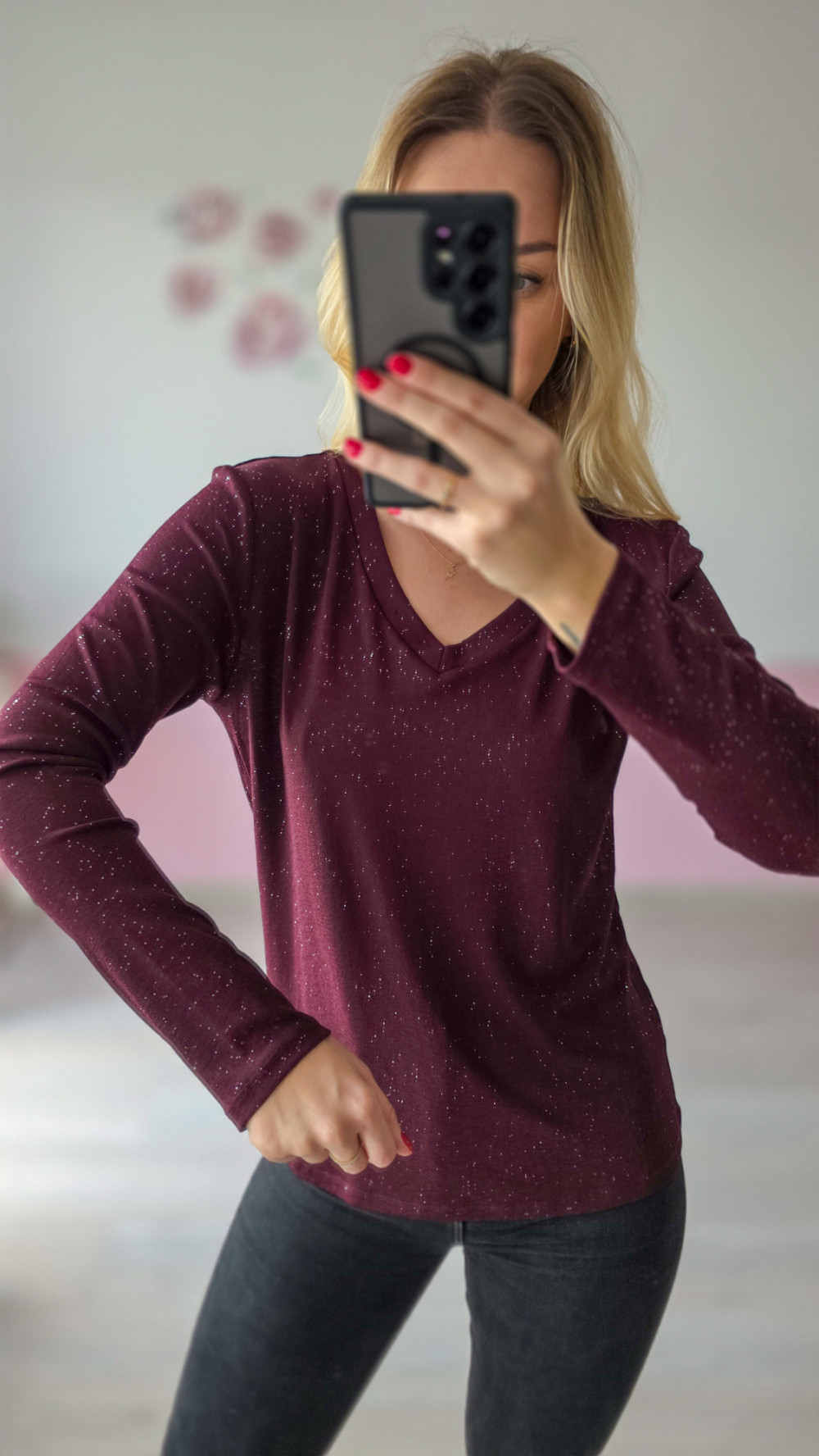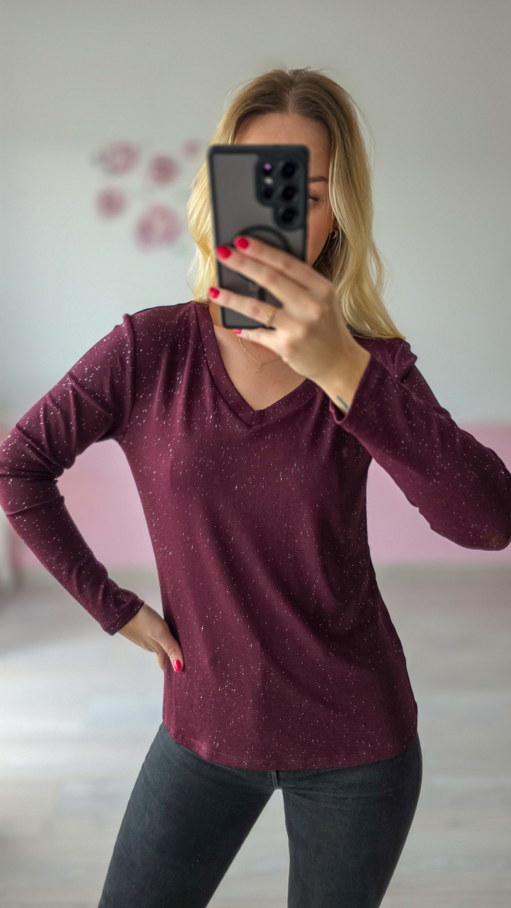 Bordowa bluzka damska z połyskiem – elegancka i stylowa