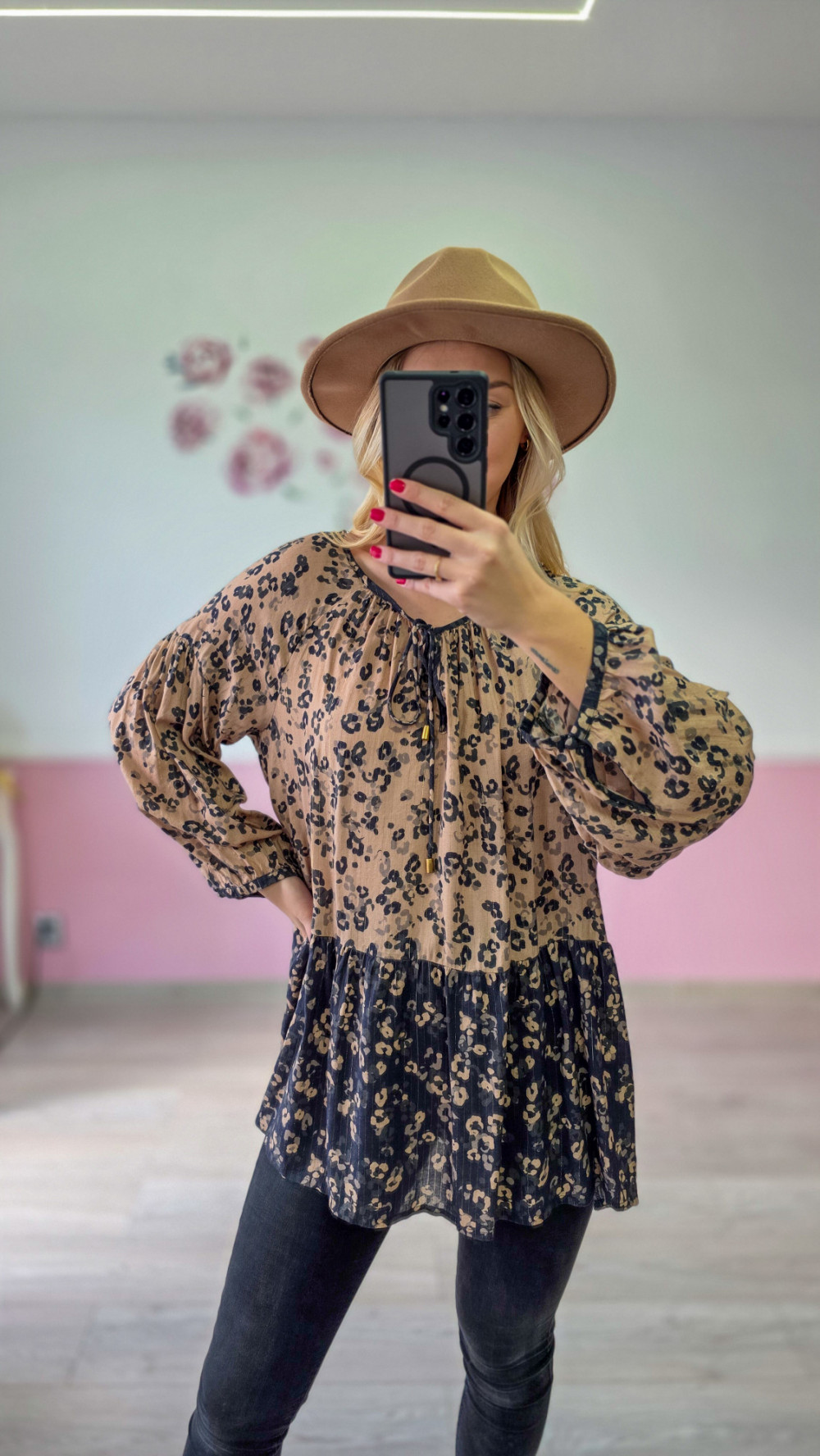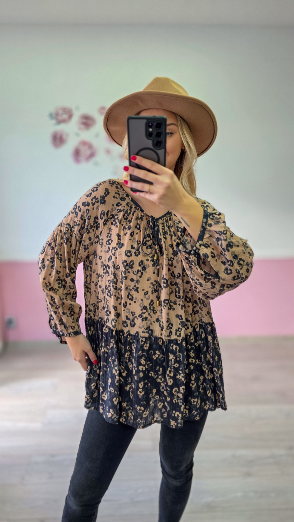 Tunika damska w panterkę z długim rękawem – lekka i zwiewna