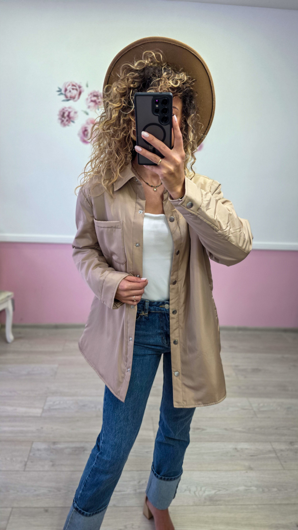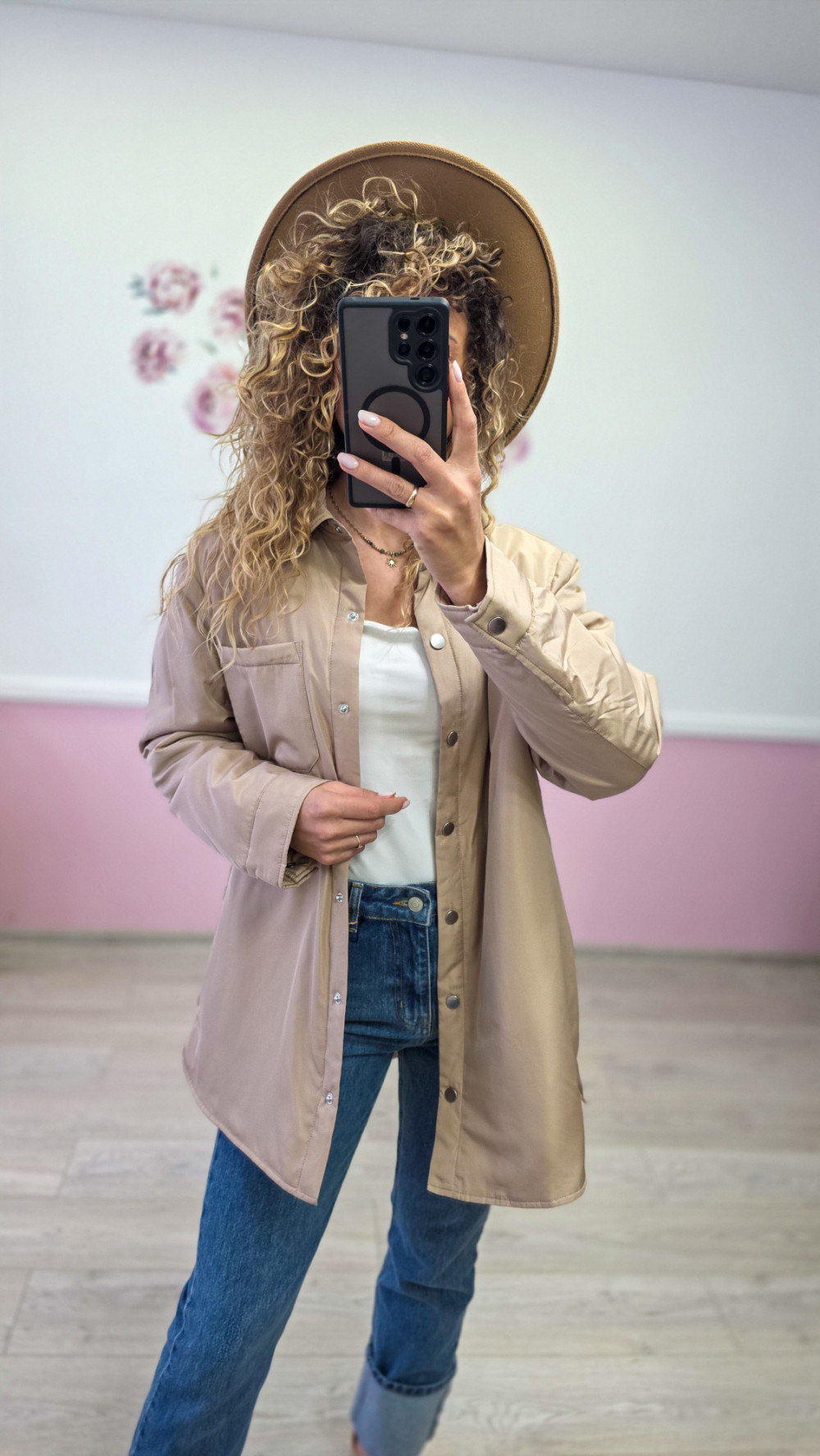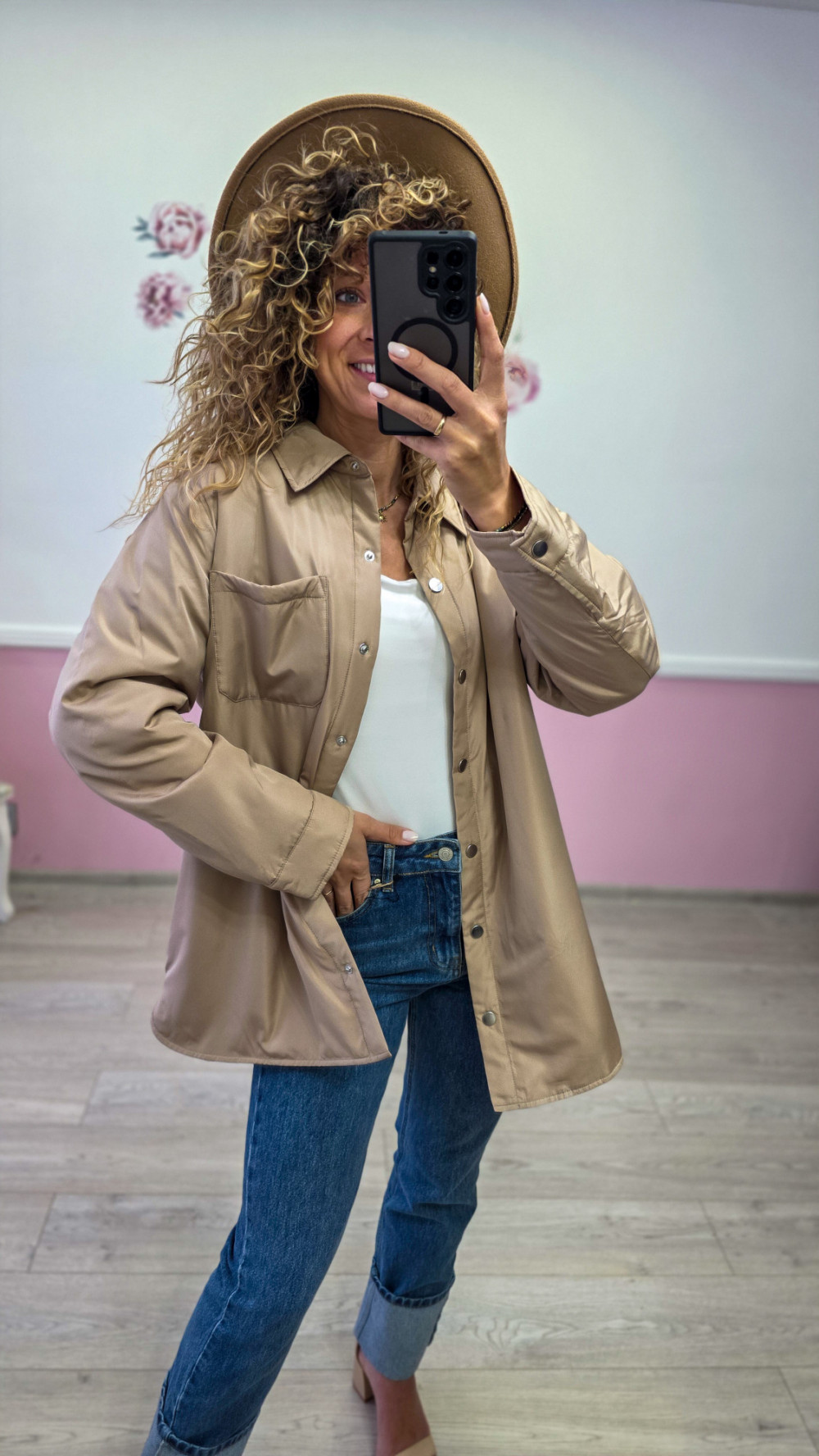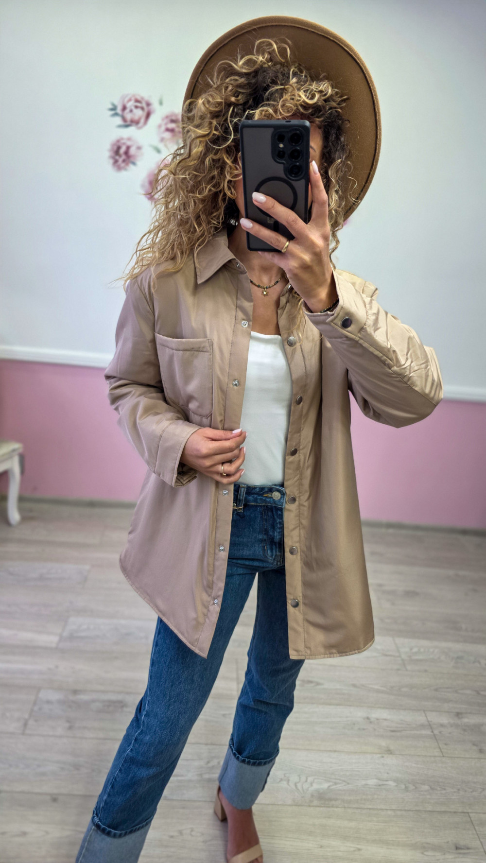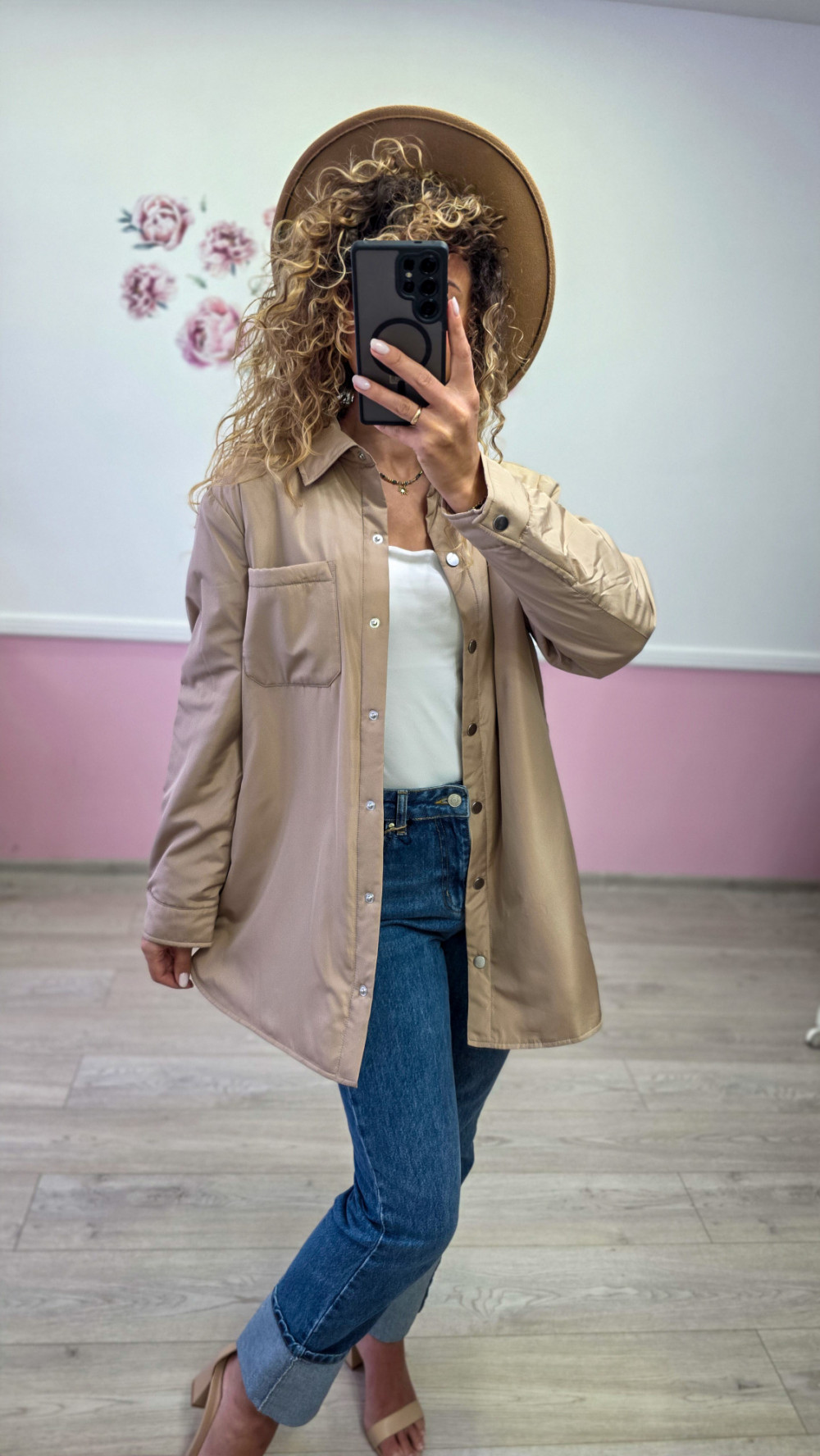 Beżowa koszula-kurtka damska oversize – stylowa i wygodna na każdą porę roku