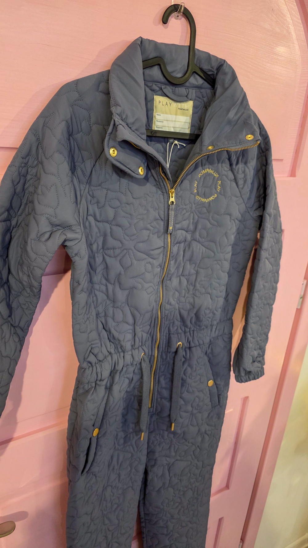 Kombinezon pikowany PompdeLux – stalowy niebieski, rozmiar 158 (junior/dorosły XS–S)